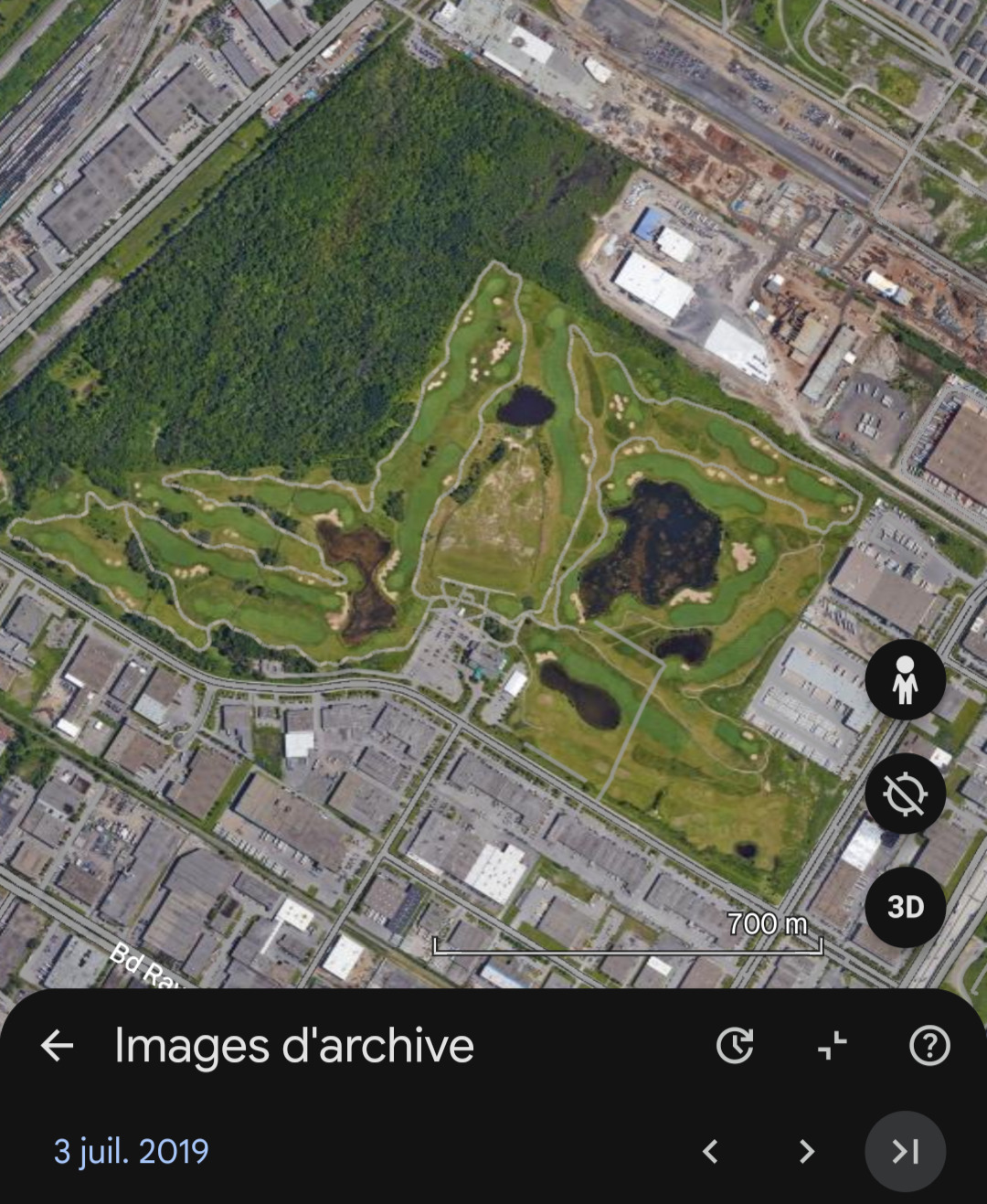 Les milieux humides et boisés du terrain de golf se font remplacer par du bitume et des entrepôts (2019-2025). Je n’ai pas hâte aux prochaines images des 12 nouveux bâtiments industriels qui grugeront ce qui reste: