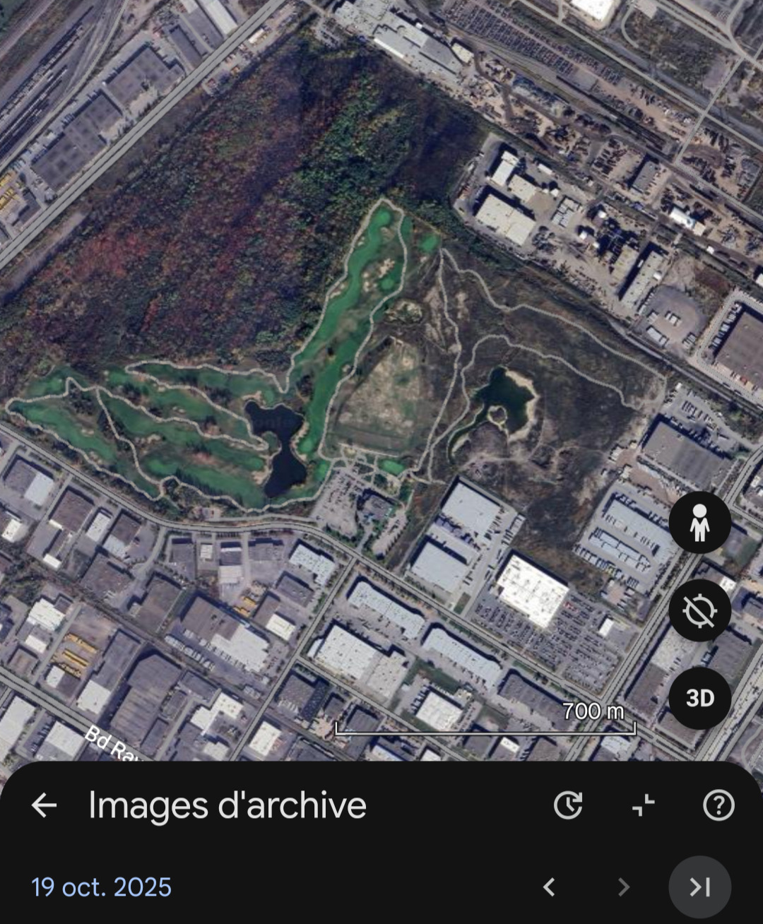 C’est encore une opportunité de renaturalisation manquée pour l’est de Montréal. Il suffit d’observer les images satellites des dernières années pour voir que le peu de verdure qui reste se fait lentement éradiquer au profit de bâtiments industriels ou de distribution qui pourraient être construits ailleurs.