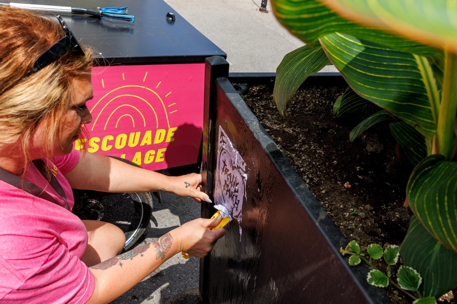 Une des tâches de l’escouade est de repeindre les boîtes à fleurs lorsqu’elles sont la cible de graffiteurs. Depuis qu’ils s’en occupent, ils remarquent une diminution des graffitis.