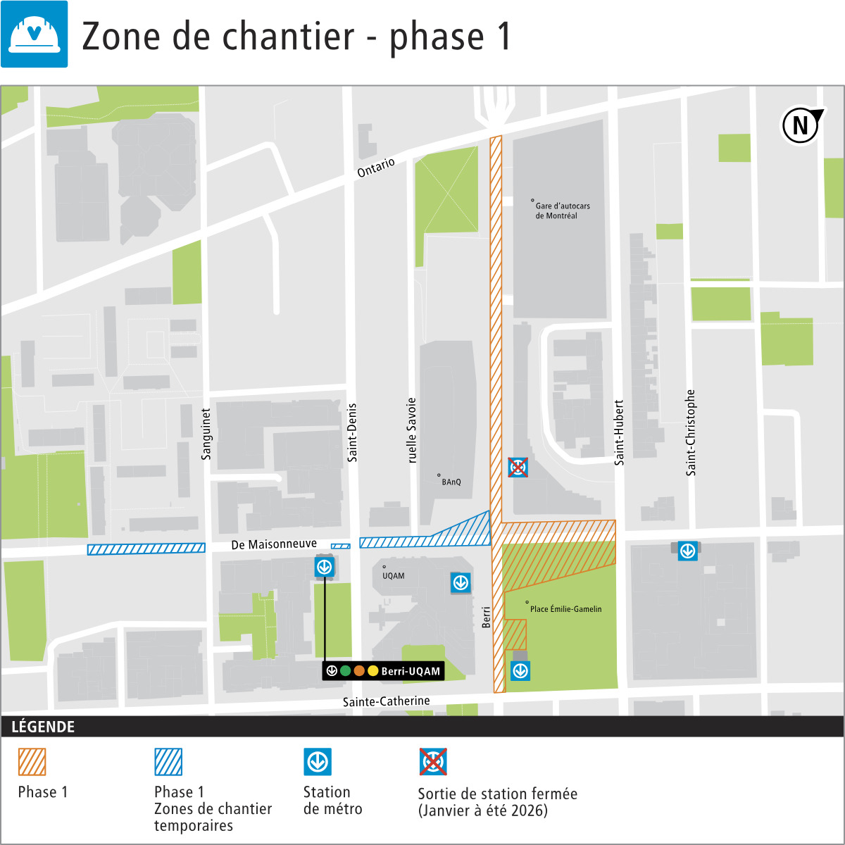 Il vise à détourner la circulation dans le cadre de travaux de réfection de la membrane d’étanchéité de la toiture de la station Berri-UQAM qui forcera la fermeture complète de la rue Berri entre les rues Ontario et Sainte-Catherine jusqu’en novembre 2027.