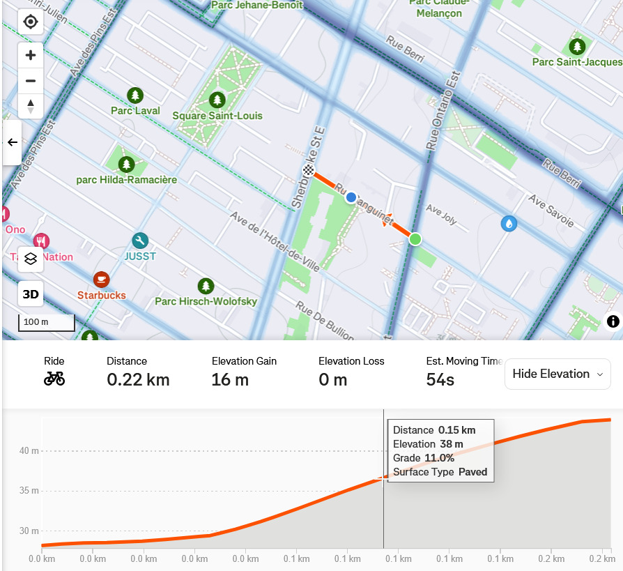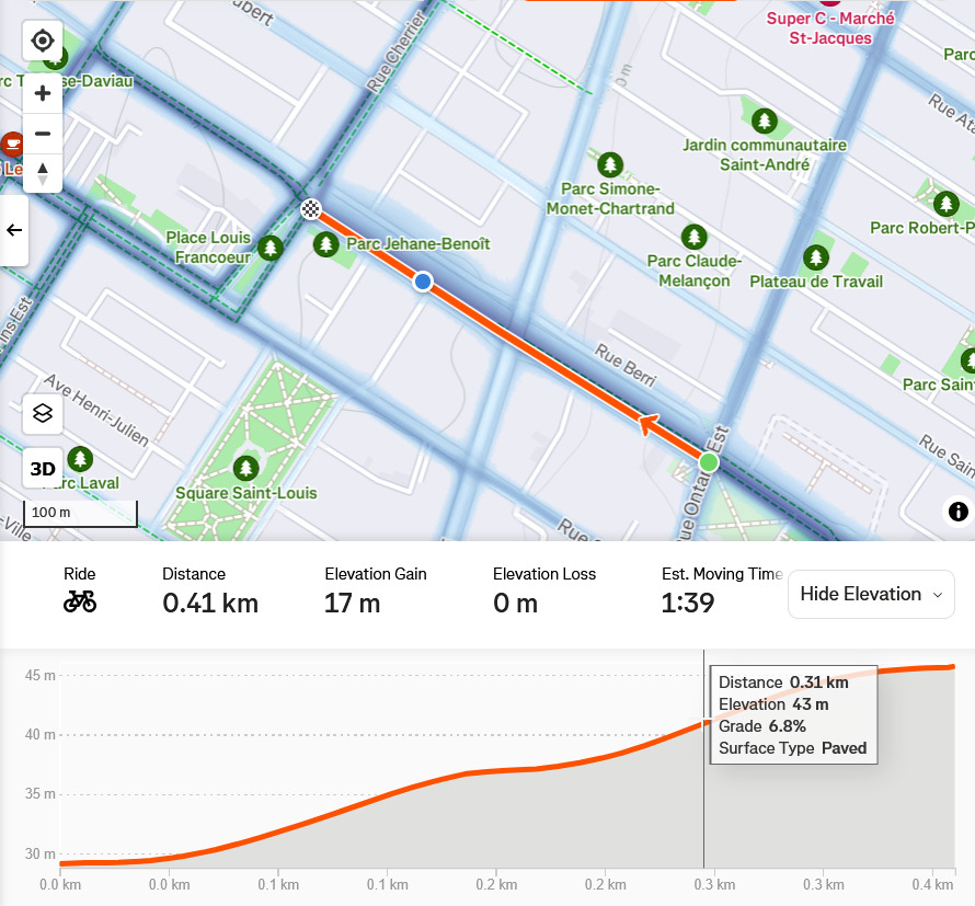 Berri - pente maximale 6.8% on bénéficie de la côté ‘étirée’ sous Sherbrooke
