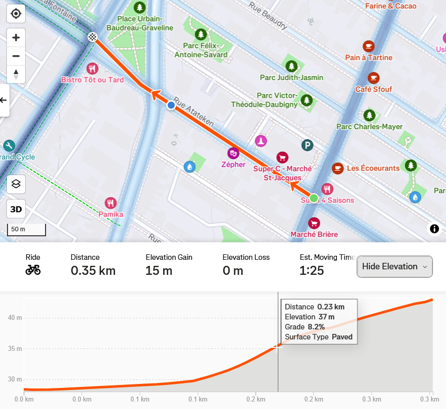 Atateken - pente maximale 8.2%, ce sera difficile pour les vélos musculaires.