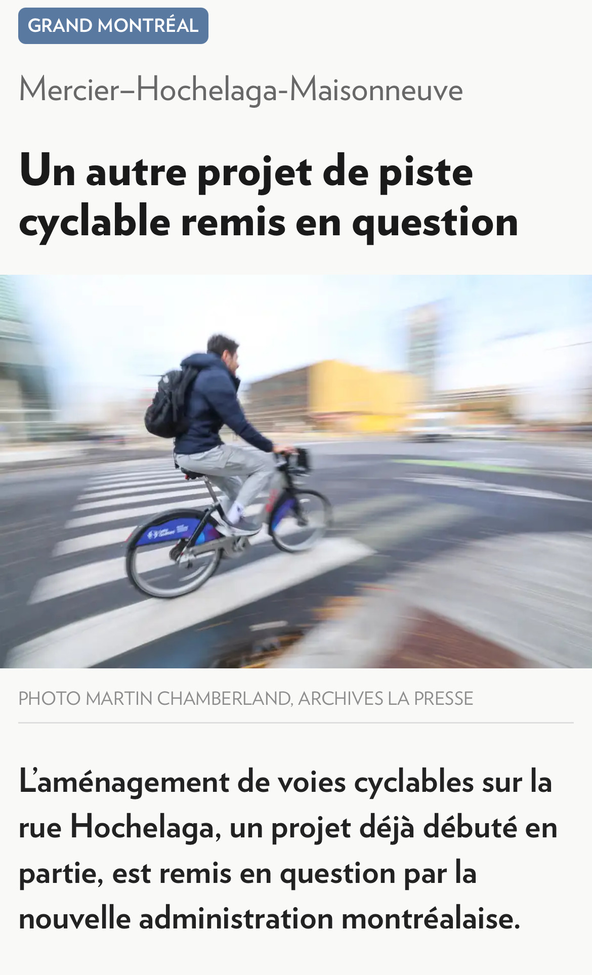 Il faudra mener une bataille jusqu’au bout pour sauver Hochelaga, dans son entièreté. Ce lien est plus qu’essentiel;, mais surtout, surtout, il va sécuriser les déplacements piétons!