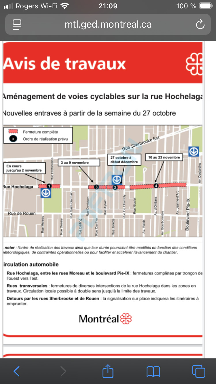 D’ailleurs pour le segment Joliette, j’ai l’impression que ce sont peut-être uniquement des travaux préparatifs qui se déroulent présentement. On a ouvert puis refermer différents trous dans la chaussée, mais il ne semble pas y avoir la même mobilisation qu’il y avait à Préfontaine. Avec les températures qui vont déjà chuter drastiquement dès lundi, j’ai bien peur qu’en effet les travaux devront attendre au printemps. J’imagine que les contrats sont déjà signés donc cette phase ne risque pas d’être annulée par la nouvelle administration? Peut-être une bonne question à poser au prochain conseil!