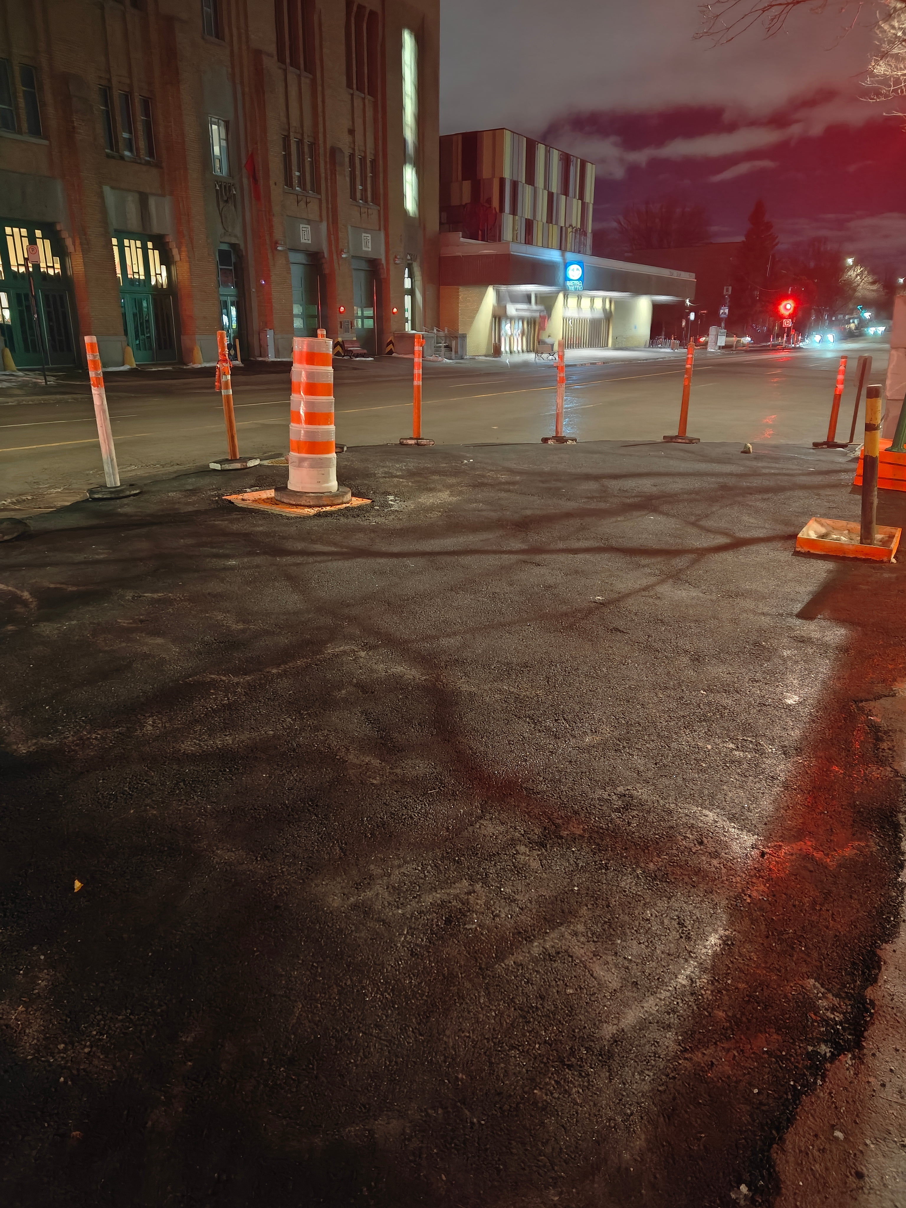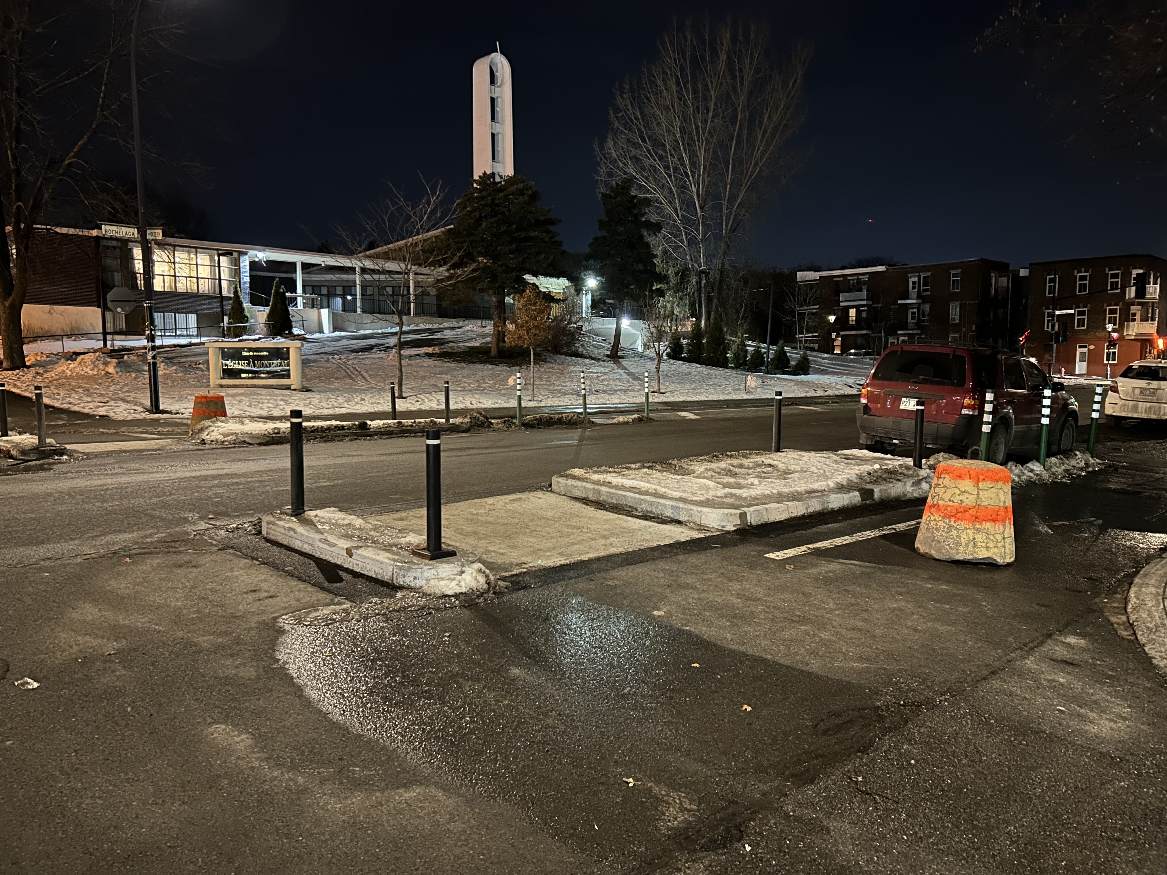 Saillies de trottoir au métro Joliette. Même si c’est vraiment juste du goudron pour l’instant ça va ralentir les voitures!!!