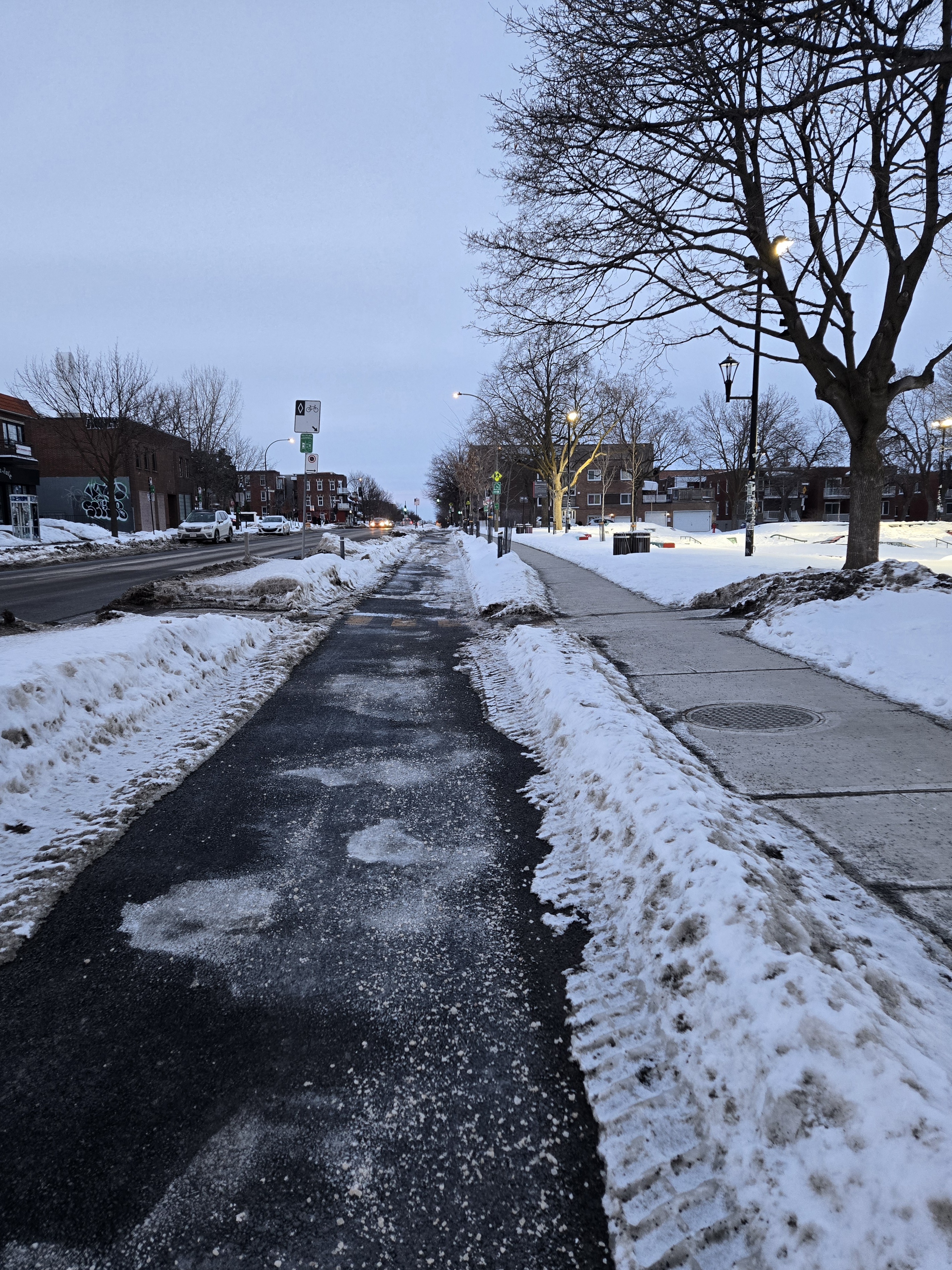 Je trouve que cette piste rend ce segment de la rue beaucoup plus attrayant, particulièrement comme piéton car je n’y suis pas passé en vélo cet hiver.