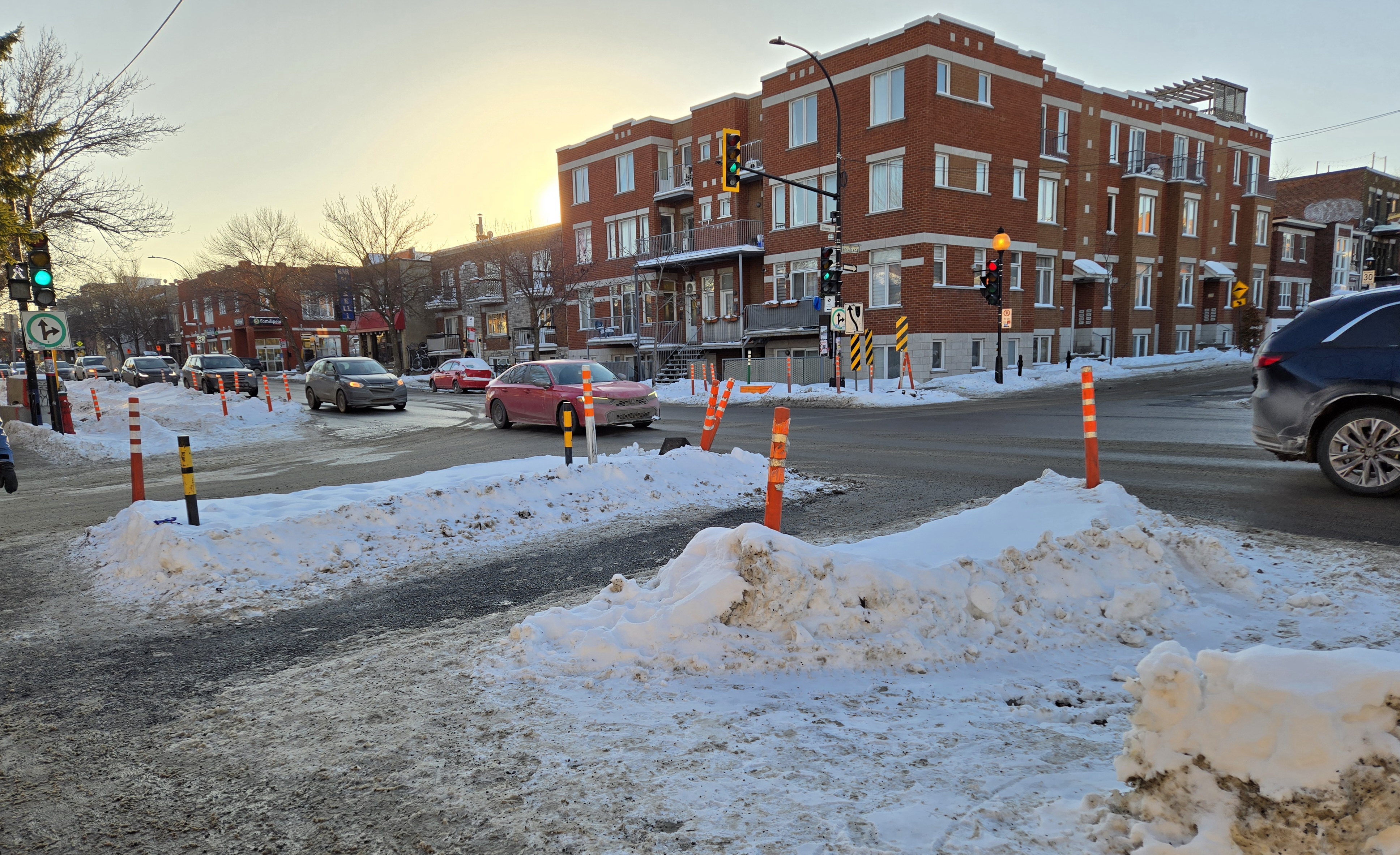 Du moment qu’on accepte la nature éphémère de cette signalétique par les aléas des véhicules, c’est probablement un bon choix. L’alternative est de faire des séparations en béton, et ce n’est pas réaliste si l’on réalise une grande quantité de kilomètres d’infrastructure. Ce sont des travaux bien plus chers et invasifs. Montréal modifie profondément la configuration d’une petite quantité de rues, tous les ans.