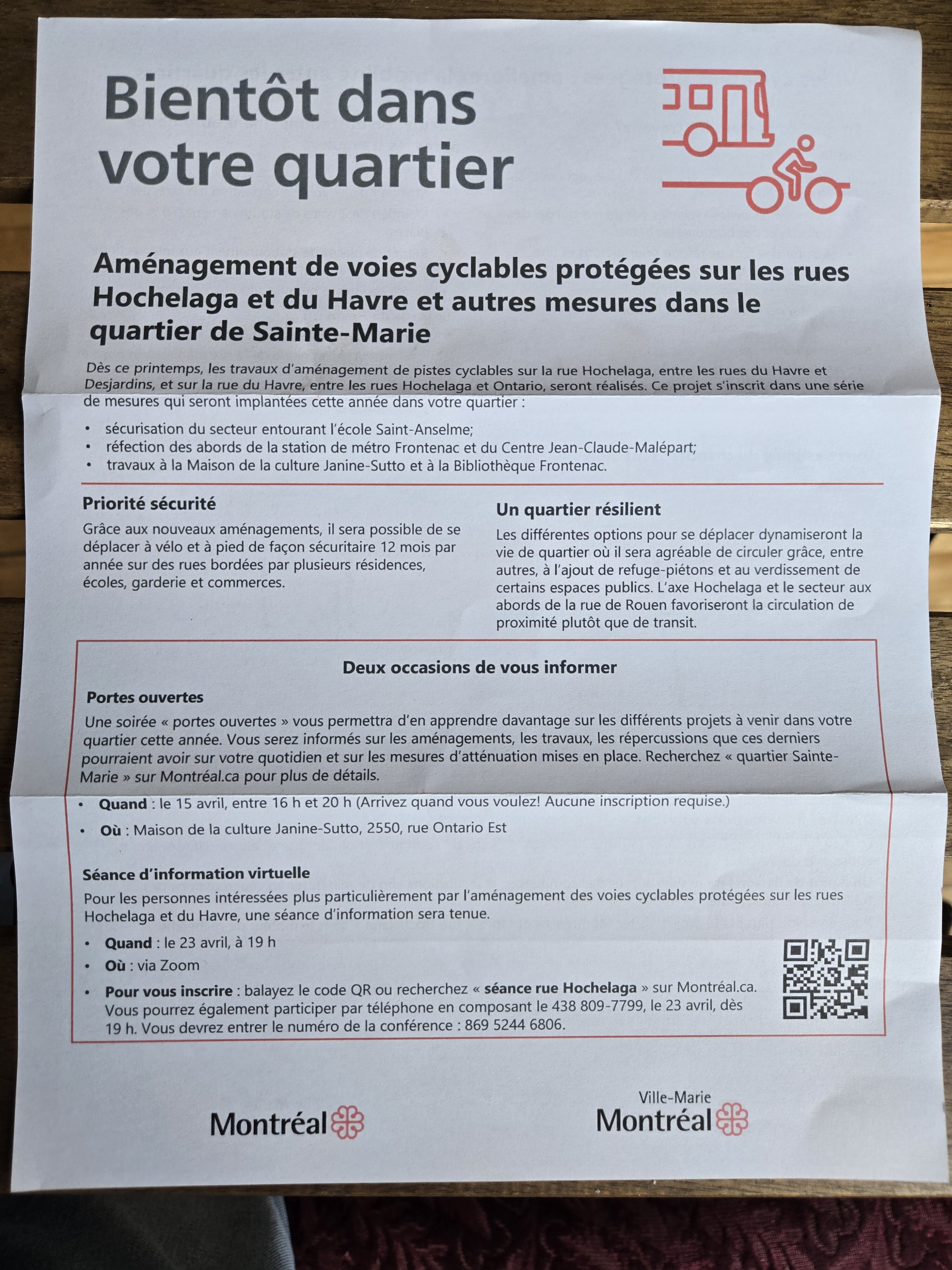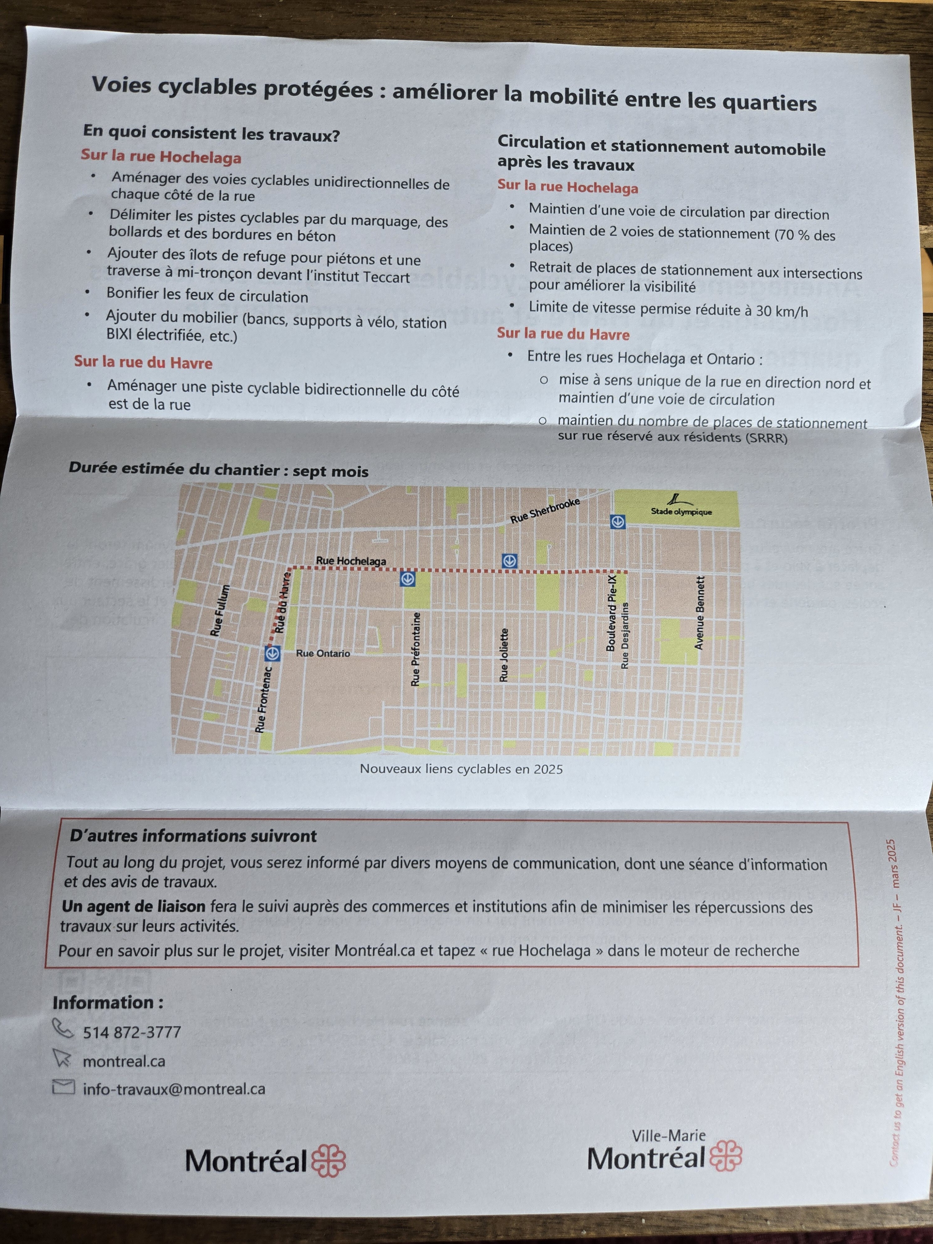 Cela étant dit, je suis vraiment content que la Ville ait de l’avant avec ce projet. Habitant moi-même dans MHM, la rue Hochelaga avait bien besoin de cette cure minceur.