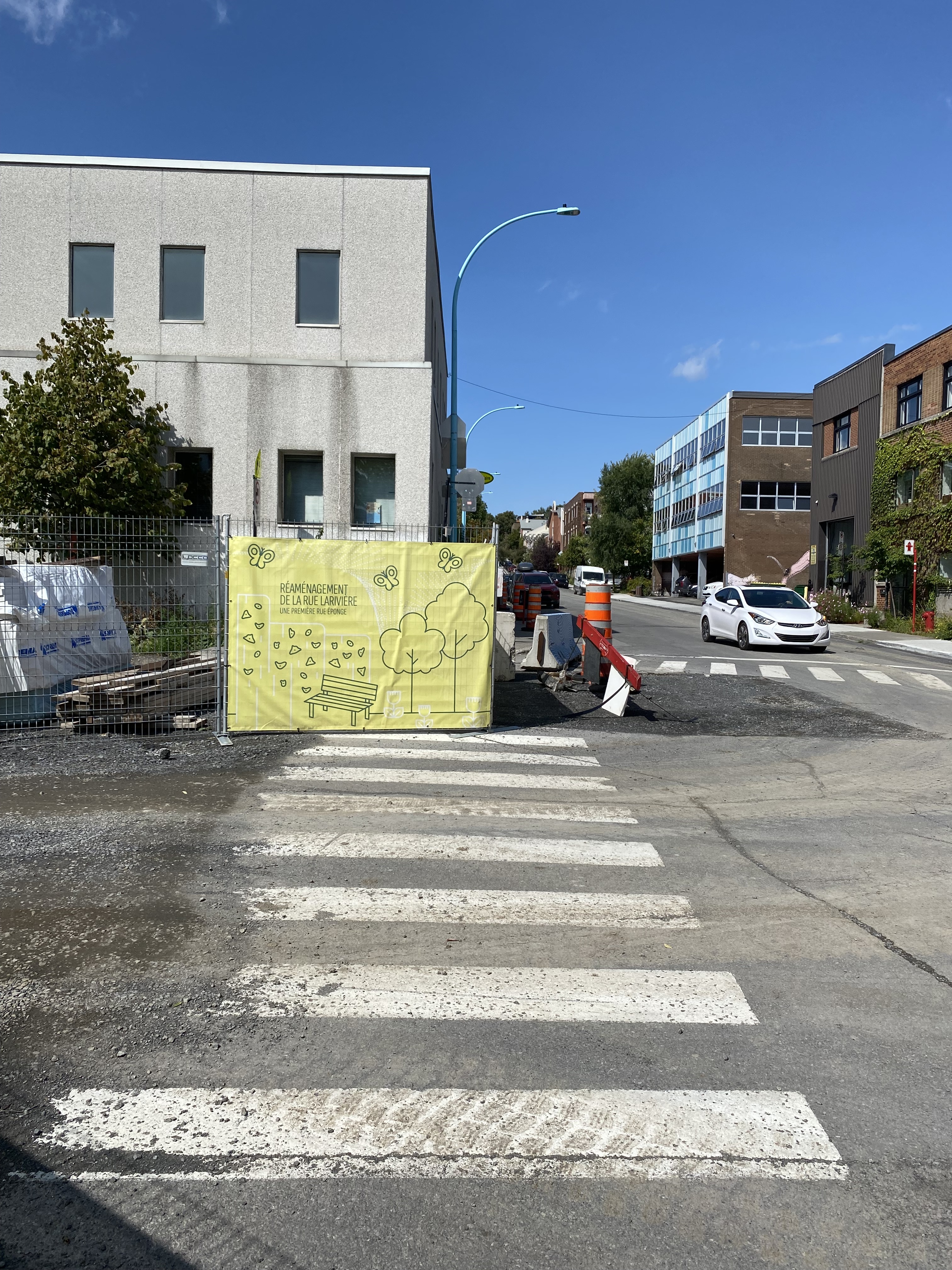 L’arrondissement de Ville-Marie a amorcé les travaux qui mèneront à la concrétisation d’un « premier projet multifonctionnel dans lequel une rue est transformée pour allier à la fois une gestion optimale des eaux pluviales, le verdissement, et les besoins récréatifs et culturels des gens du secteur ». Situé sur la rue Larivière, entre l’avenue De Lorimier et la rue Parthenais, il comprendra, outre des bassins de rétention et des bacs de plantation, une oeuvre d’art public, un mur d’escalade, un espace scénique et des jeux d’eau. Les travaux devraient se terminer au courant du printemps ou de l’été 2026.