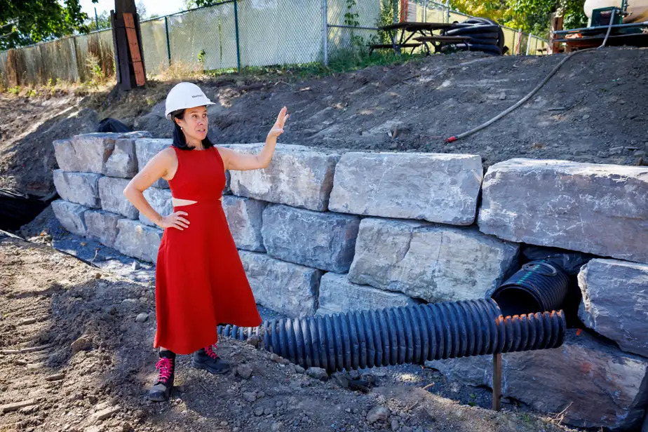 Objectif : recueillir l’eau de pluie provenant des secteurs situés en amont. L’artère doit à terme retenir près de 900 mètres cubes d’eaux pluviales. « Je souhaite que ça fasse partie de mon legs, cette approche de préparer la ville de demain. Et ça passe par les parcs éponges, les rues éponges », dit la mairesse, qui appelle ses successeurs à se doter de cibles précises en la matière.