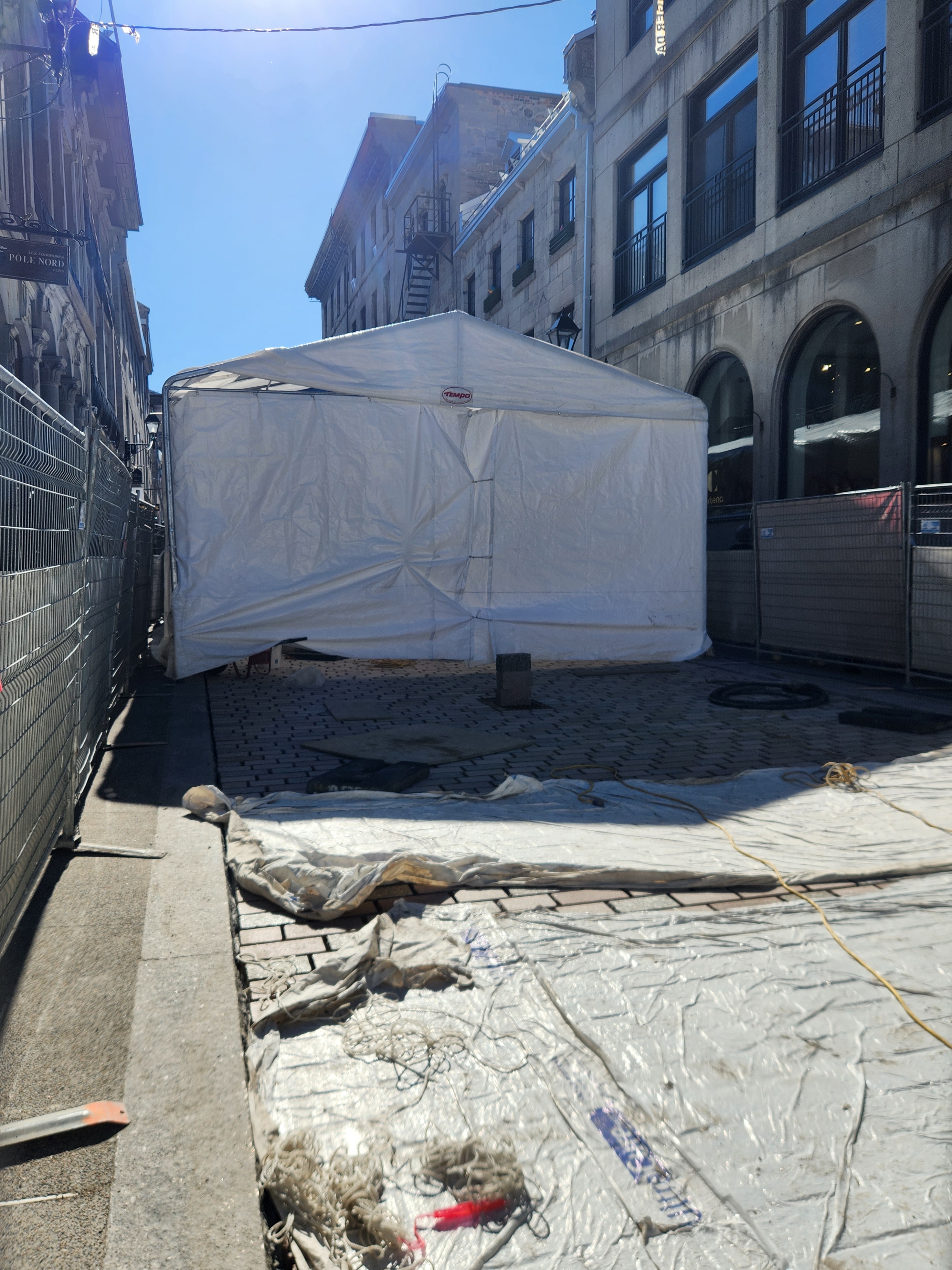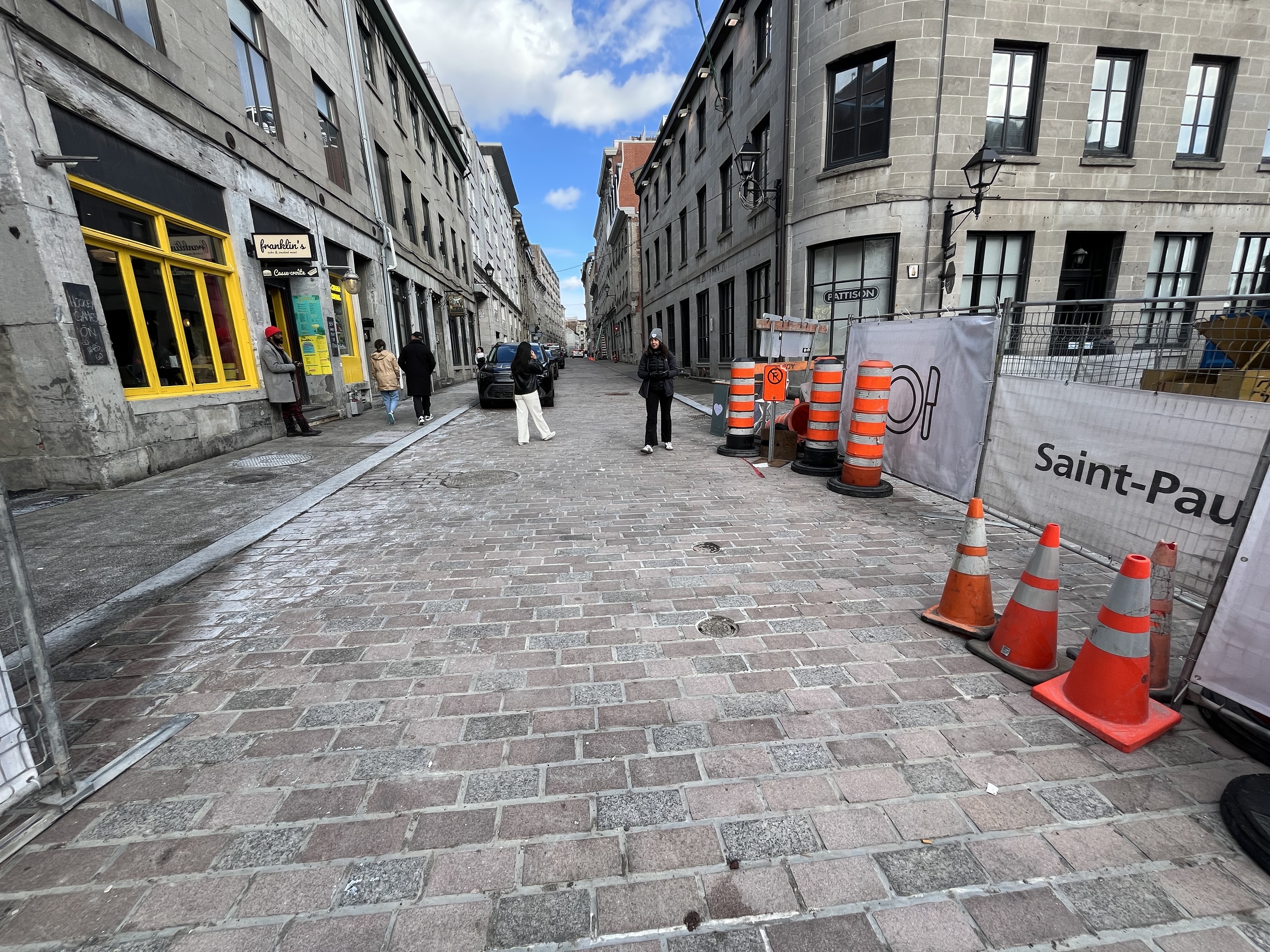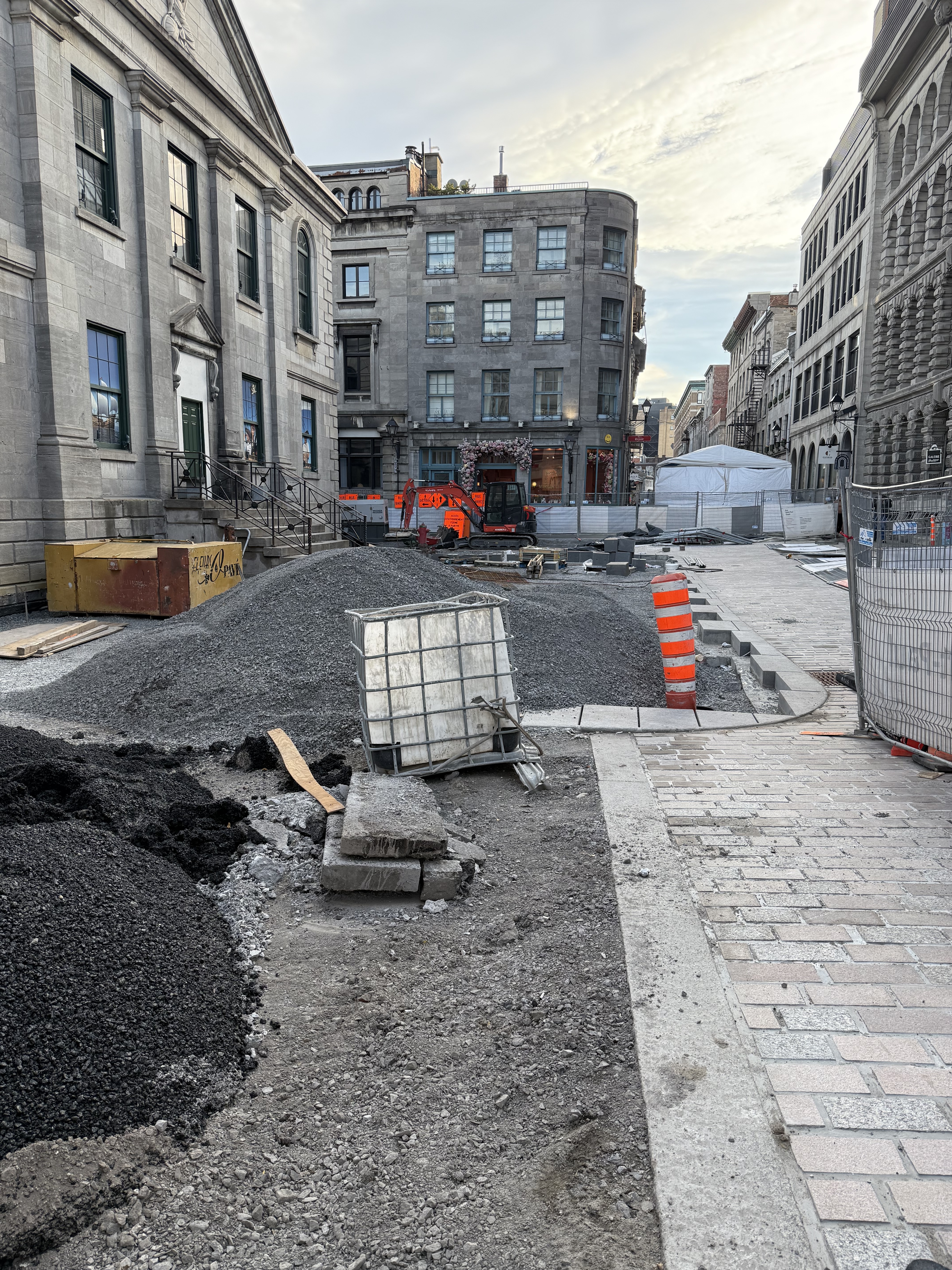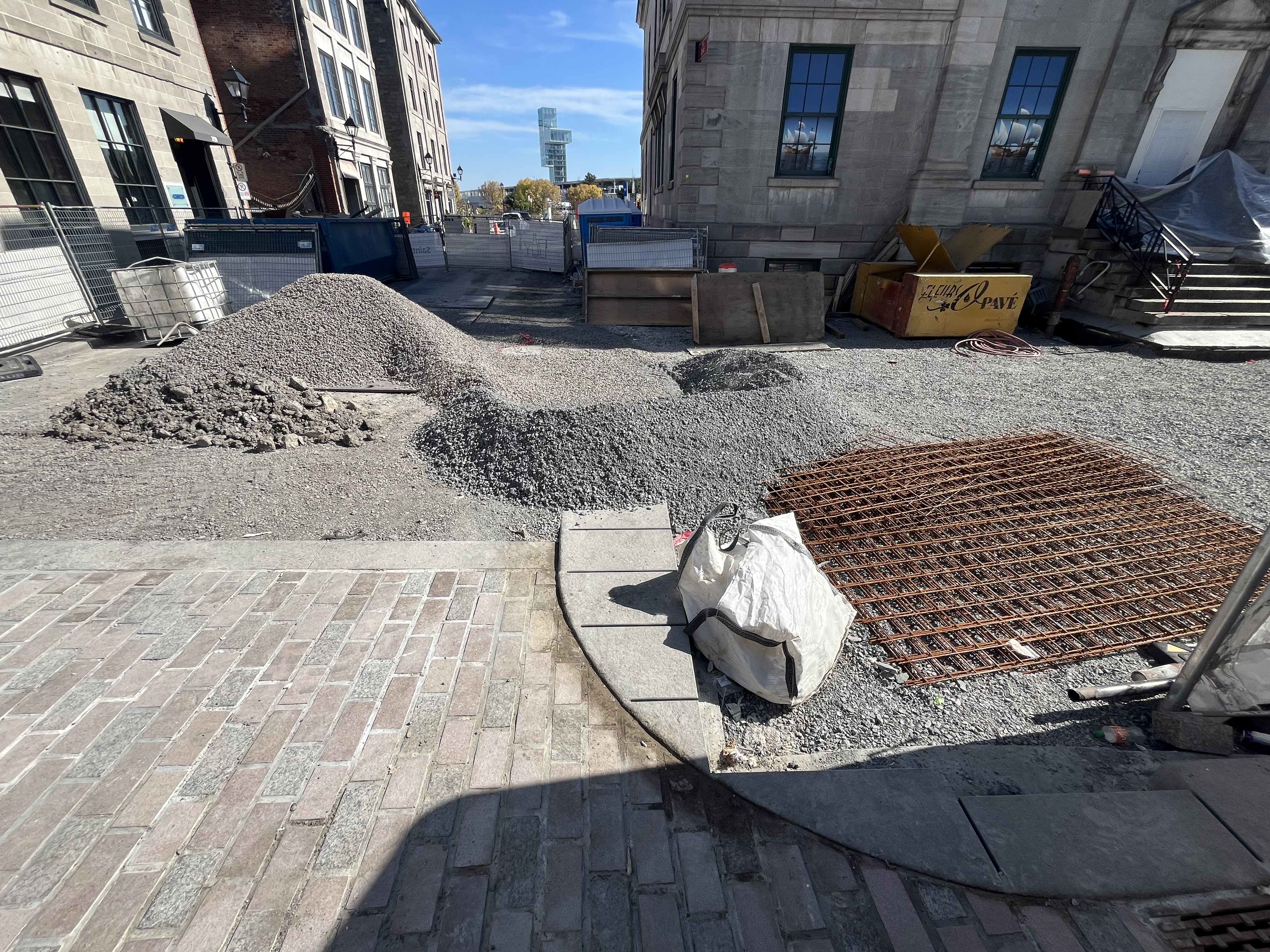 je me suis mal exprimé, désolé. Le chantier continue pour la pose de pavés, mais la partie au bout au niveau de Saint-François-Xavier est entrain d’être asphaltée (la ligne commence intersection est de cette rue), car j’imagine ils n’auront pas le temps d’y arriver(ou ça ne fait pas partie de cette phase).
