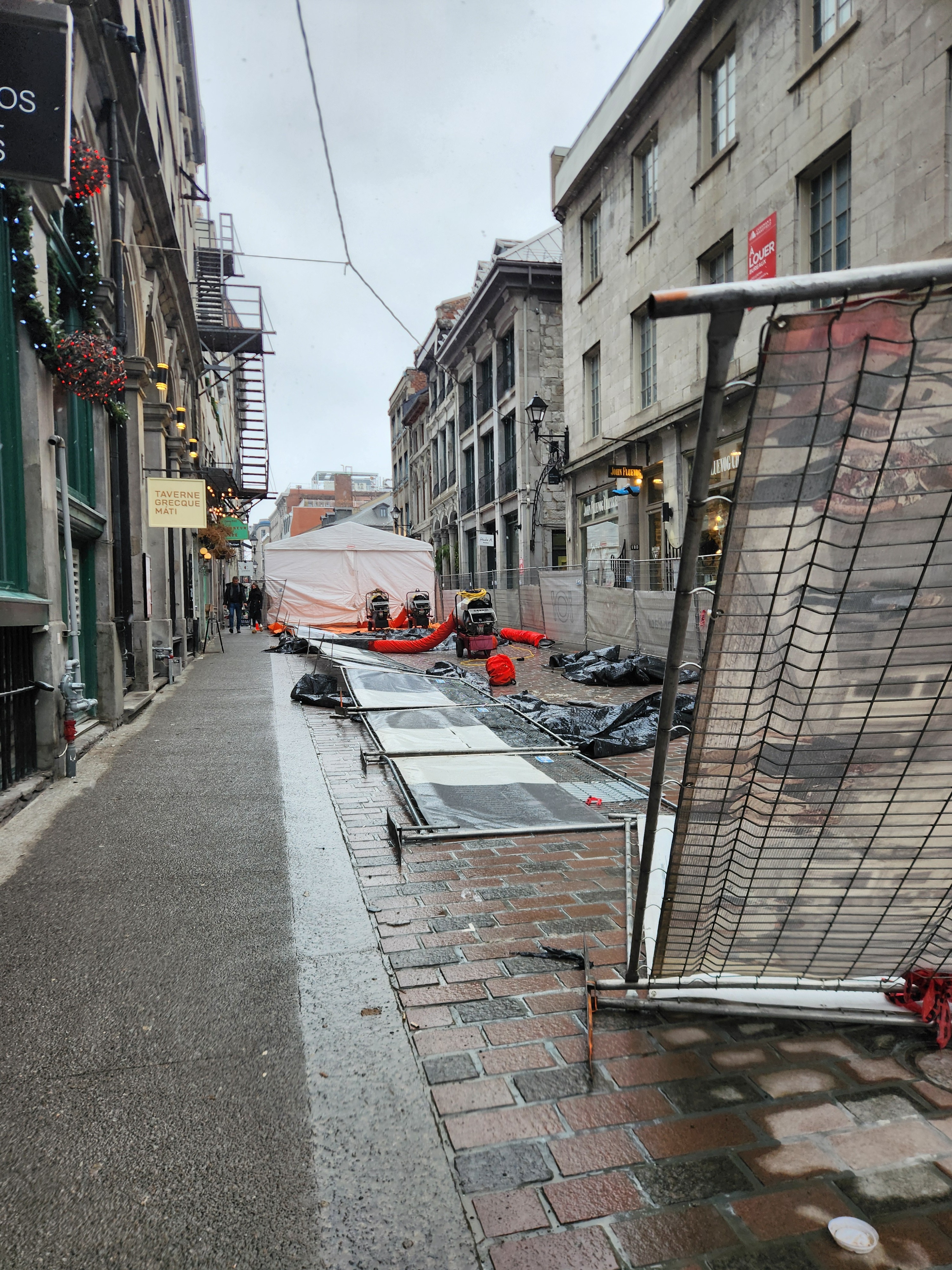 Asphalte temporaire coin Saint-François-Xavier en cours. Réouverture du chantier au printemps.