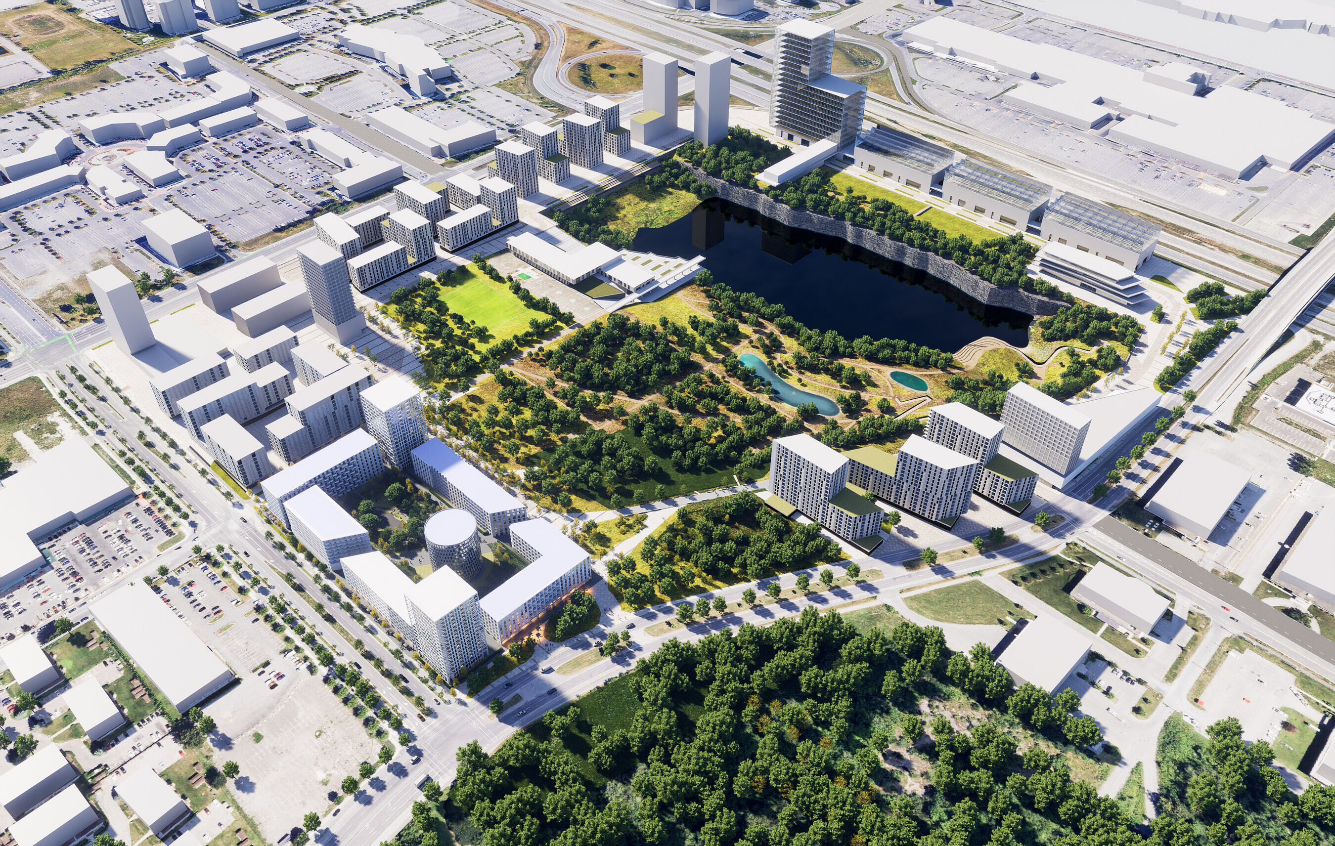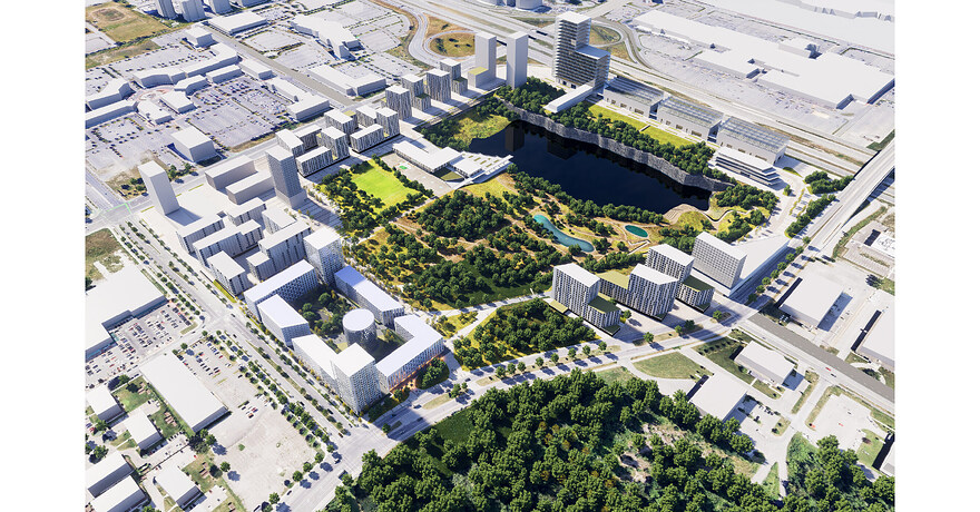 Ce futur développement naîtra dans un vaste terrain abandonné qui servait jusqu’à récemment de dépôt à neige, après la fermeture de la carrière dans les années 1980. Le lac qui a pris naissance dans l’ancienne carrière sera maintenu en place. Un grand parc sera aménagé à côté du plan d’eau. Une série de tours hébergeront des logements, des bureaux, des entreprises, des commerces, une garderie et une école.