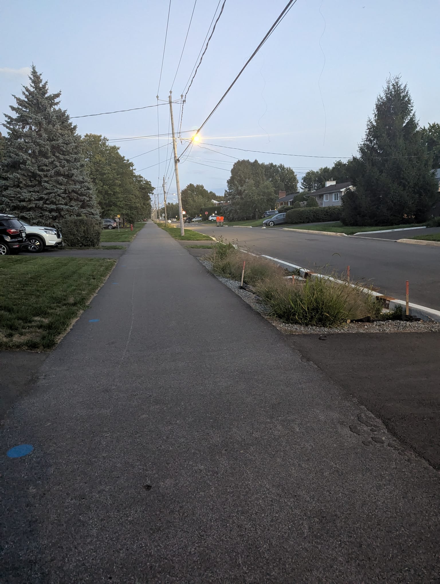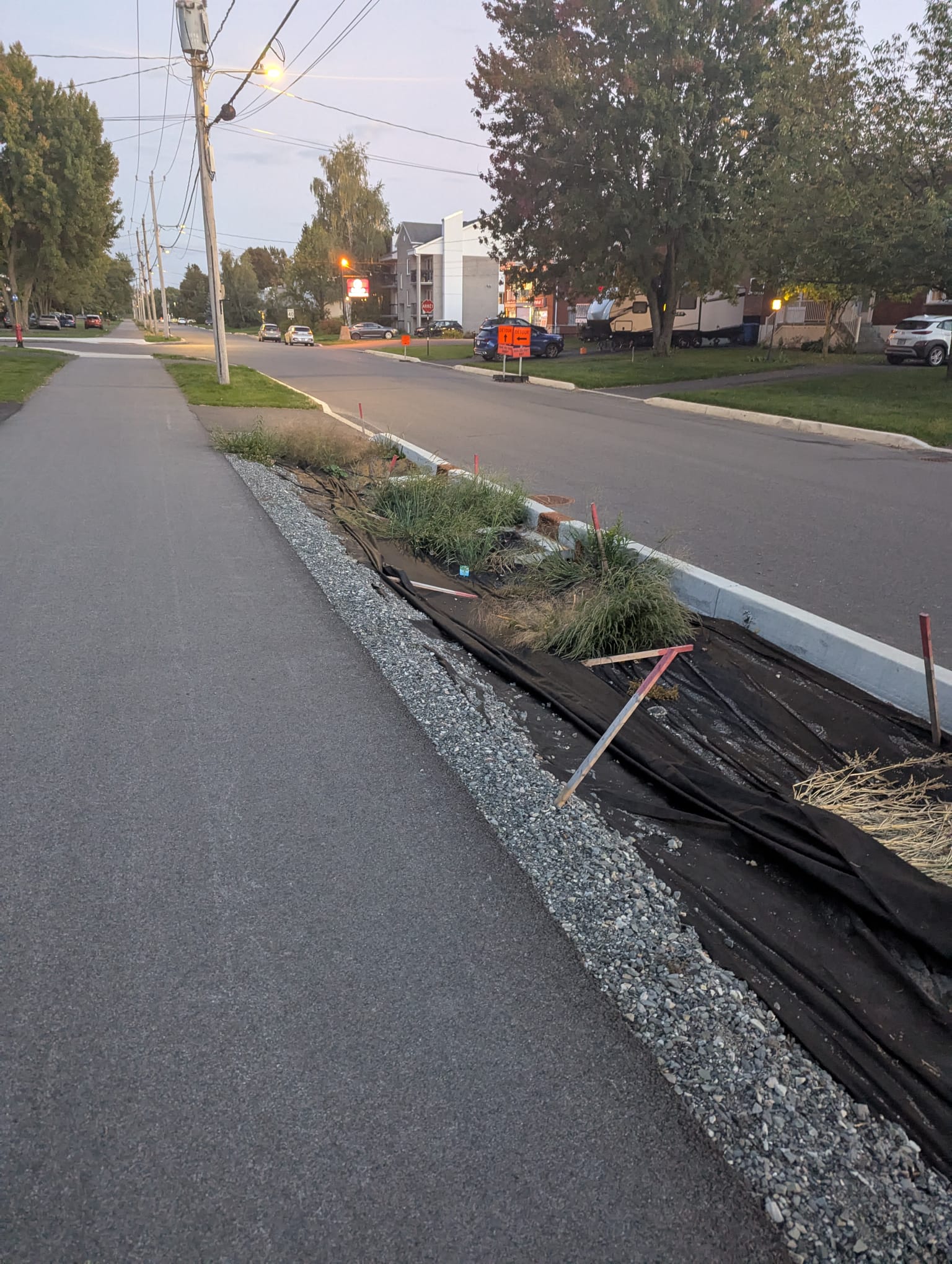 Nouvelle aménagement à Saint-Basile-Le-Grand interessant, avec des endroit pour collecté l’eau de pluies genre saillis éponges, nouvelles pistes cyclables, et aussi je trouvais interessant sur les coins et à certains endroit ils utilisent des bordures de trottoir en granites. Les pratiques de Montréal se répandent!