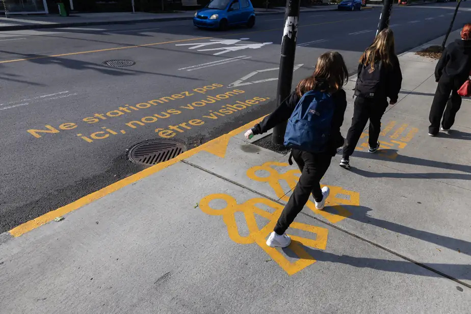 Le Code de la sécurité routière du Québec interdit le stationnement à moins de cinq mètres des intersections, notamment dans le but d’assurer la visibilité des piétons qui s’y engagent. Puisqu’ils sont plus petits que les véhicules, les enfants du primaire ont particulièrement besoin que cette règle soit respectée.