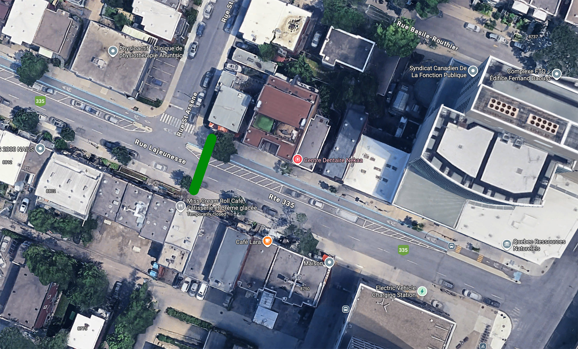 La passage que j’avais suggéré (ce secteur est un bordel total lors de la fin des cours au Collège Ahuntsic, avec tous les élèves qui déboulent de la rue Saint-Arsène pour rejoindre au plus court le métro Crémazie).