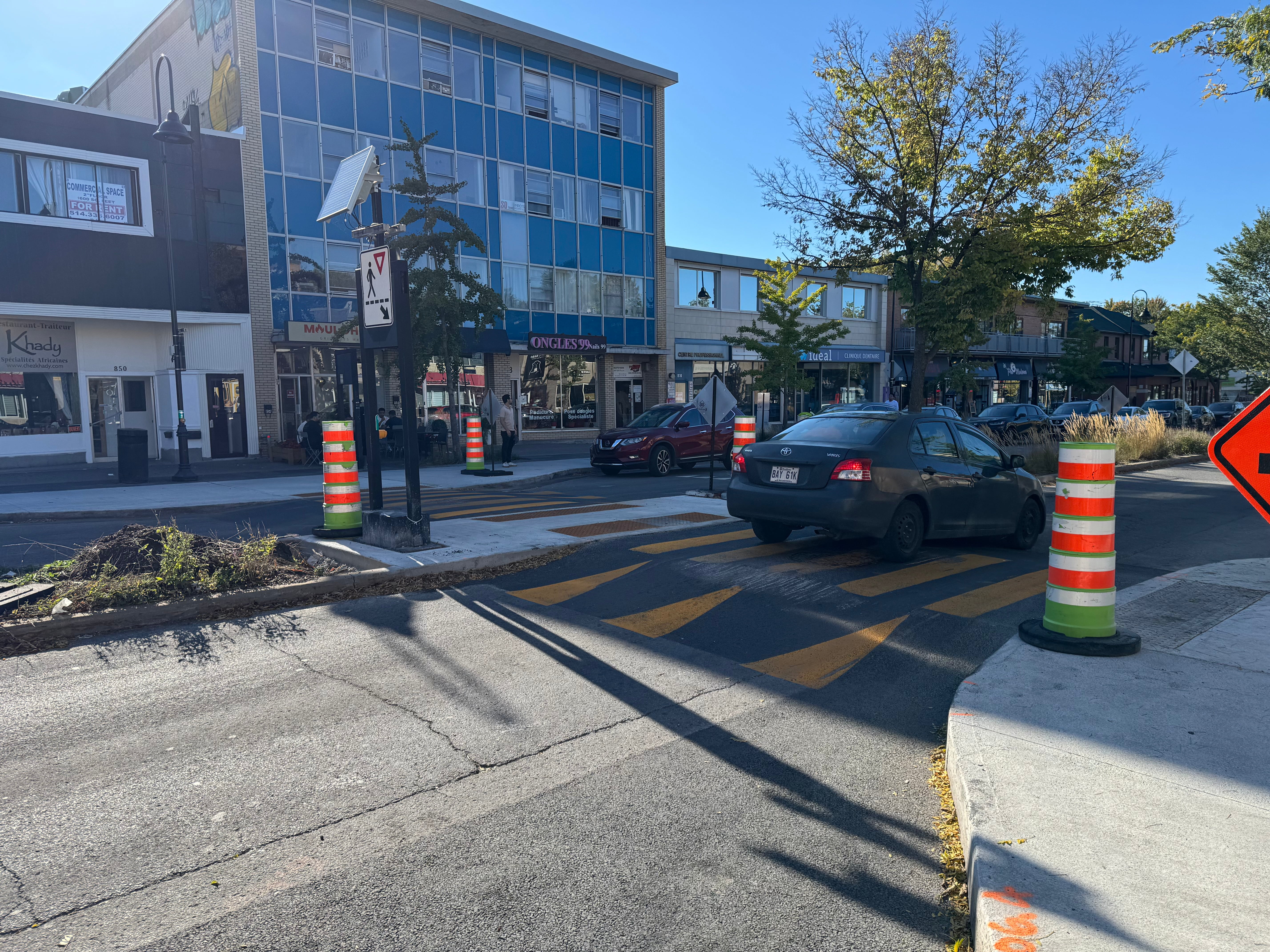 Une quinzaine de minutes après le début de notre entrevue, sur l’avenue du Parc, des piétons ont été mis en danger.