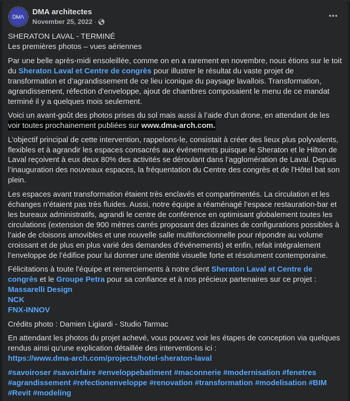 Quoi qu’il en soit, la publication en question a un lien vers la publication Facebook des architectes qui indiquait le nom du photographe: