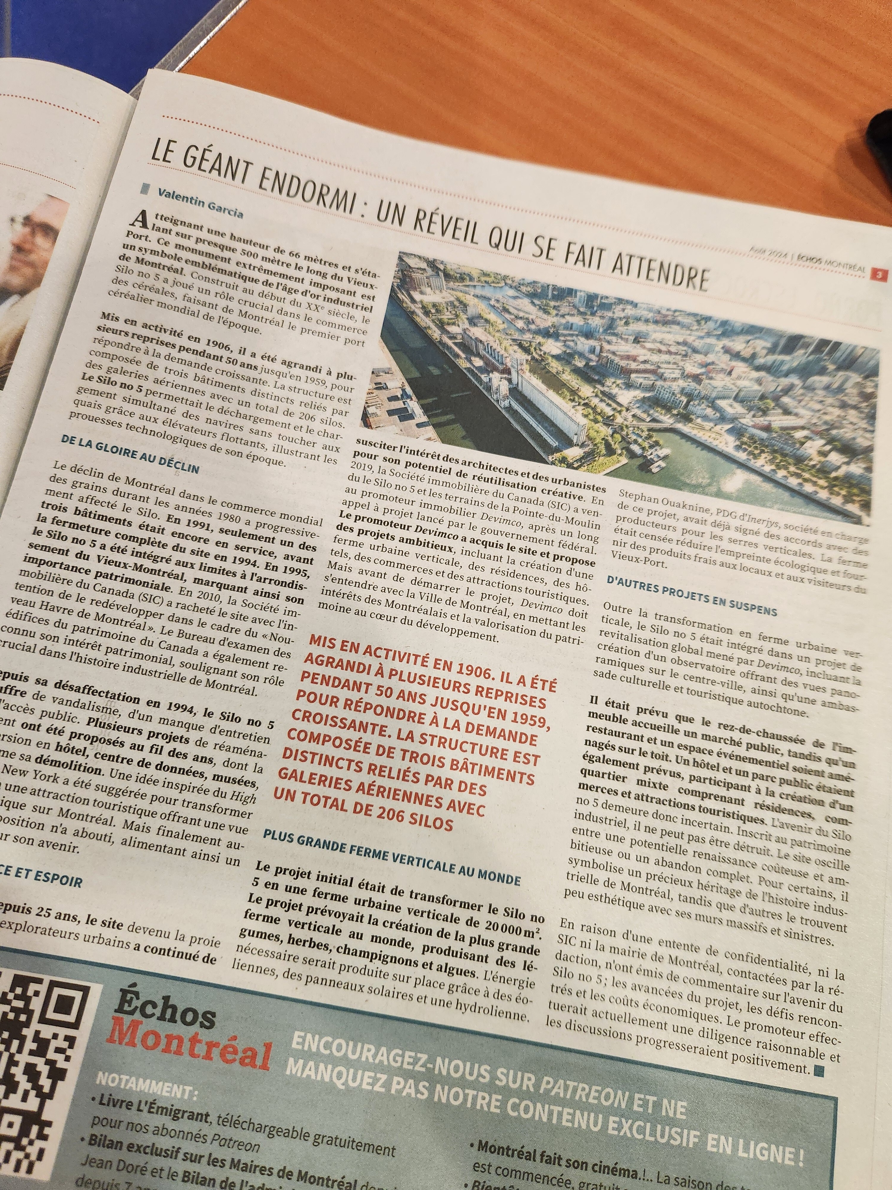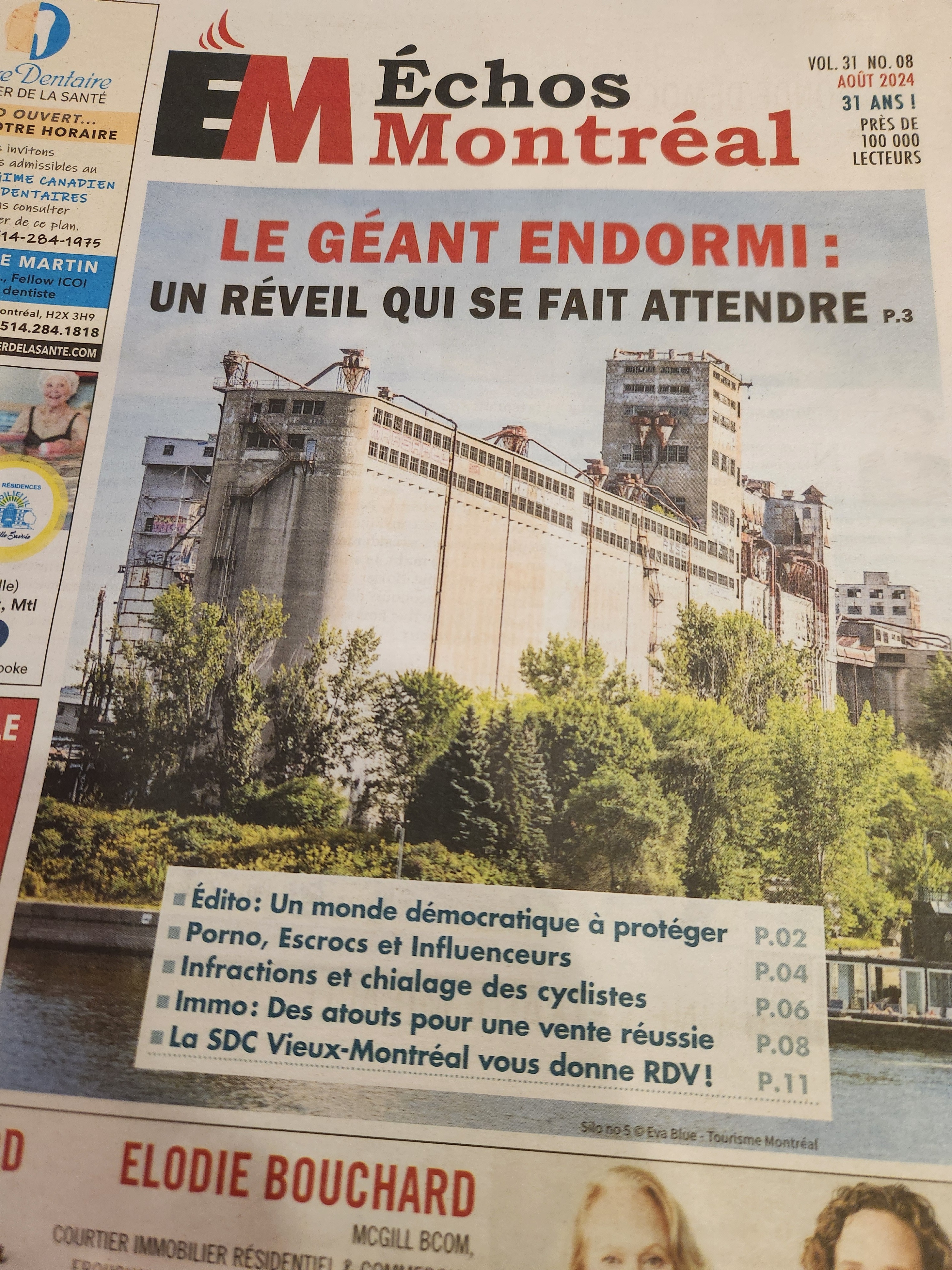 Du grain à moudre pour la Société immobilière du Canada (SIC), propriétaire du gigantesque Silo no 5 dans le Vieux-Port de Montréal, dont on ne sait toujours pas quoi faire et qui fait l’objet de tous les fantasmes, depuis sa fermeture en 1994. Hôtel ? Musée ? Témoin de l’ère industrielle ? Toutes les options sont sur la table…