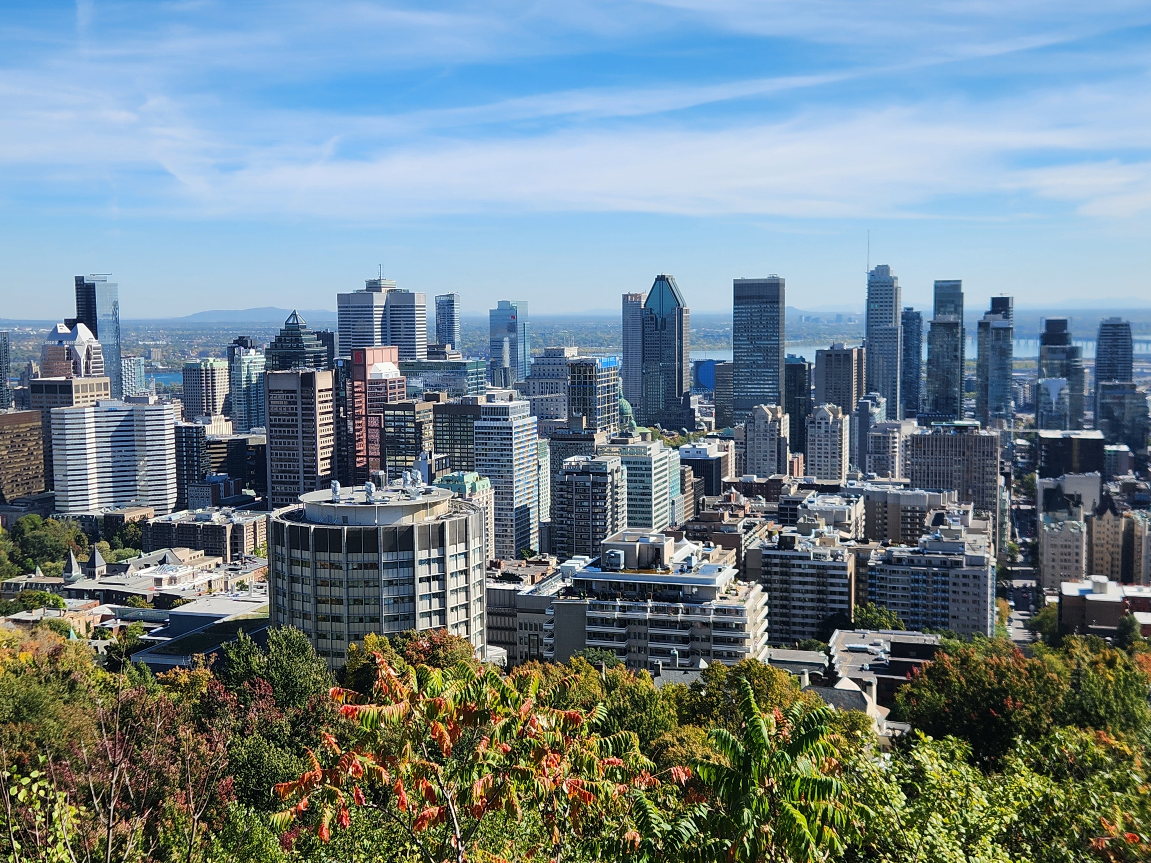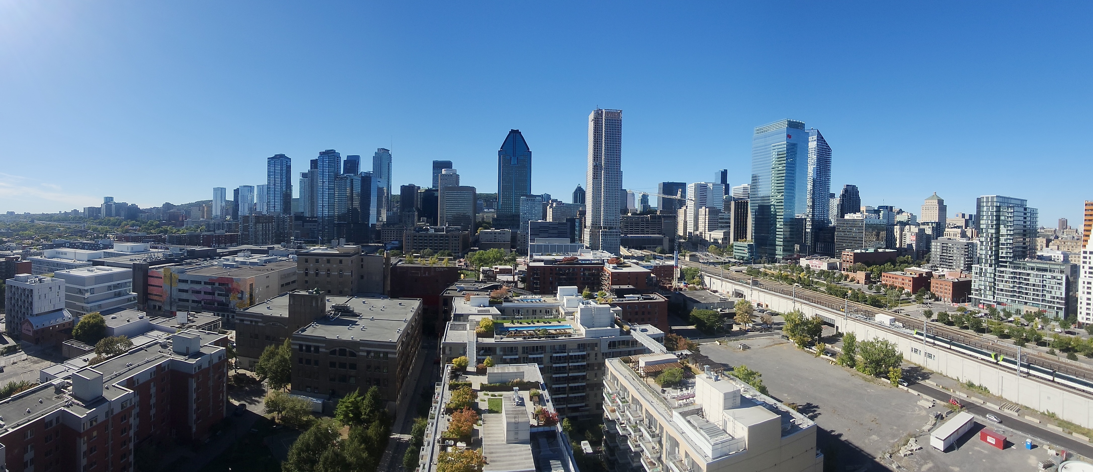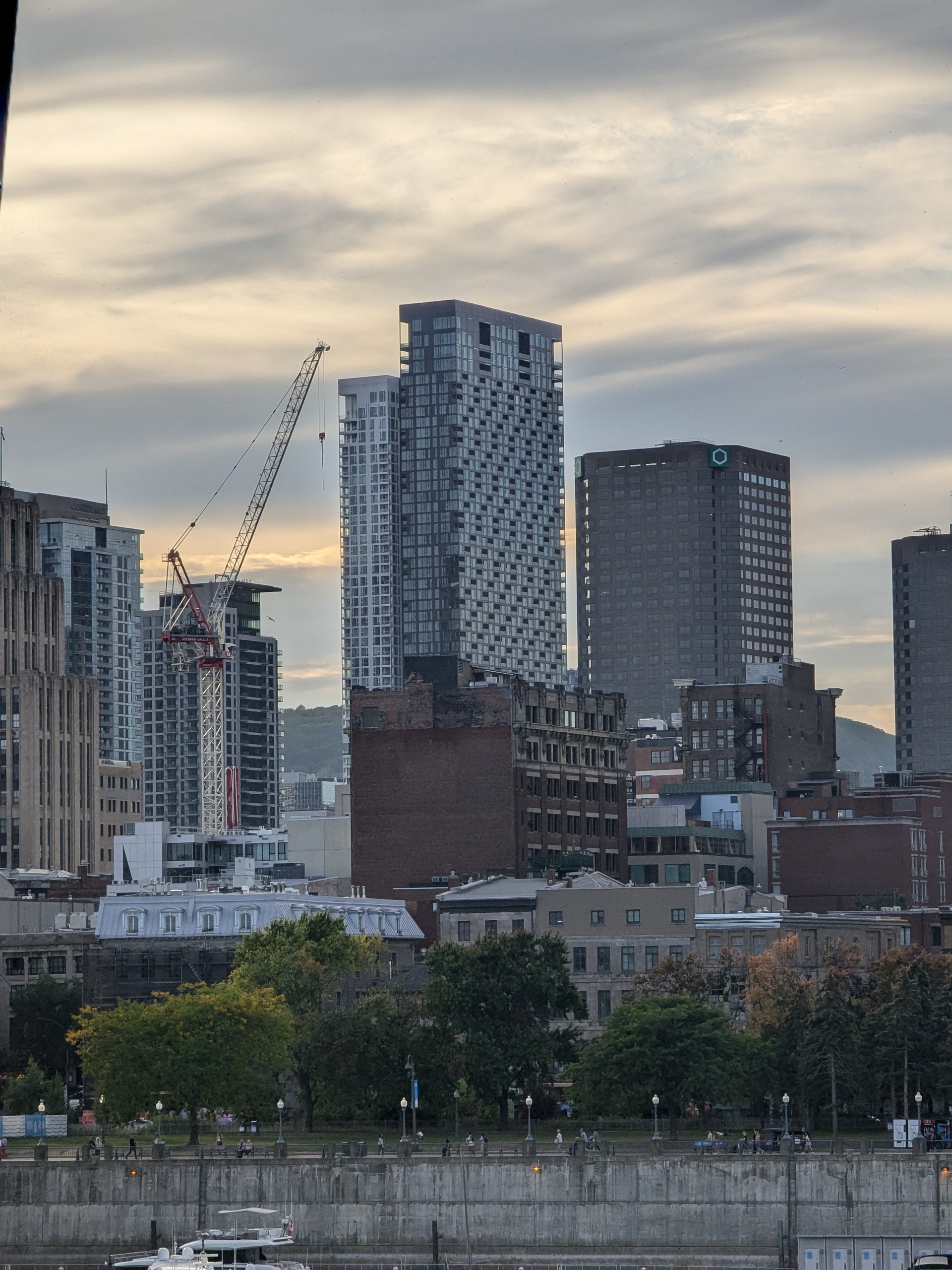 Les sommets de nos plus hautes tours (~165m+) sont visibles depuis certains angles du belvédère Kondiaronk.