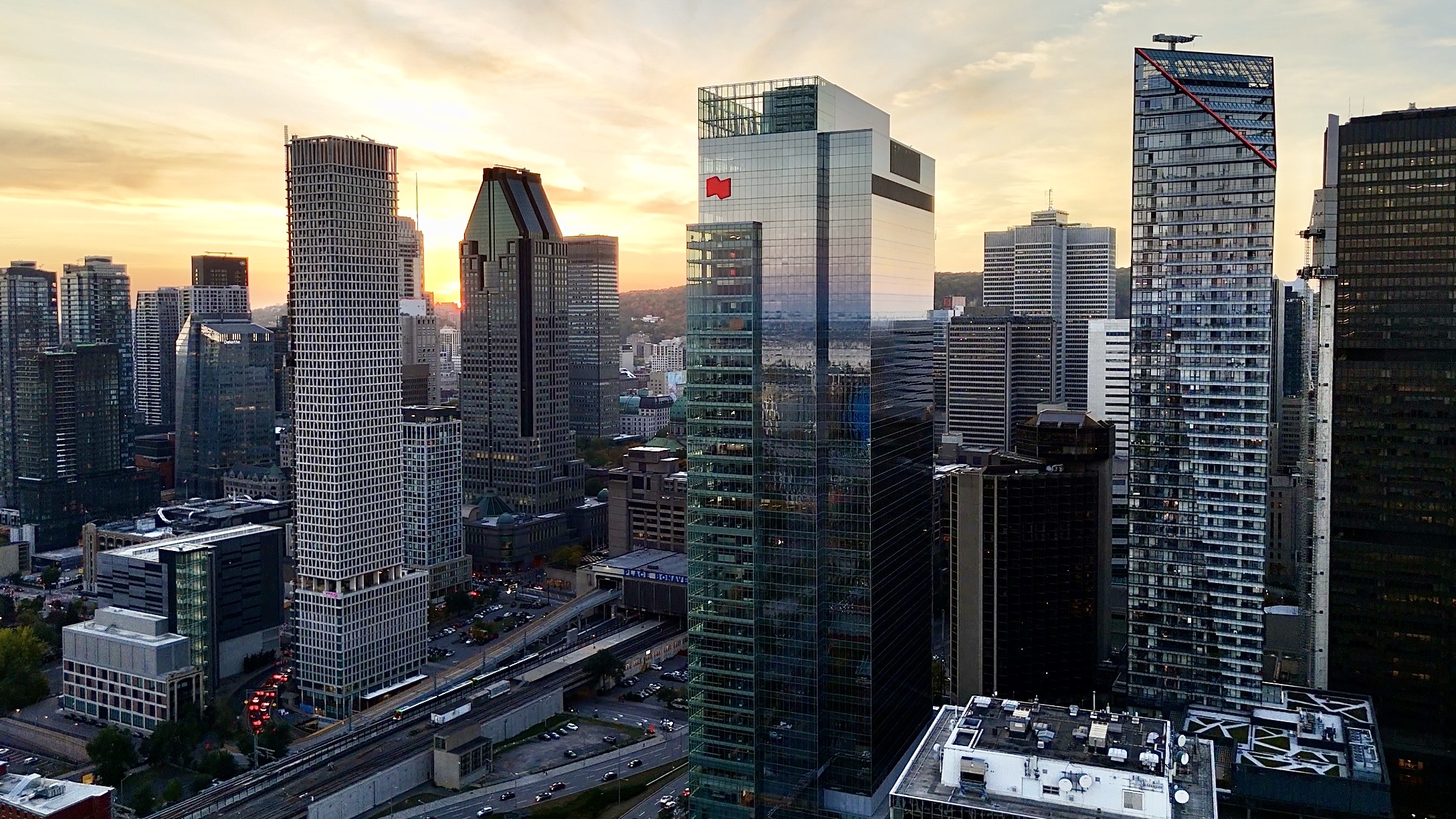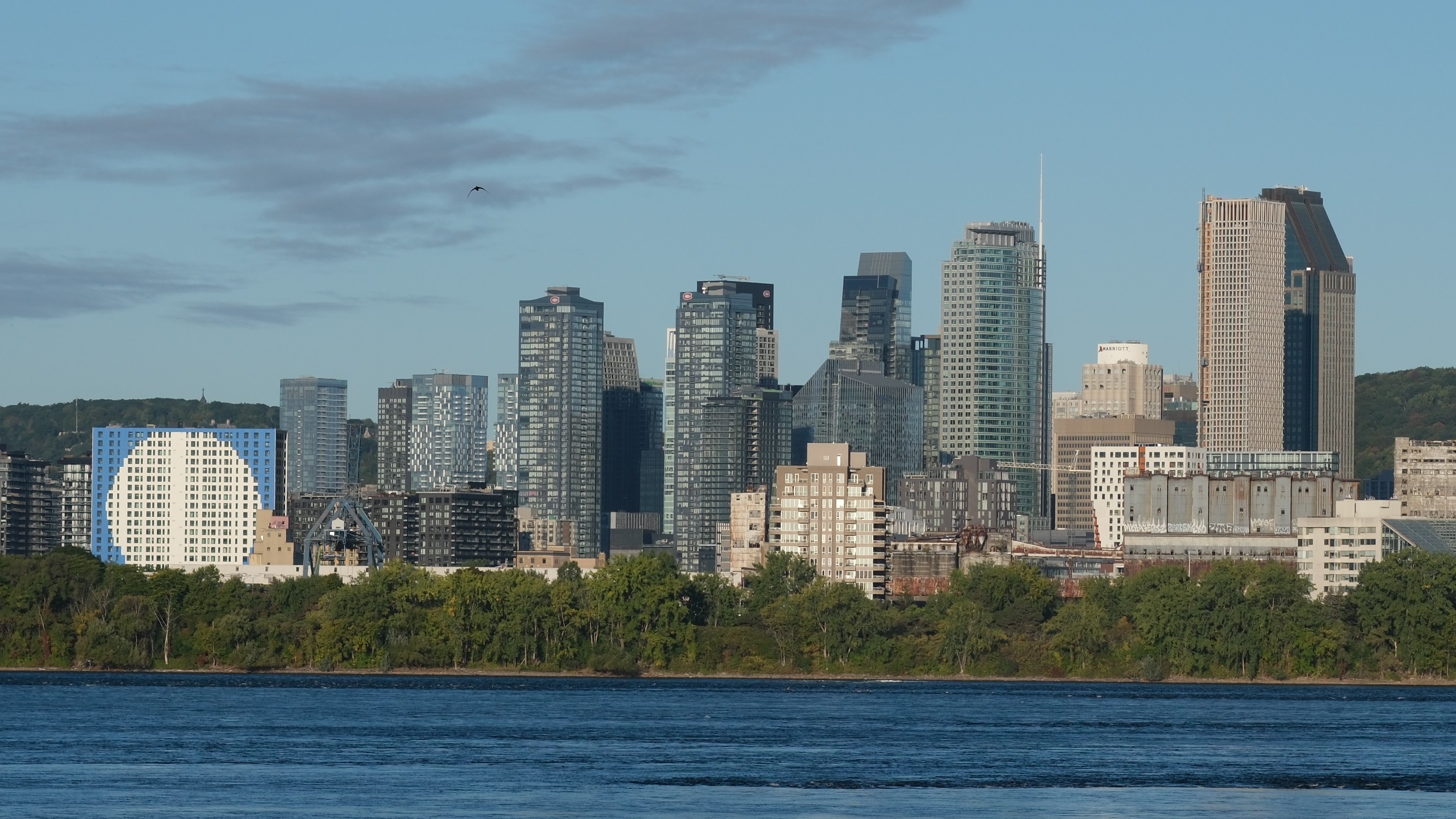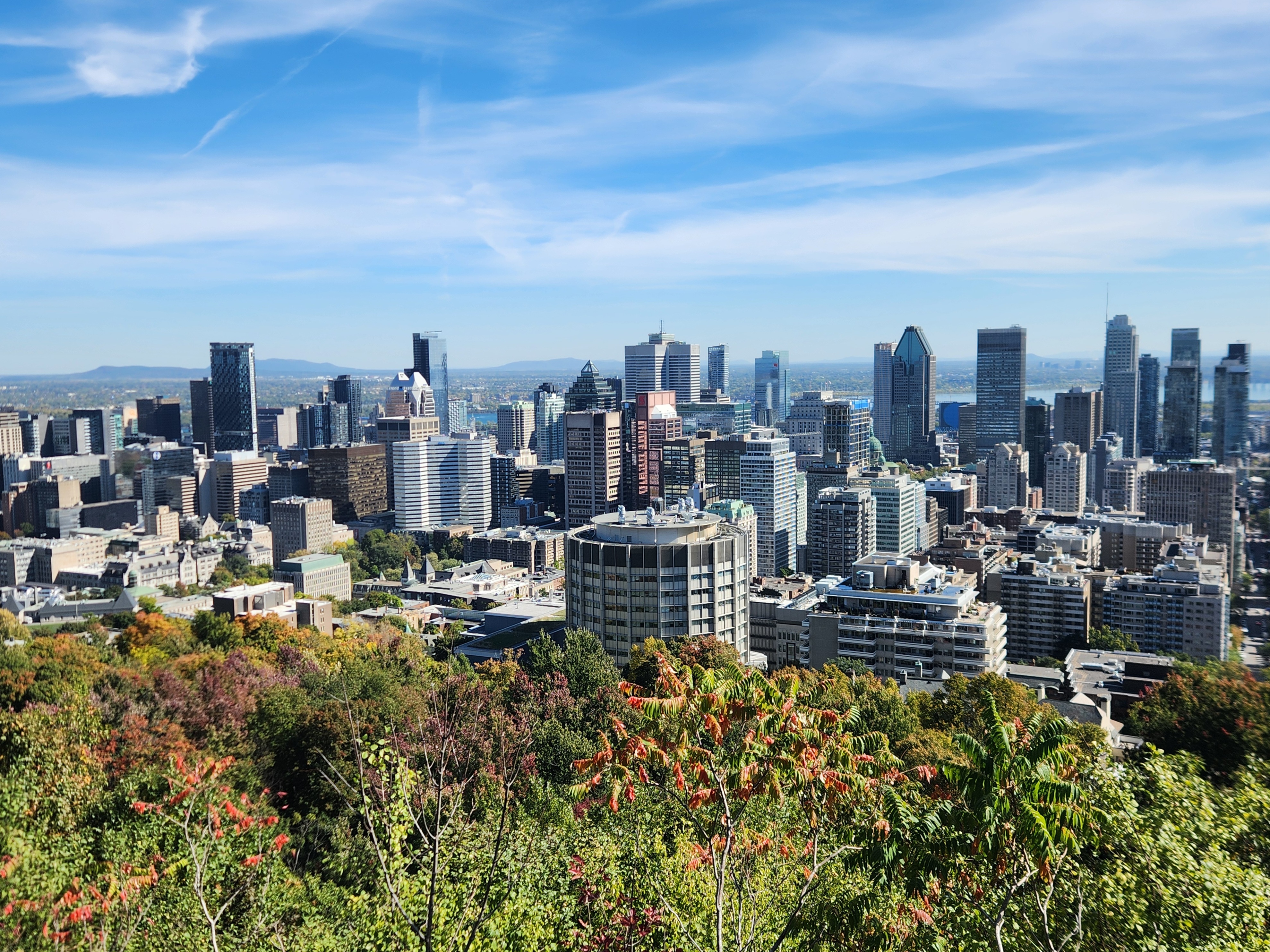 Les sommets de nos plus hautes tours (~165m+) sont visibles depuis certains angles du belvédère Kondiaronk.