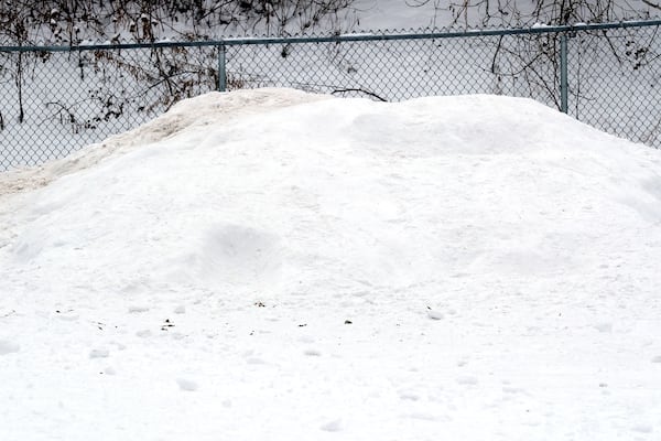 Une butte de neige dans une cour d’école primaire de Gatineau. (Patrick Woodbury/Le Droit)