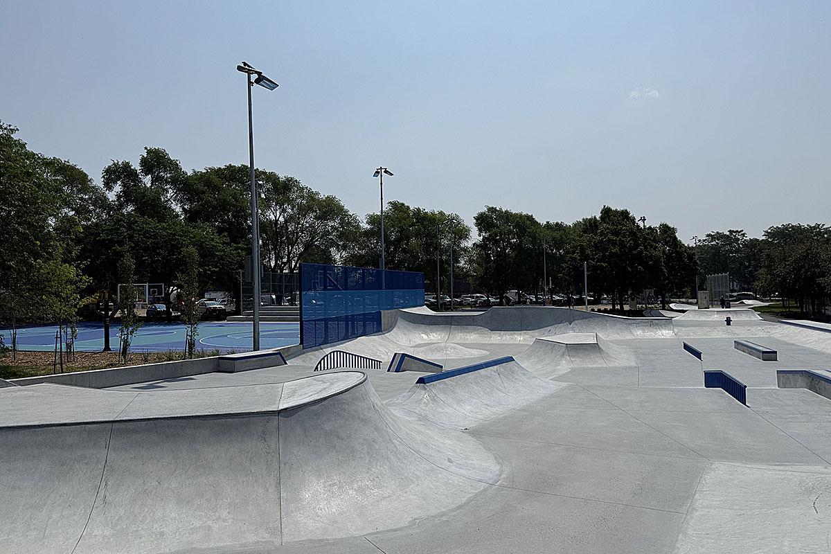 Les aménagements incluent des paniers de basketball abaissés favorisant l’accessibilité, des obstacles variés pour stimuler les parcours des planchistes, ainsi qu’un nouvel éclairage visant à améliorer la sécurité.
