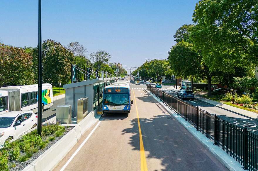 Le SRB Pie-IX, qui reliera quatre arrondissements de Montréal ainsi que l’est de Laval, proposera des trajets dans une voie réservée dotée de feux prioritaires.