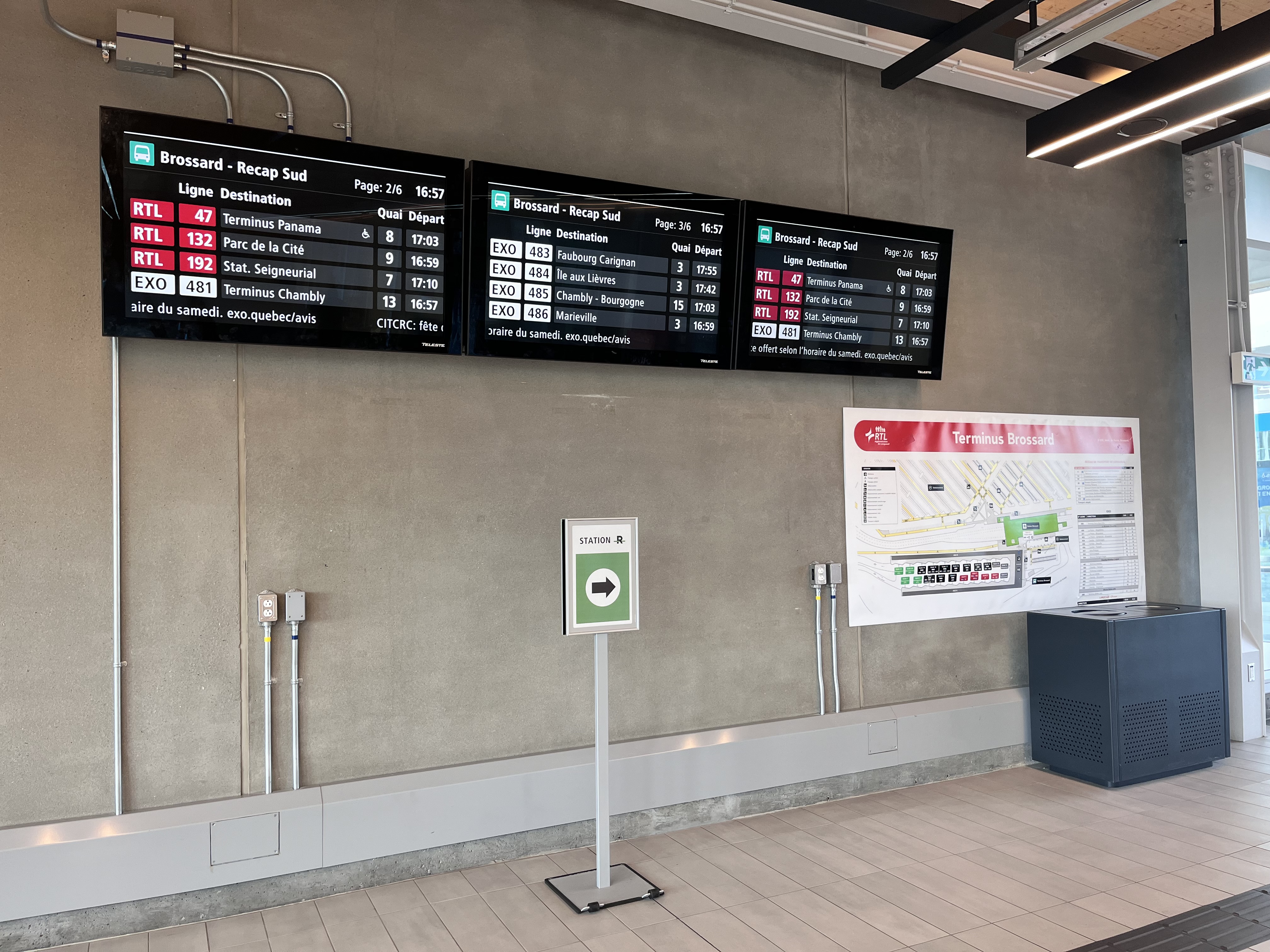 Les nouveaux écrans dans le Terminus Brossard sont en service.