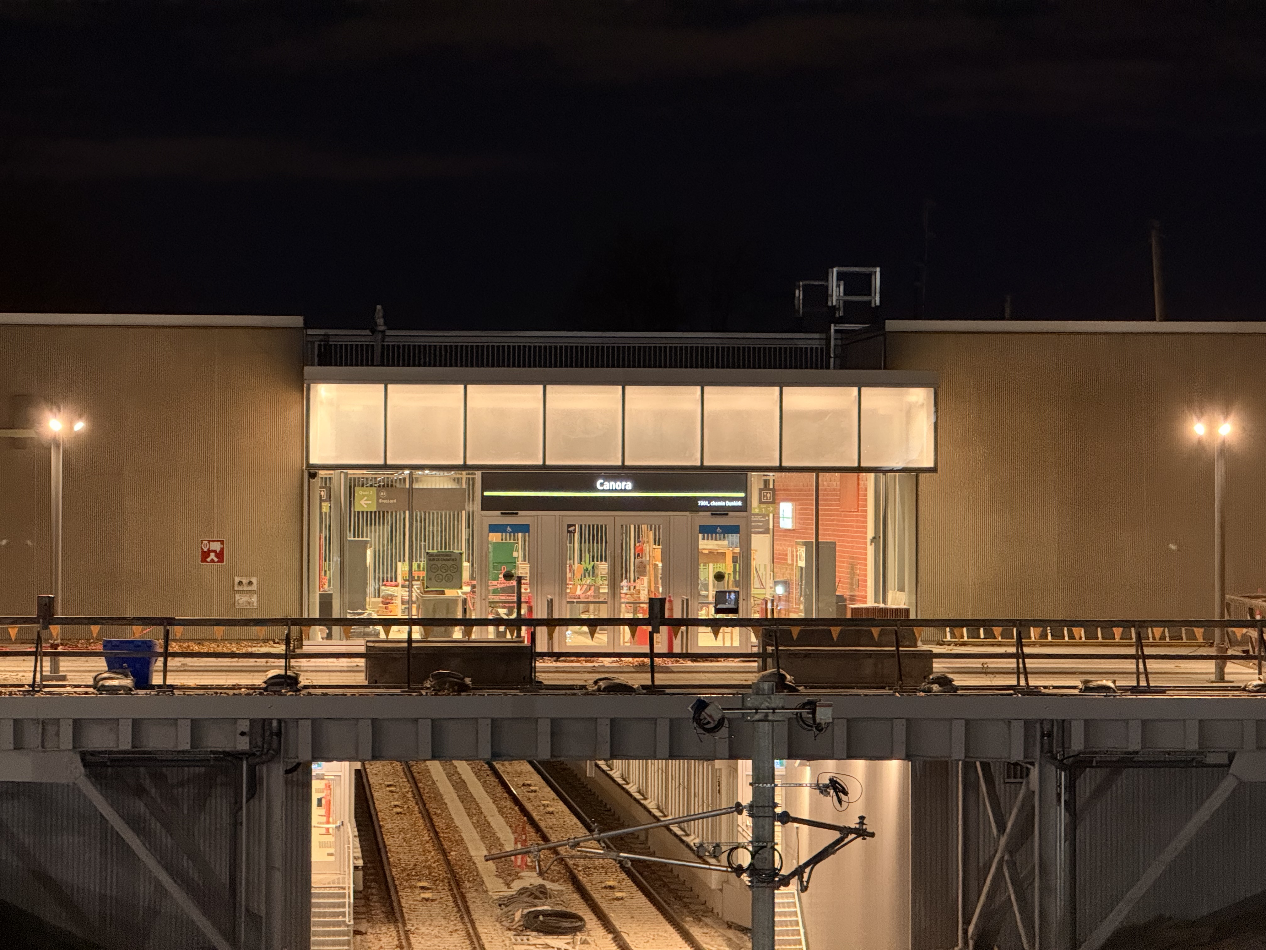 Afin de finaliser la construction des accès de la station Canora, une passerelle piétonne, reliant la rue Jean-Talon Ouest et l’entrée de la station, sera mise en place dans les prochains mois, comme prévu dans la conception initiale. Cette passerelle permettra de bonifier l’accès à la station pour les usagers du secteur.