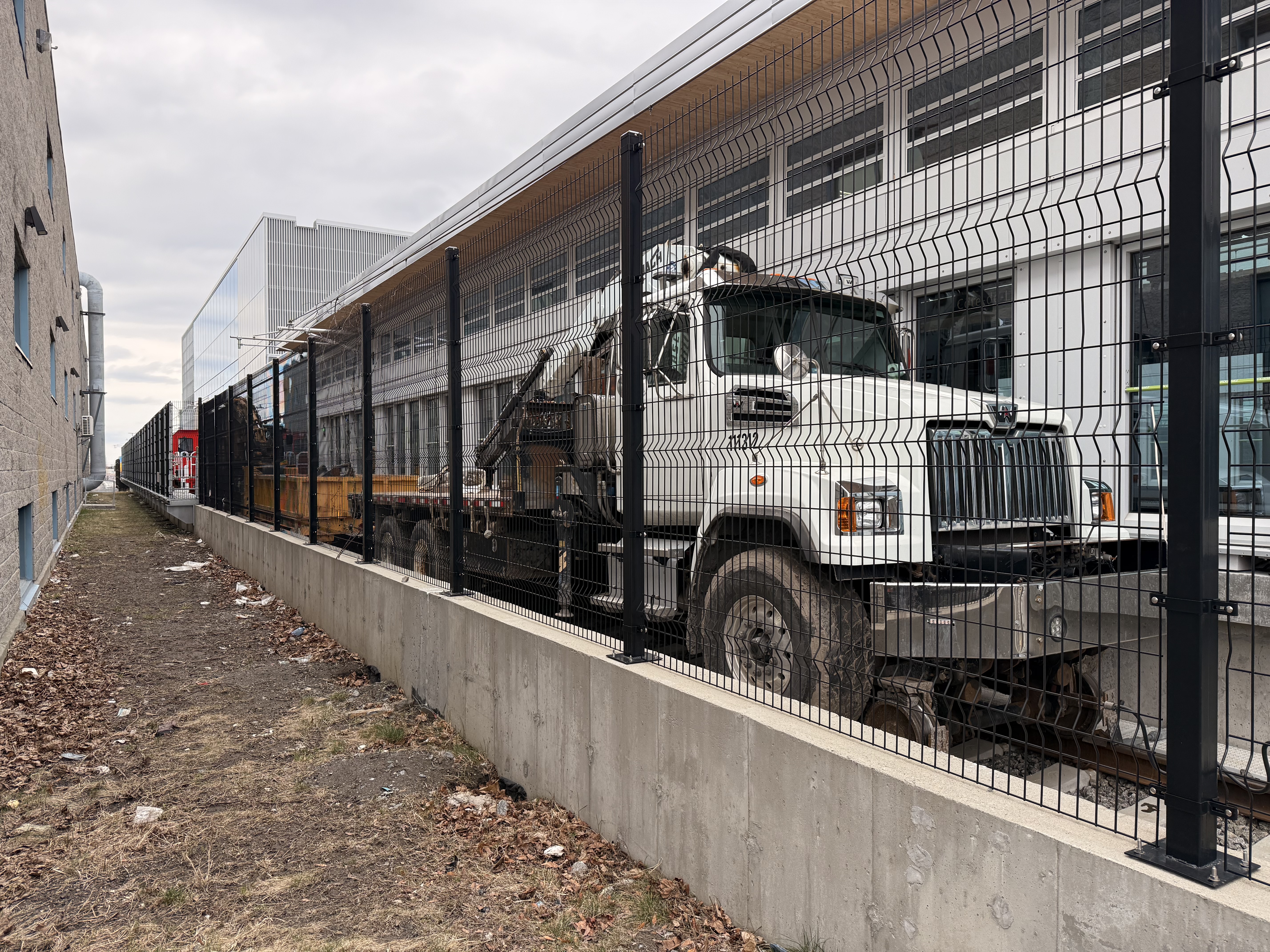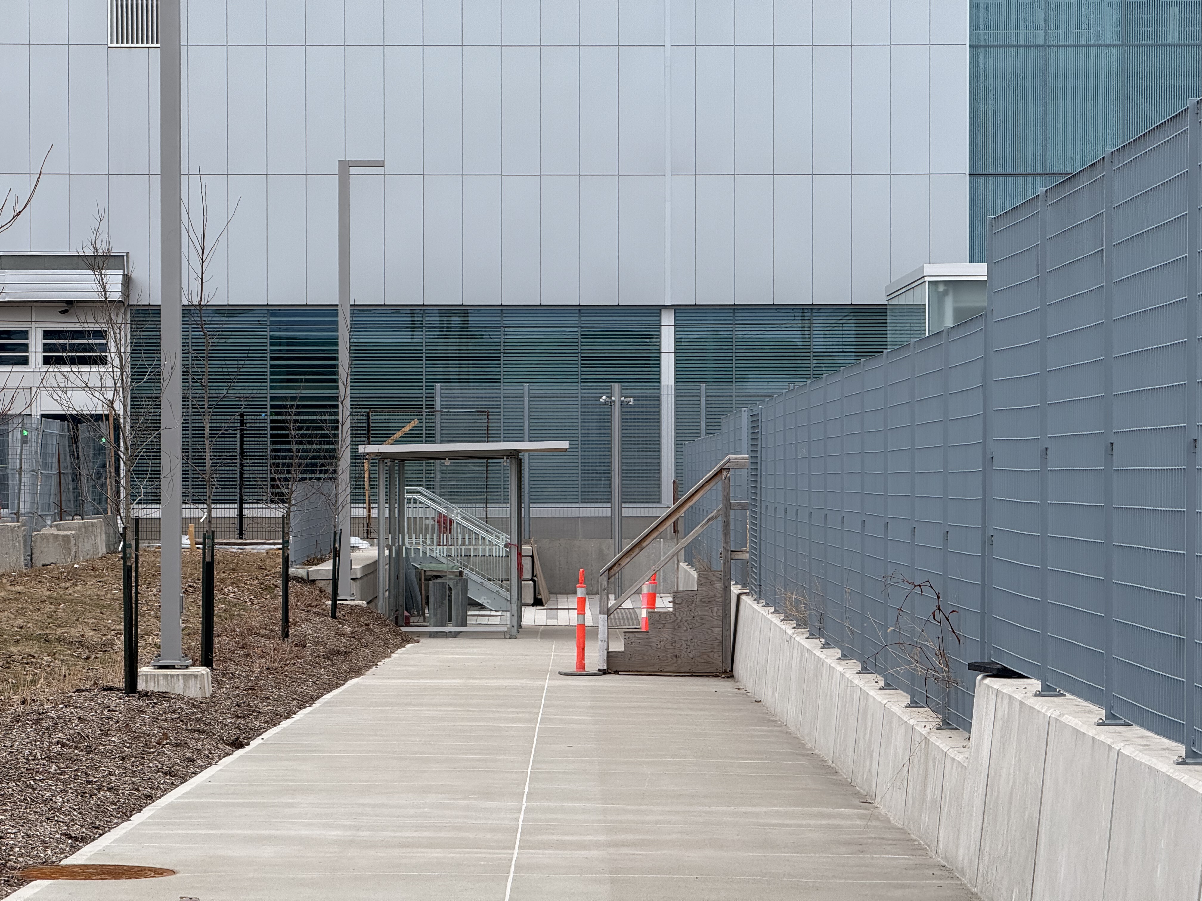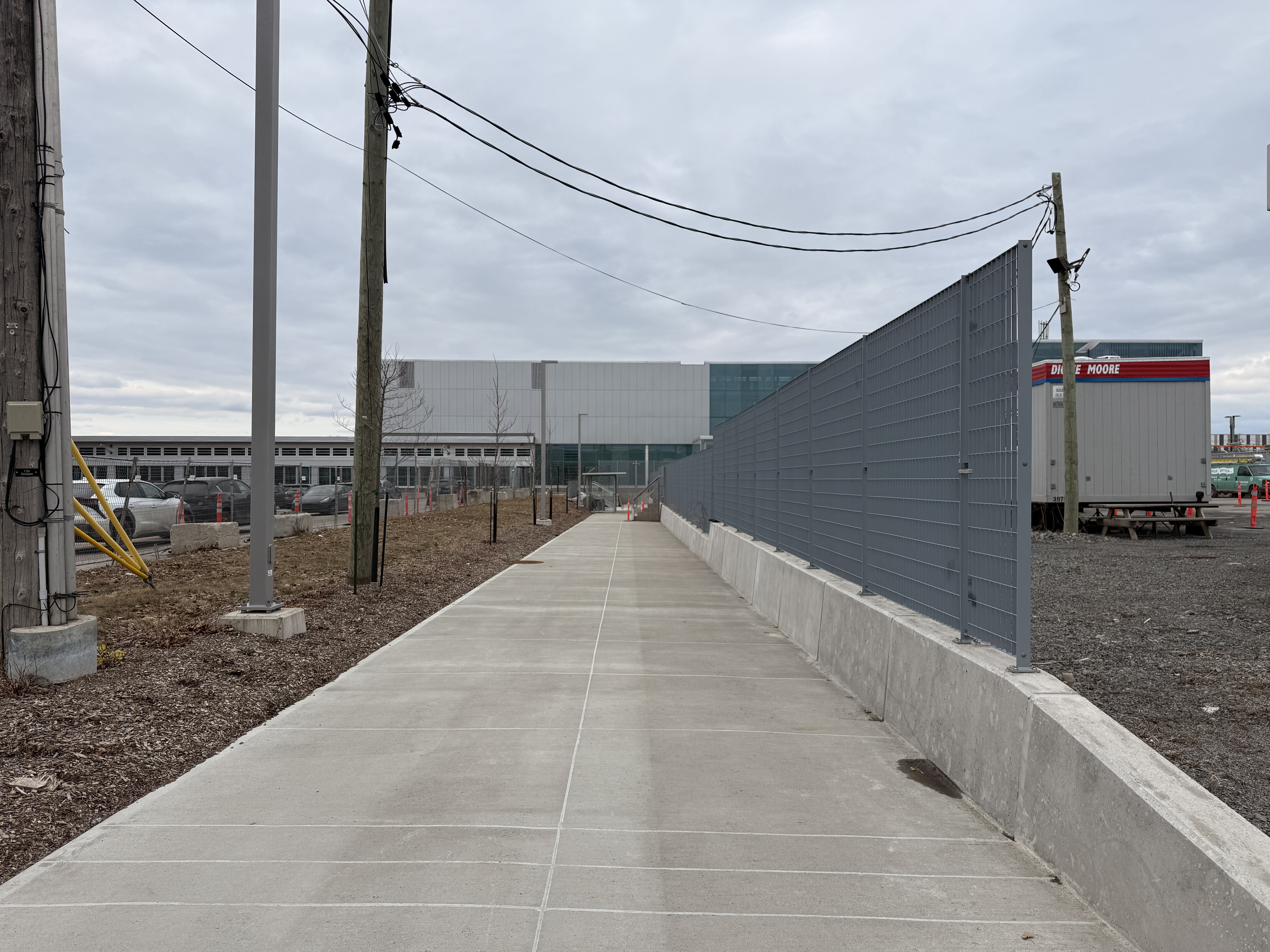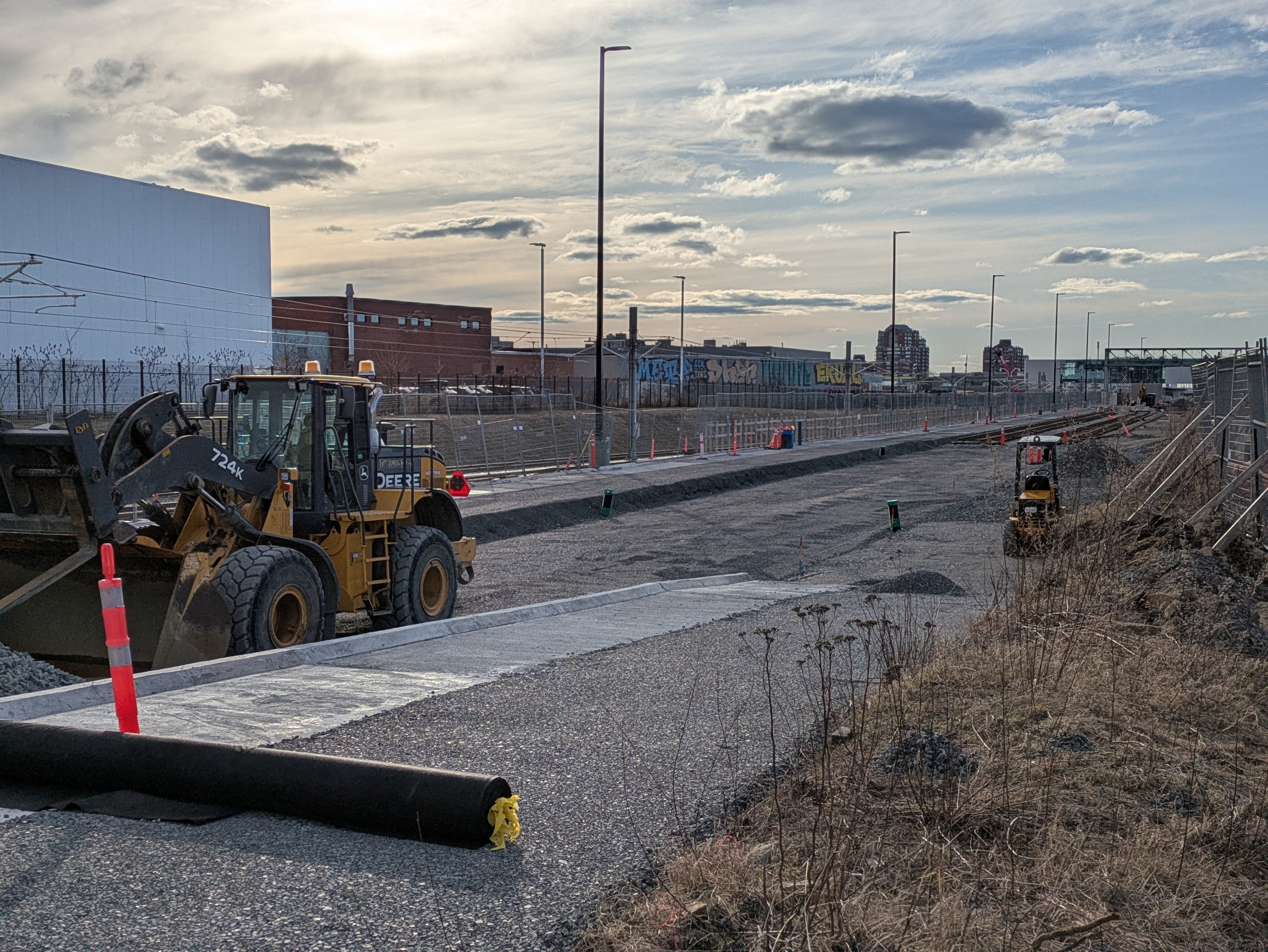 Dans le cadre du projet REM, la Caisse de dépôt et placement du Québec Infra (CDPQi)a construit une piste multifonctionnelle, reliant la station A40 et se terminant en bordure de la rue Stinson, à environ 100 mètres de l’est de la rue Hodge. Cette station, situé dans l’arrondissement St-Laurent, au niveau de l’ancien dépôt à neige de la rue Stinson, va constituer un pole d’attractivité pour les transports actifs. Or cette station se trouve dans un quartier très industriel, où les liens cyclables sécuritaires ne sont pas existant.
