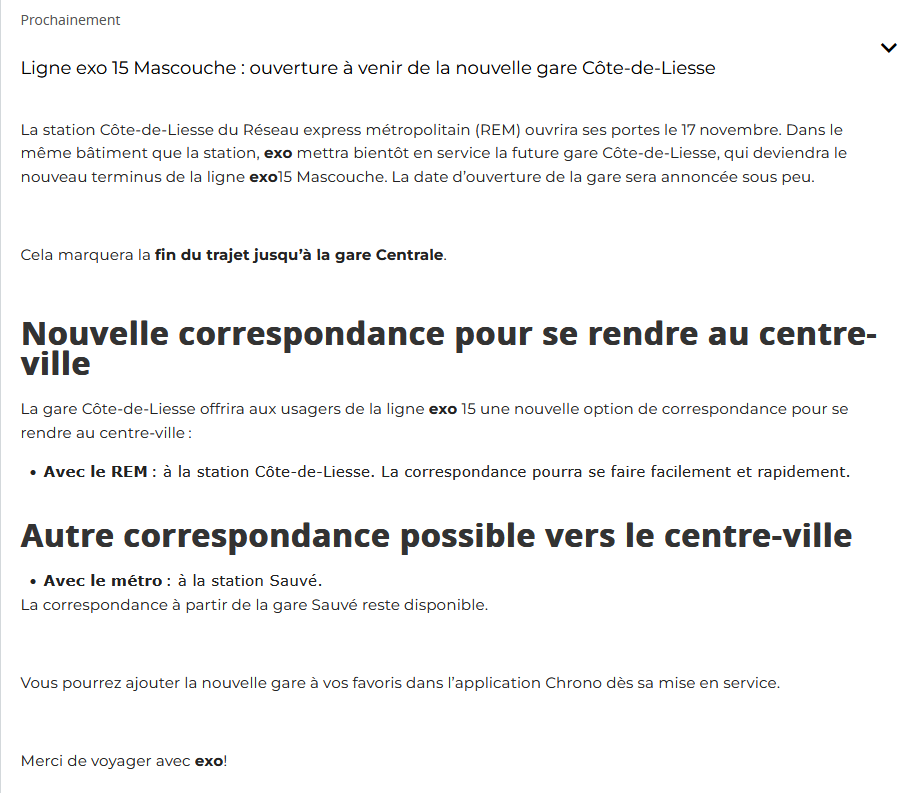 Comme les trains n’ont plus besoin d’aller jusqu’au gare centrale, ca serait cool de voir un bonification lègere du service d’heure de pointe. Ils auront maintenant au moins 6 heures d’utilisation en moins par jour sur la ligne mascouche, assez pour ajouter un ou deux trains peut être?