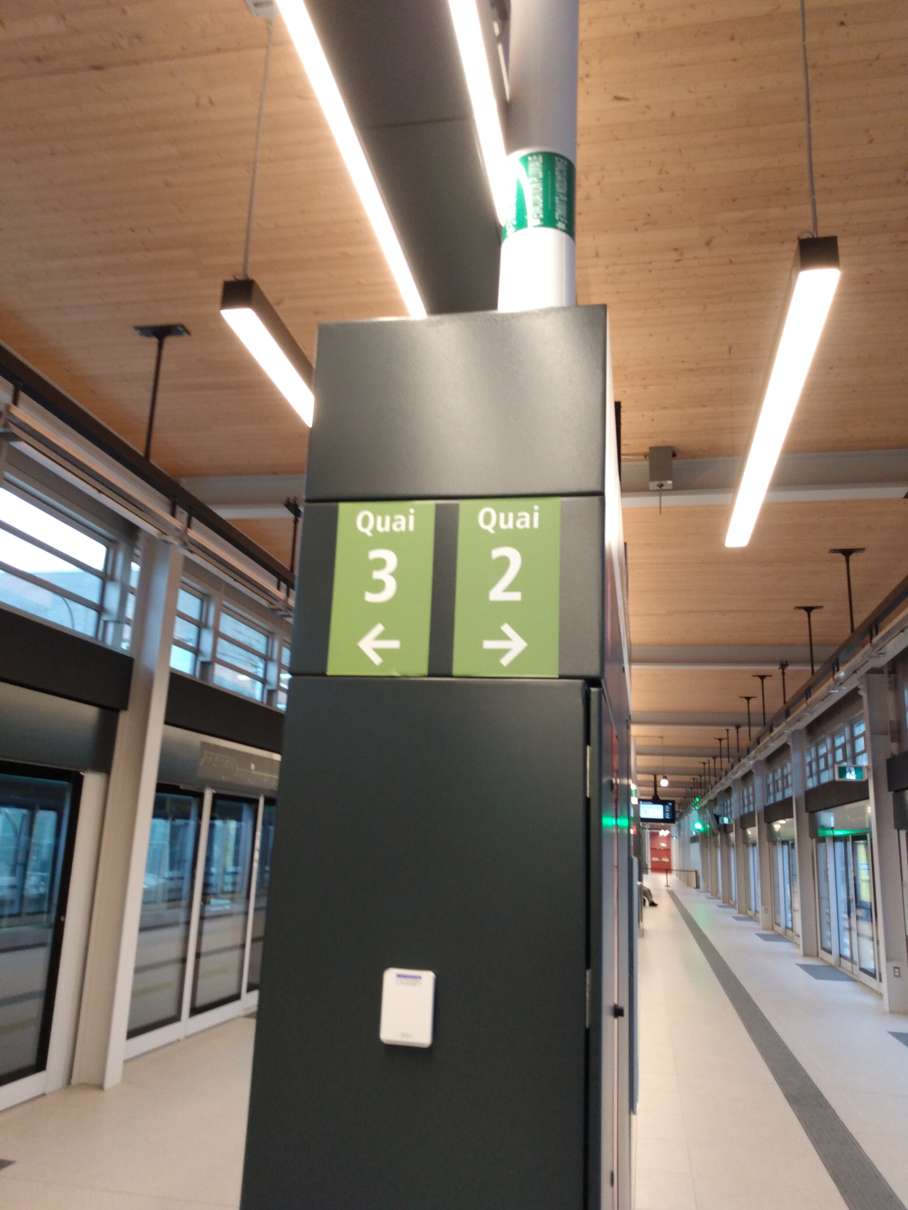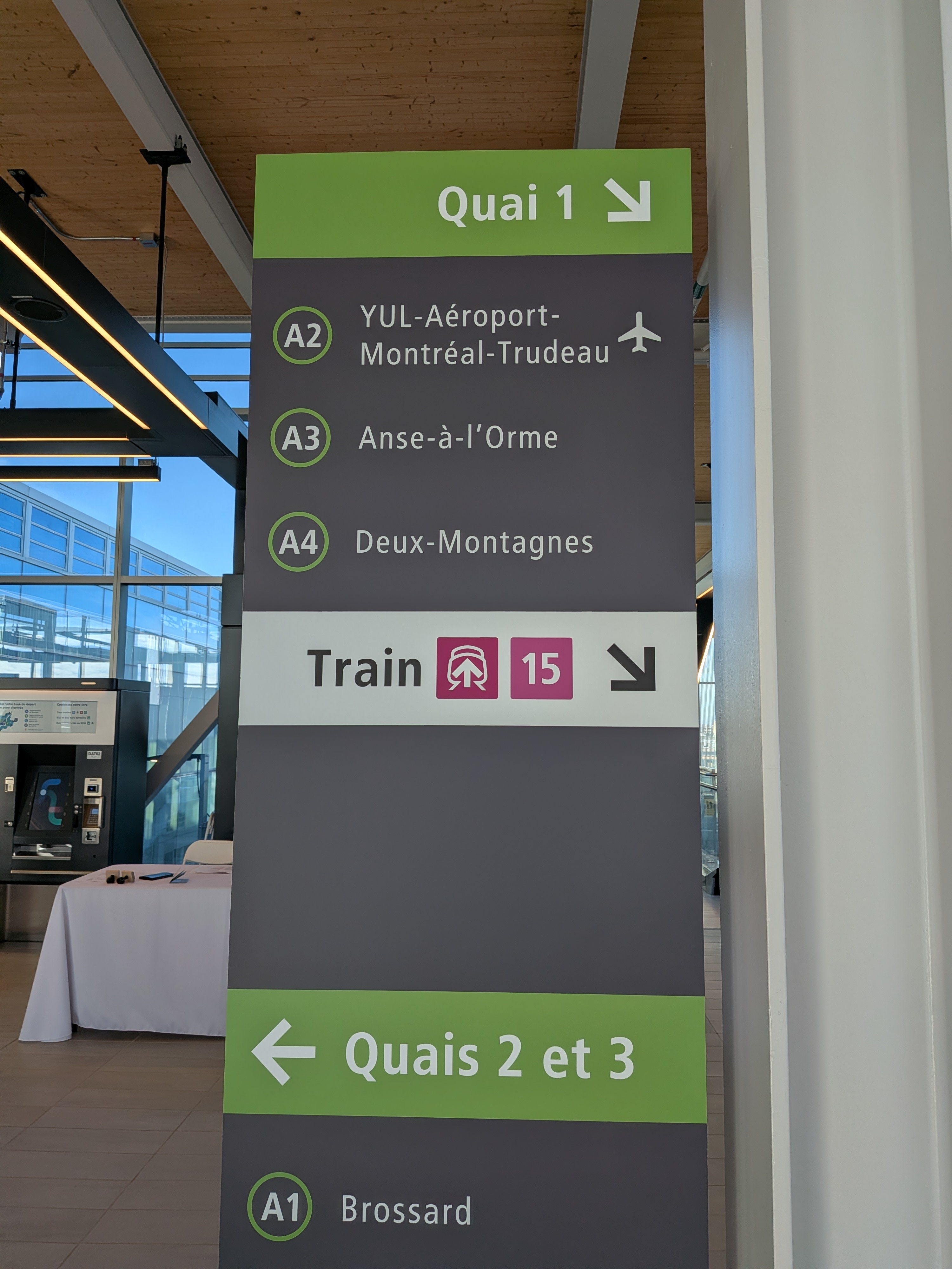 En parlant du train, la correspondance est assez facile et rapide. En direction “Montréal”, il y a une porte à chaque extrémité du quai partagé. Ensuite c’est une montée d’escalier roulant, quelques mètres pour traverser les voies pour la direction A1 et une descente d’escalier roulant. 2 minutes tout au plus. En direction “Mascouche” c’est presque aussi efficace que Lionel Groulx, sauf qu’il faut aller à une des extrémités du quai.