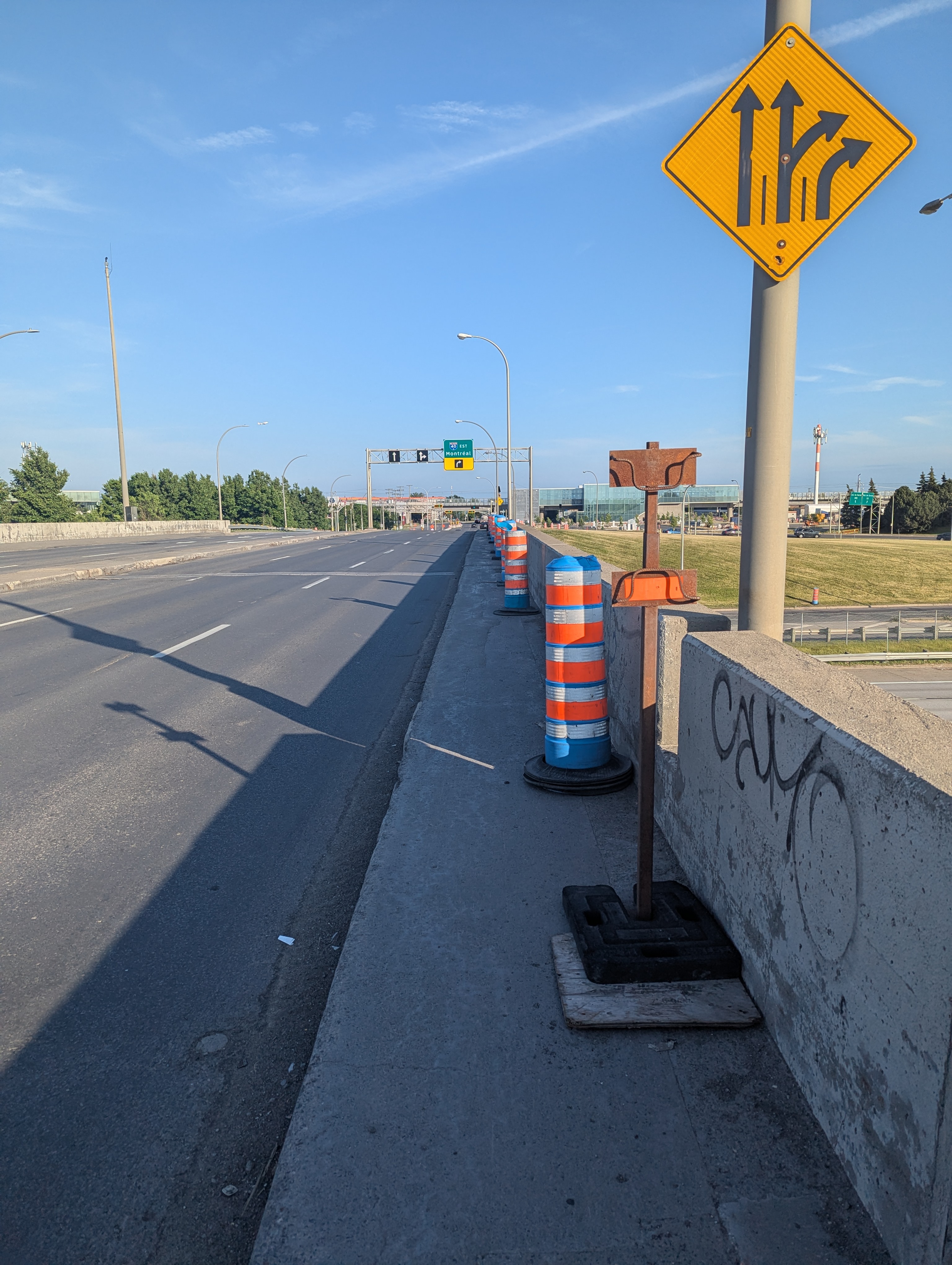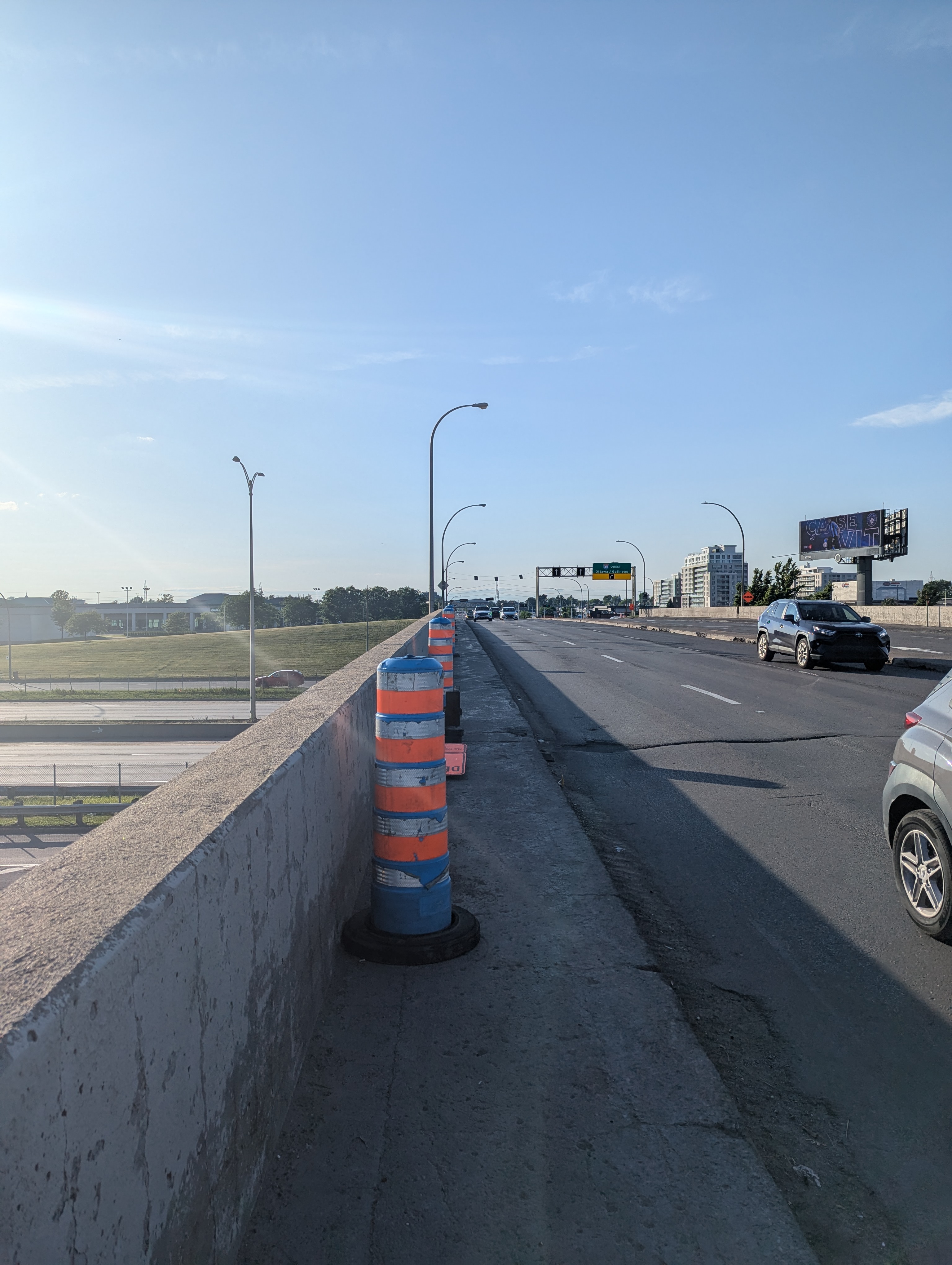 Also, for the works on the bridge, the contractors have left the orange cones on the already narrow sidewalk for over a week, making it even narrower, when they could have spent 5 more minutes to put it on the grass, out of the way