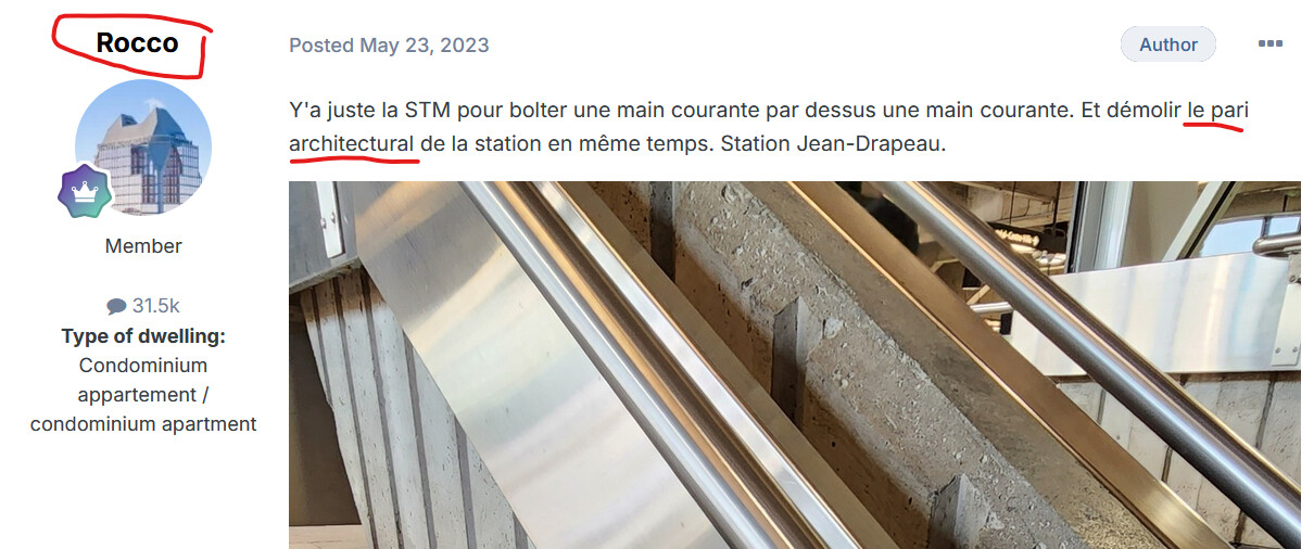 J’ajouterais que la STM a même mis en place le comité Jean-Dumontier qui se consacre précisément à assurer la qualité des interventions et le respect du patrimoine dans le réseau.