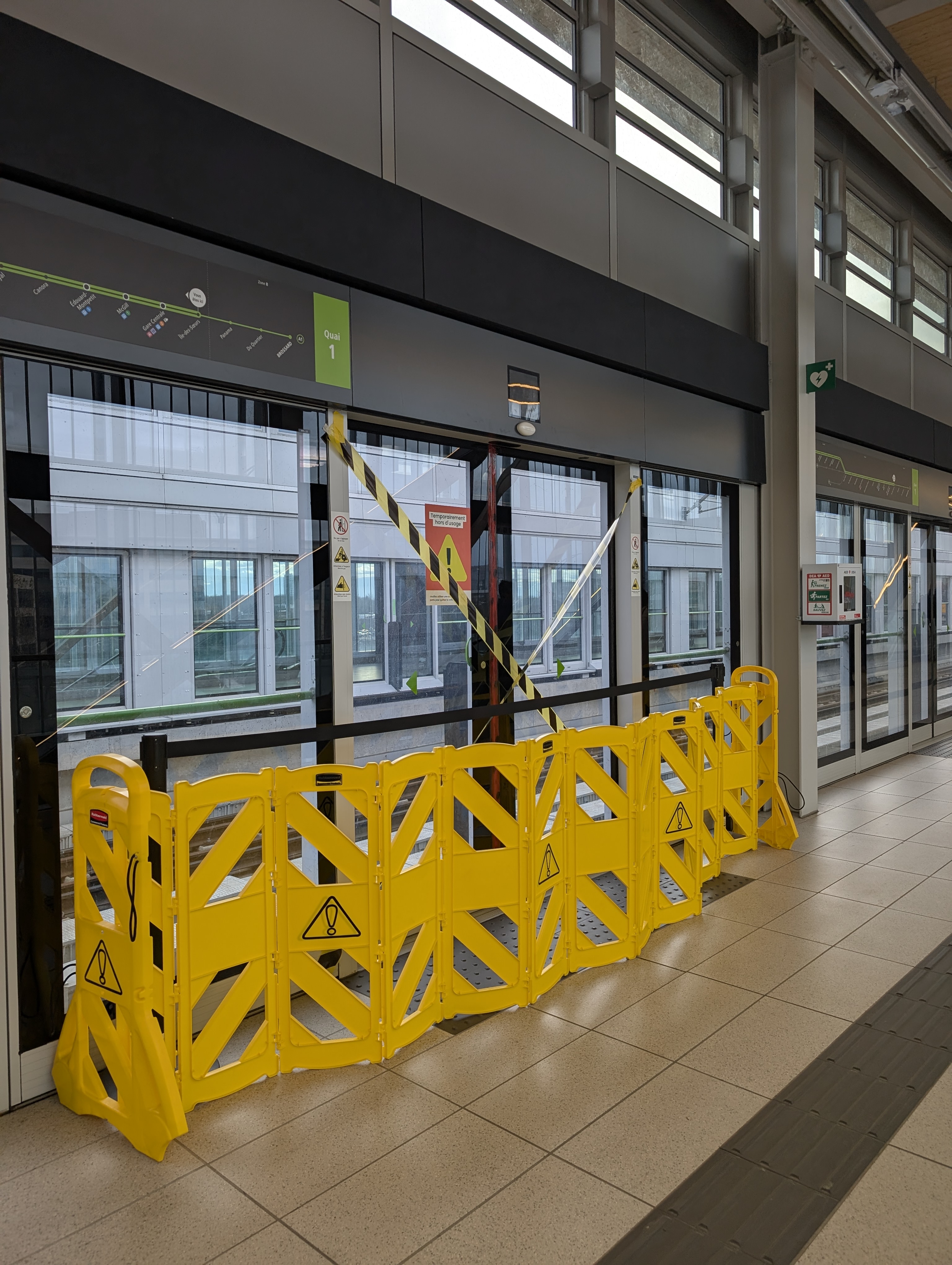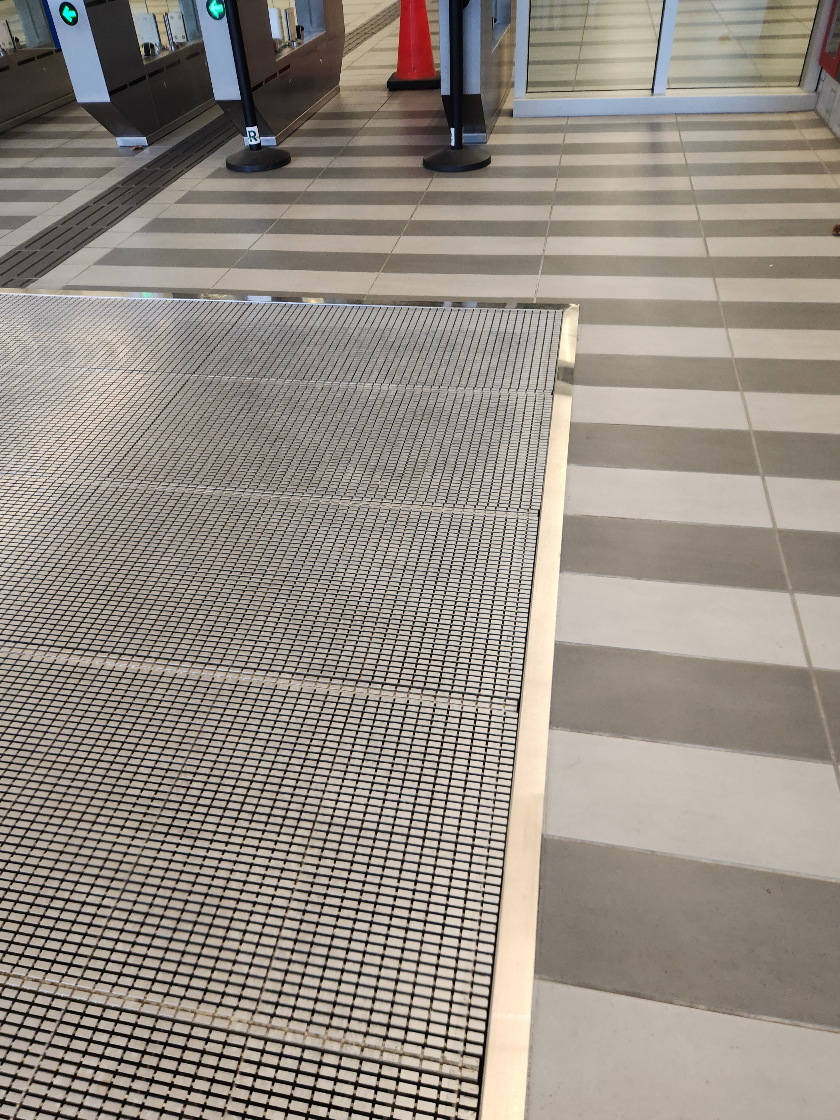 La nouvelle bordure métallique autour du paillasson d’entrée vient finalement d’être posée, après plusieurs mois. Le “duck tape” au sol a été retiré. Les indicateurs de charge sont fonctionnels à la station IDS. Il ne reste qu’à mettre à jour les cartes du réseau au dessus des portes pallières.