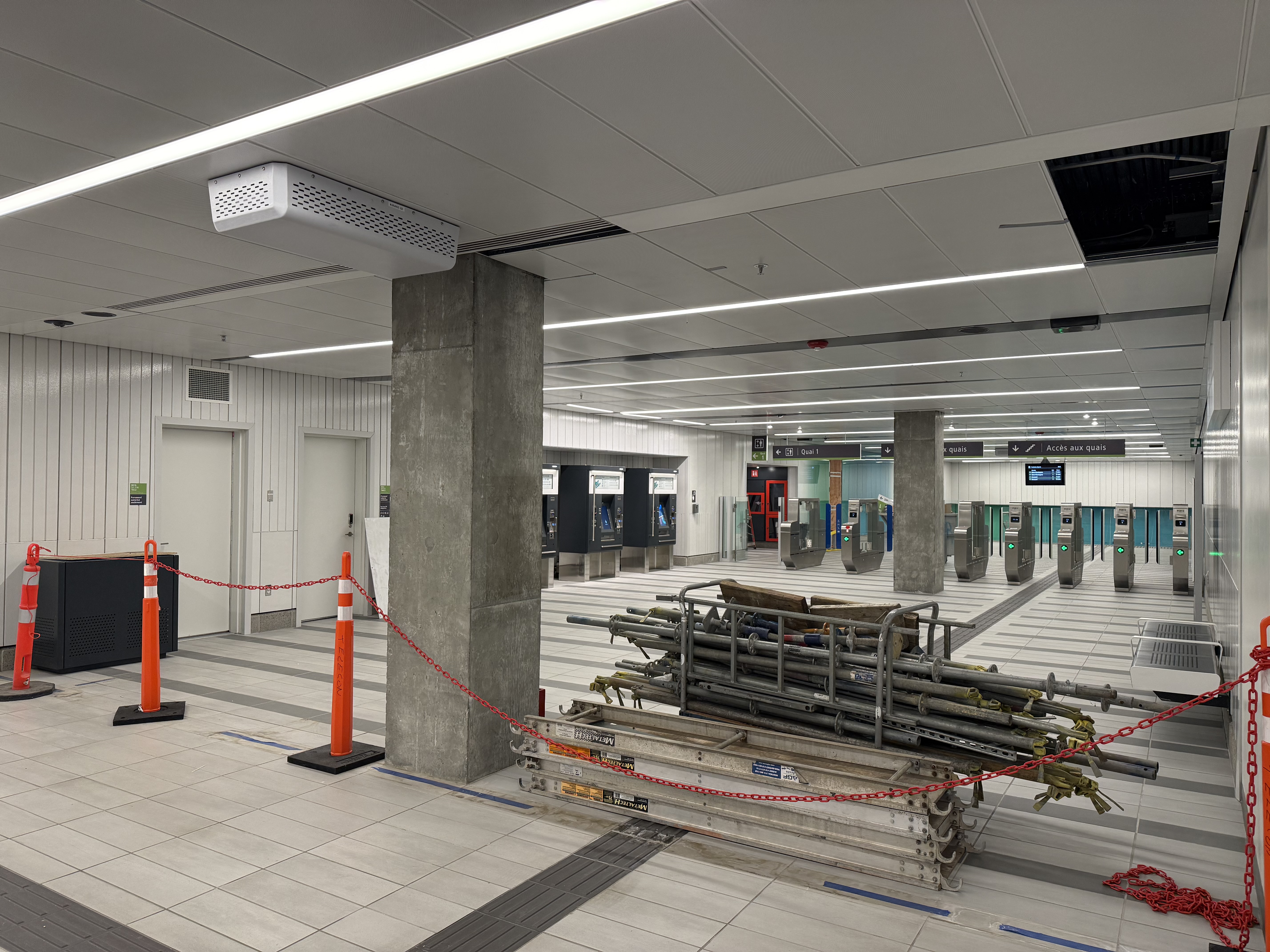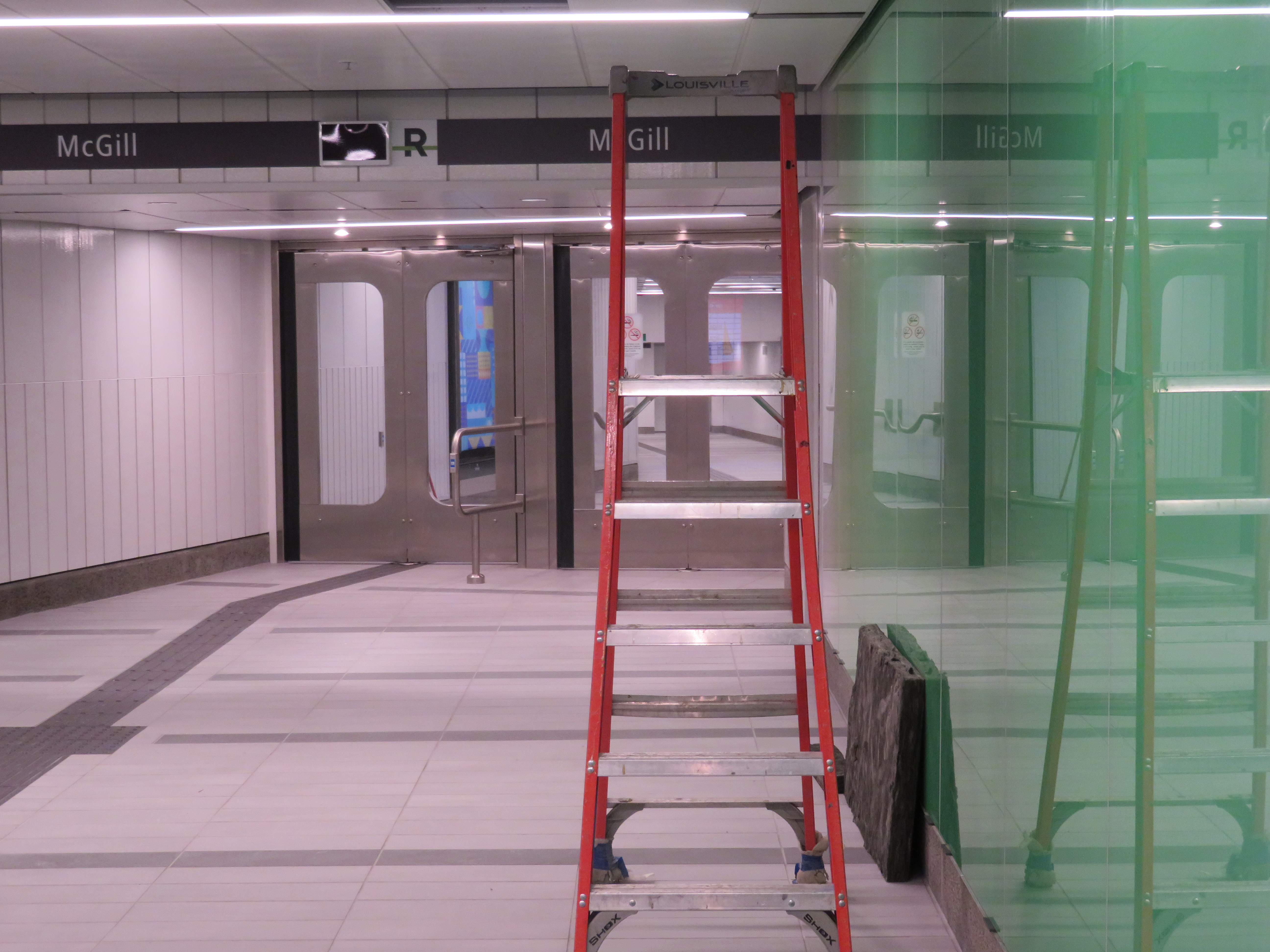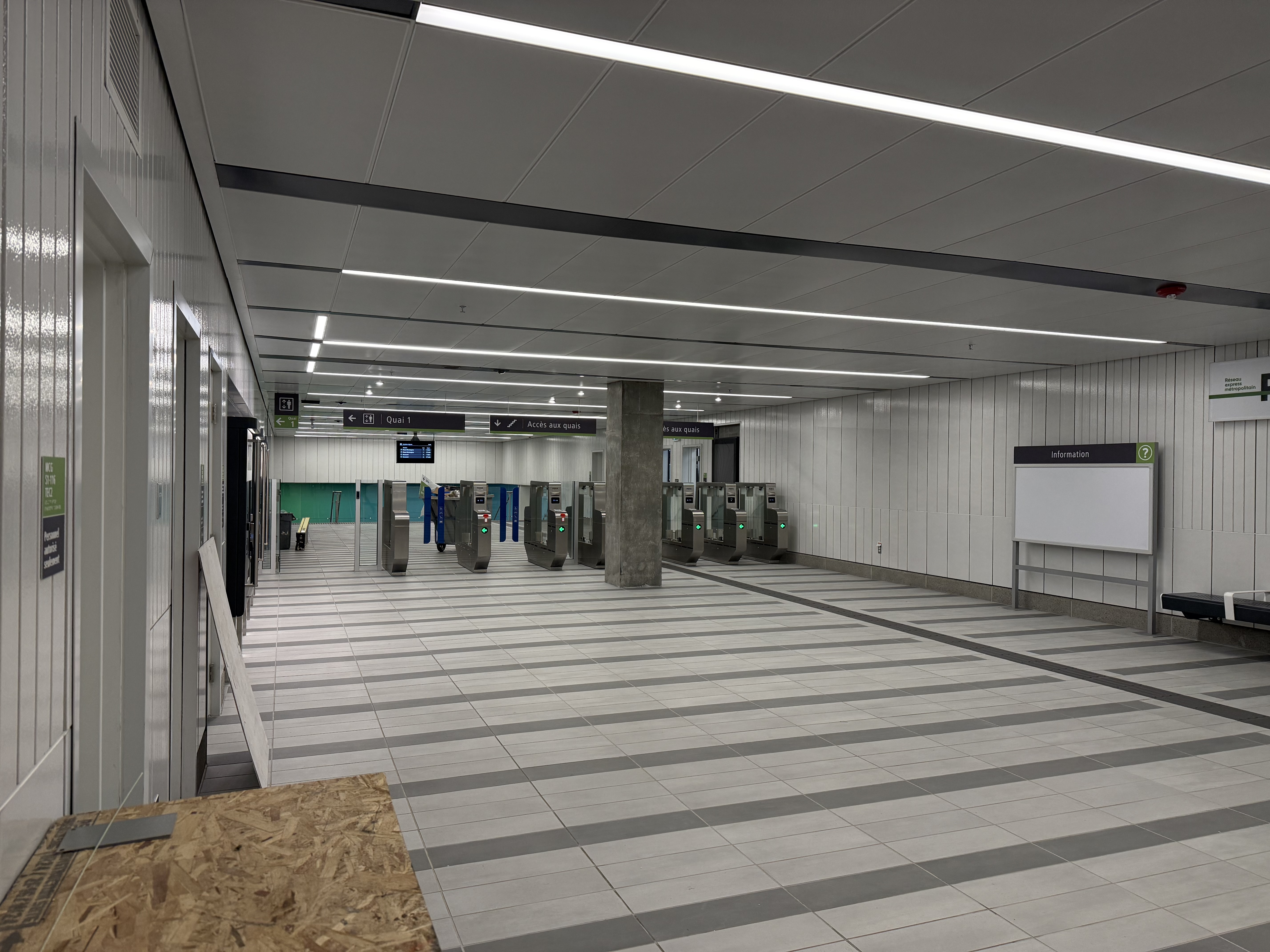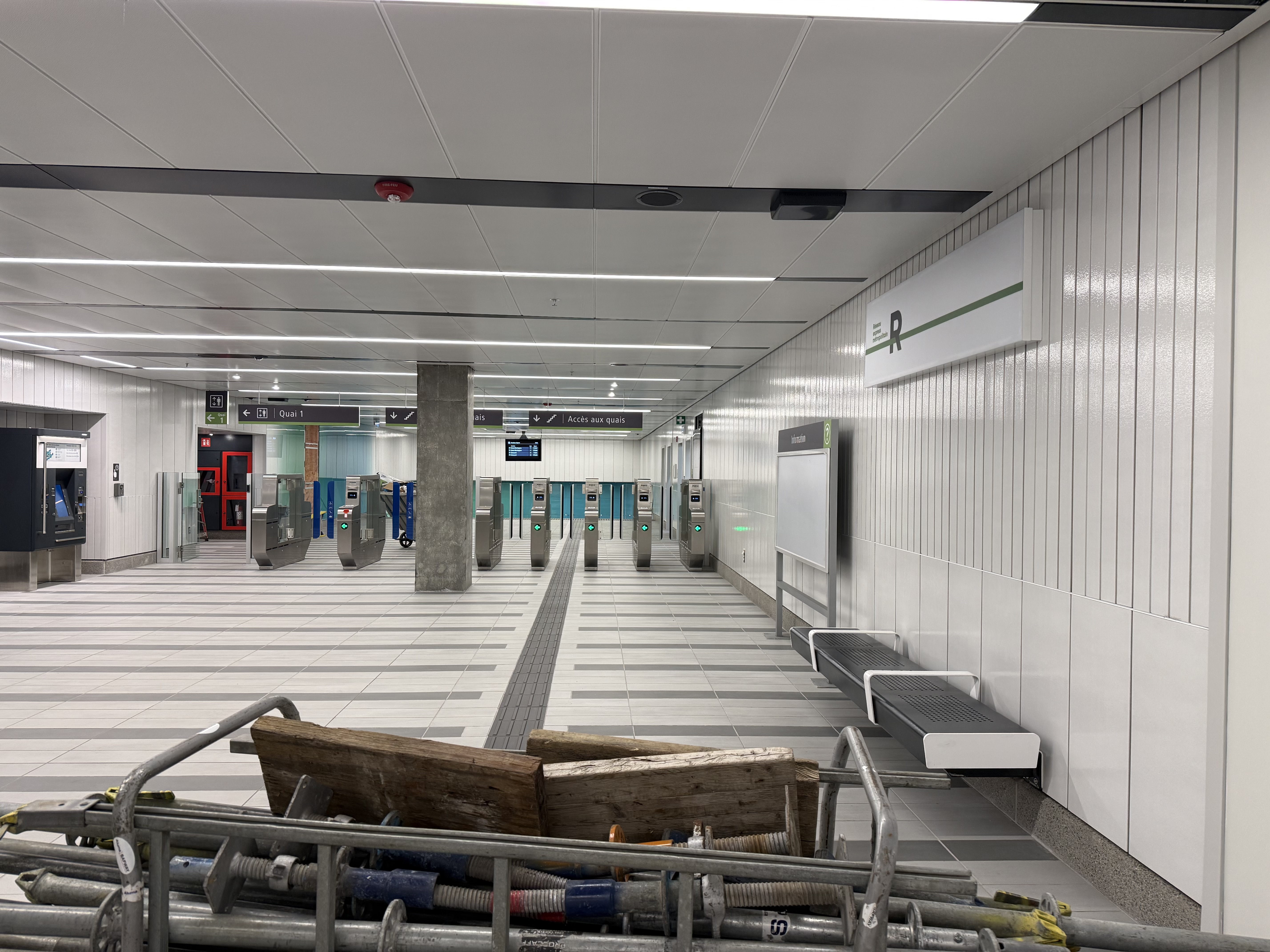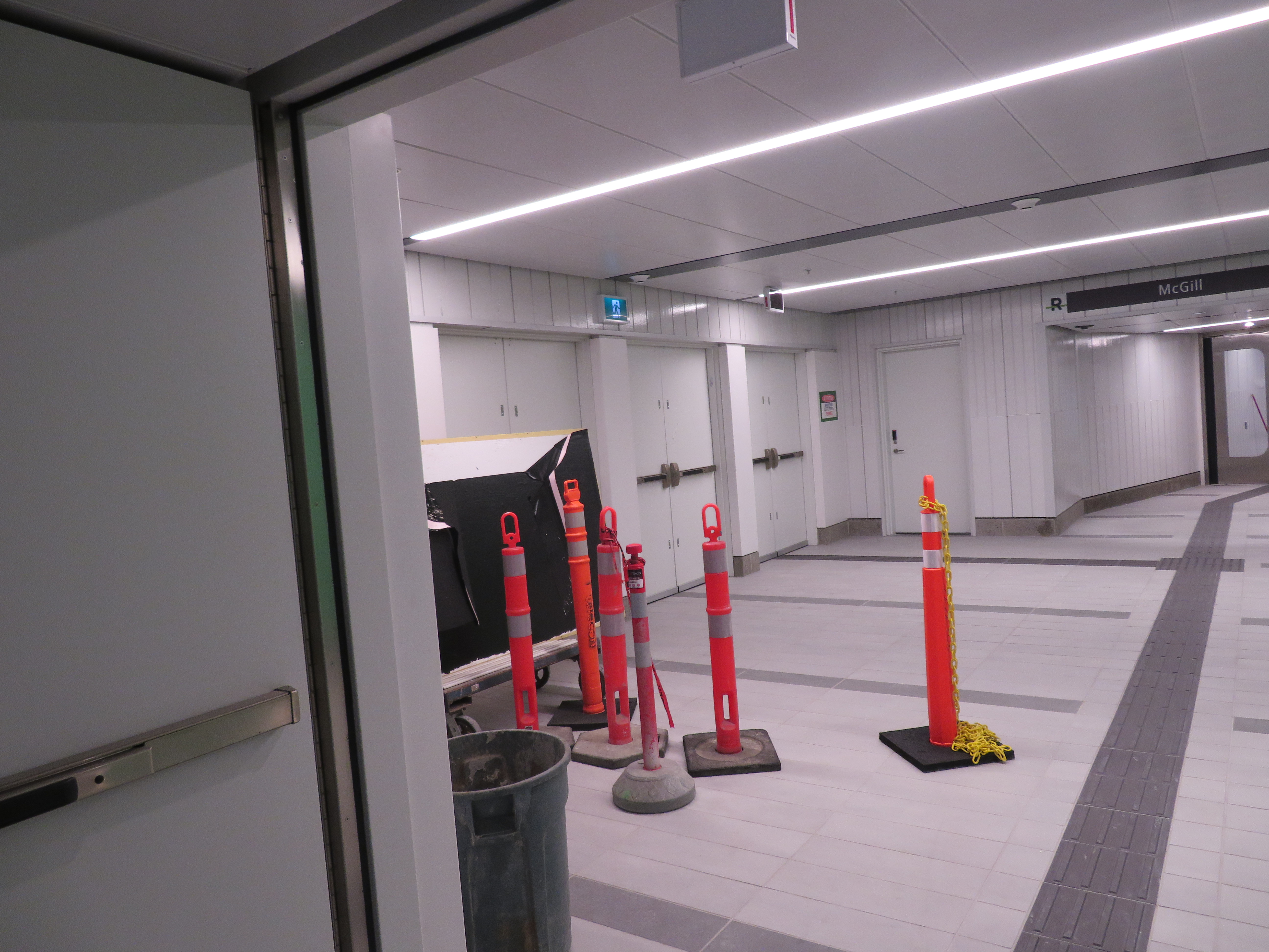 Côté nord (vers de-Maisonneuve) c’est un corridor (vers le tunnel STM et l’entrée nord - on peut déjà le voir) et un nouvel espace commercial.