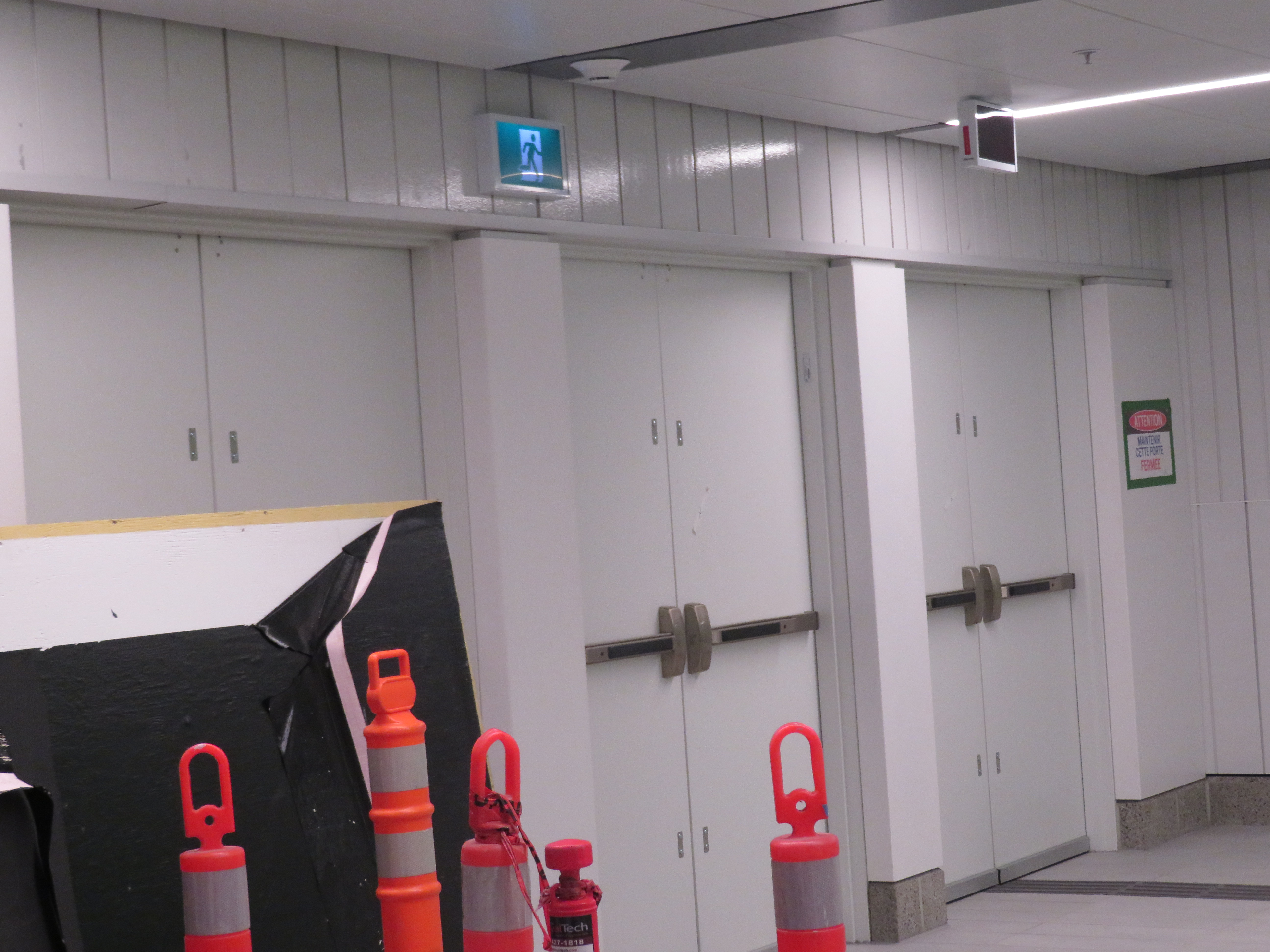 C’est presque 50% plus large qu’avant et le corridor est maintenant aligné avec les deux centres d’achats (il faisait un peu de zig-zag avant). La 3e porte double (vers st-Catherine) a été créé par la démolition des murs et la reconfiguration des espaces.