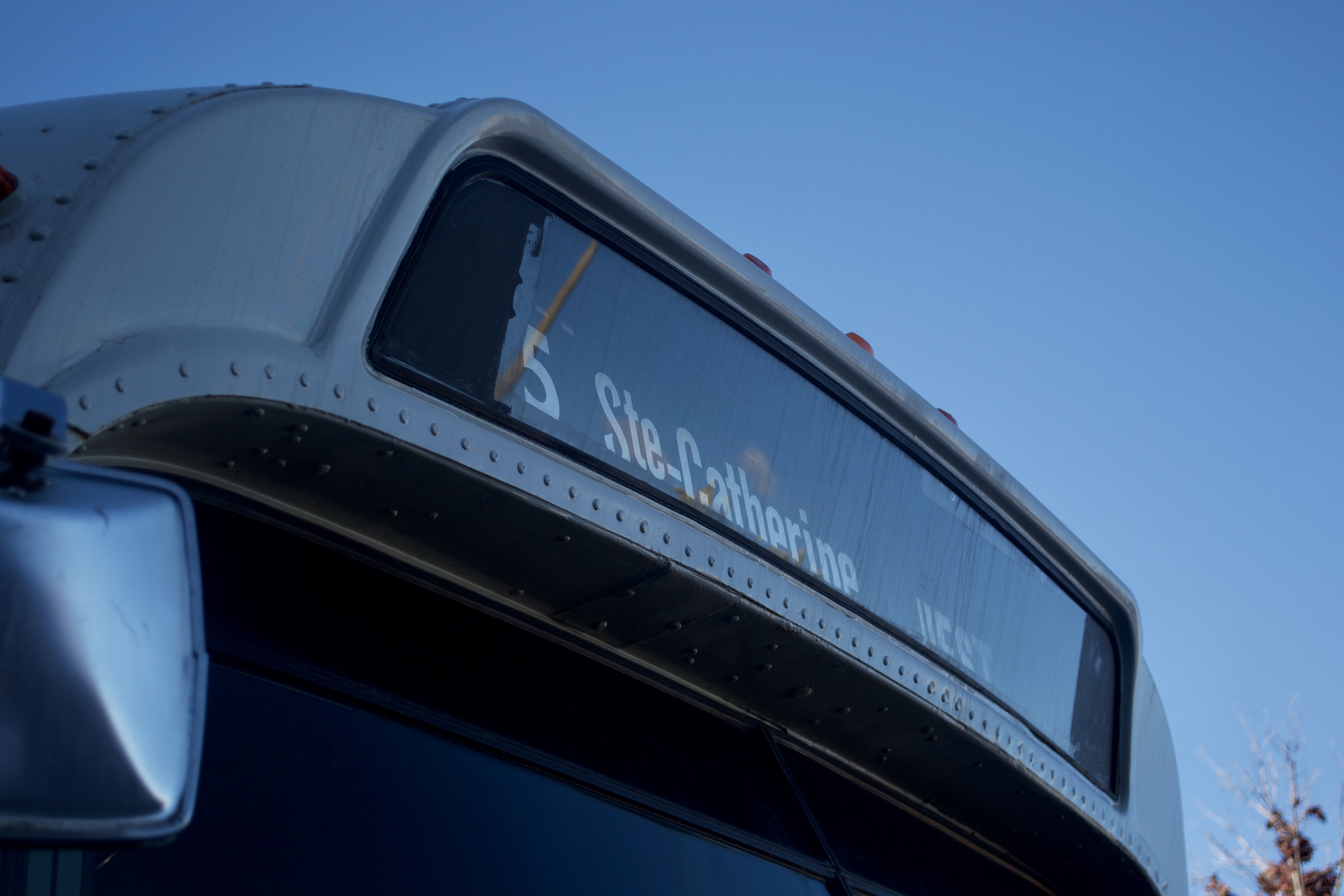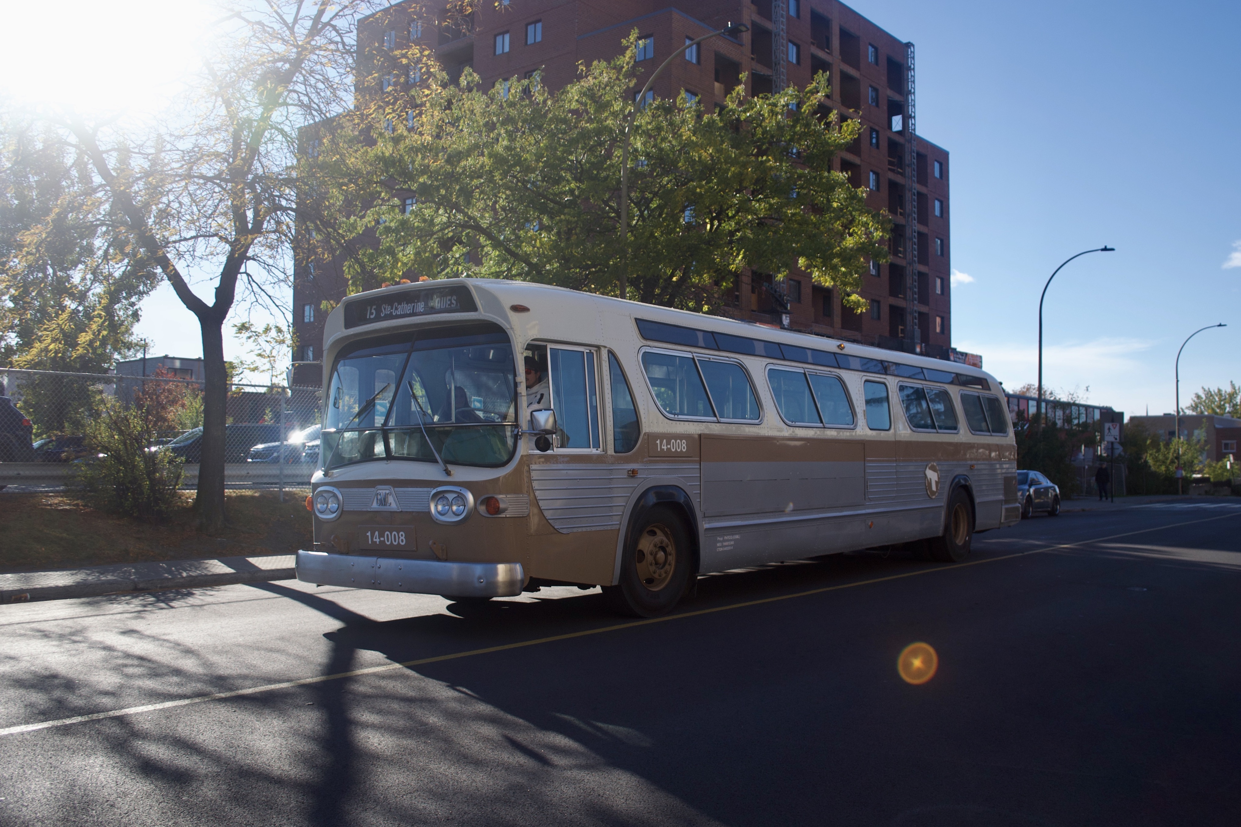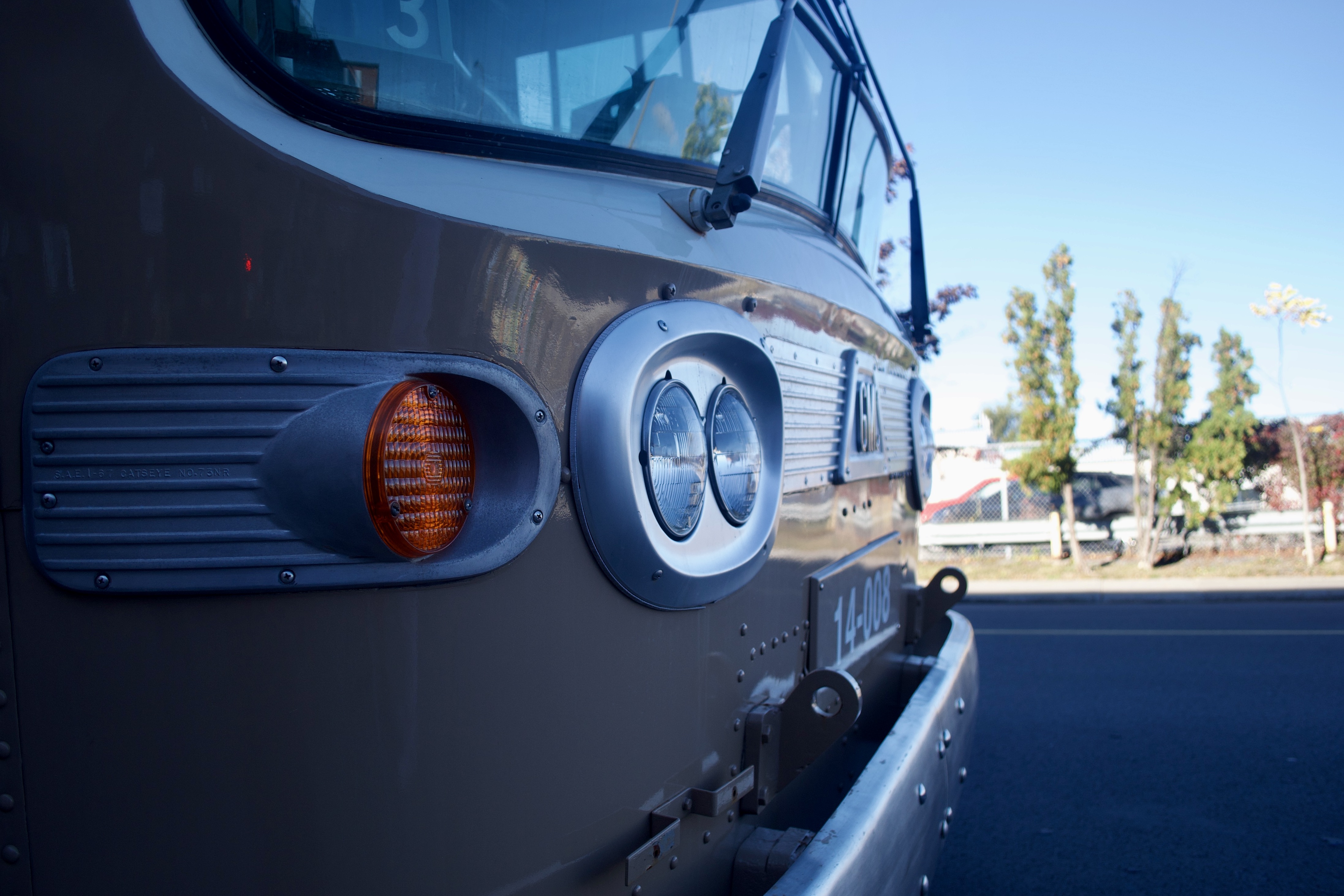Il y a bientôt un an, j’ai eu la chance de croiser un autobus de la FHTCQ qui rentrait d’un petit tour, pour le maintenir ‘en forme’. Les deux bénévoles me voyant prendre des photos, ils m’ont offert l’occasion de monter à bord. Ça ne se refuse pas!