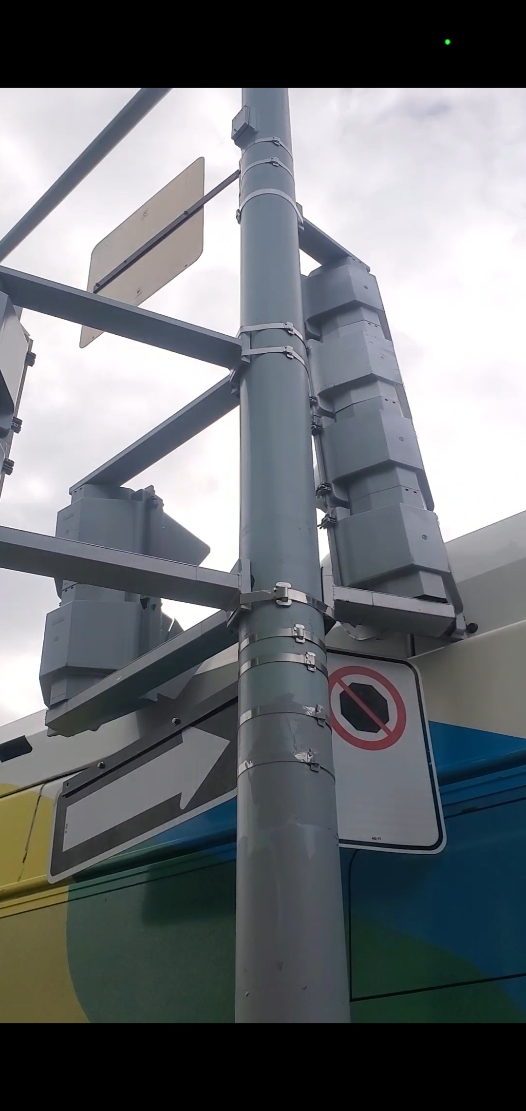 L’autobus est entré en collision avec le feu de circulation et la poubelle, à l’intersection