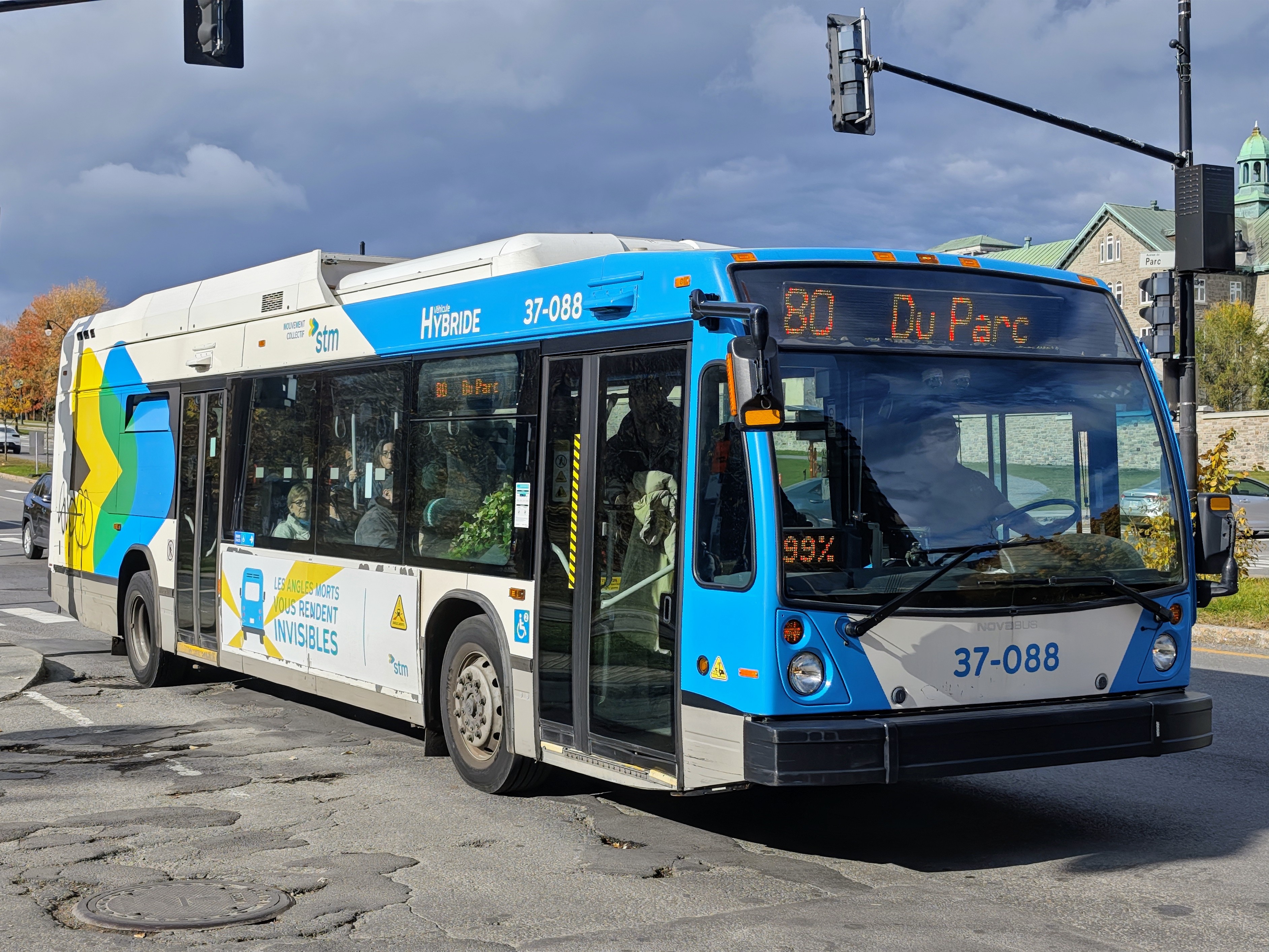 Exact! On était 1 min derrière un autre bus sur la même ligne (Nova Bus hybride). J’ai eu de la chance de manquer de peu le premier des deux!