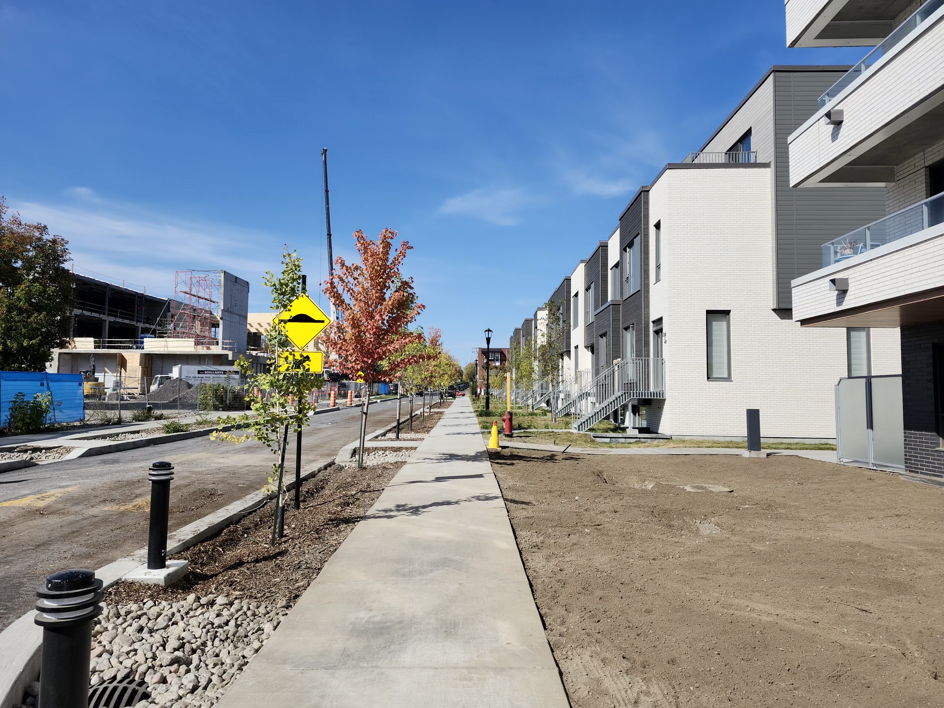 La rue commence à prendre forme. On peut remarquer une traverse dans l’Ilot qui pourra rejoindre un parc linéaire qui traverse d’est en ouest, au sud de Tak.