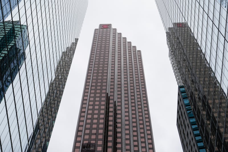 Des tours de sociétés bancaires sont photographiées dans le quartier financier de Toronto, le 8 septembre 2023. (Andrew Lahodynskyj/Archives La Presse Canadienne)