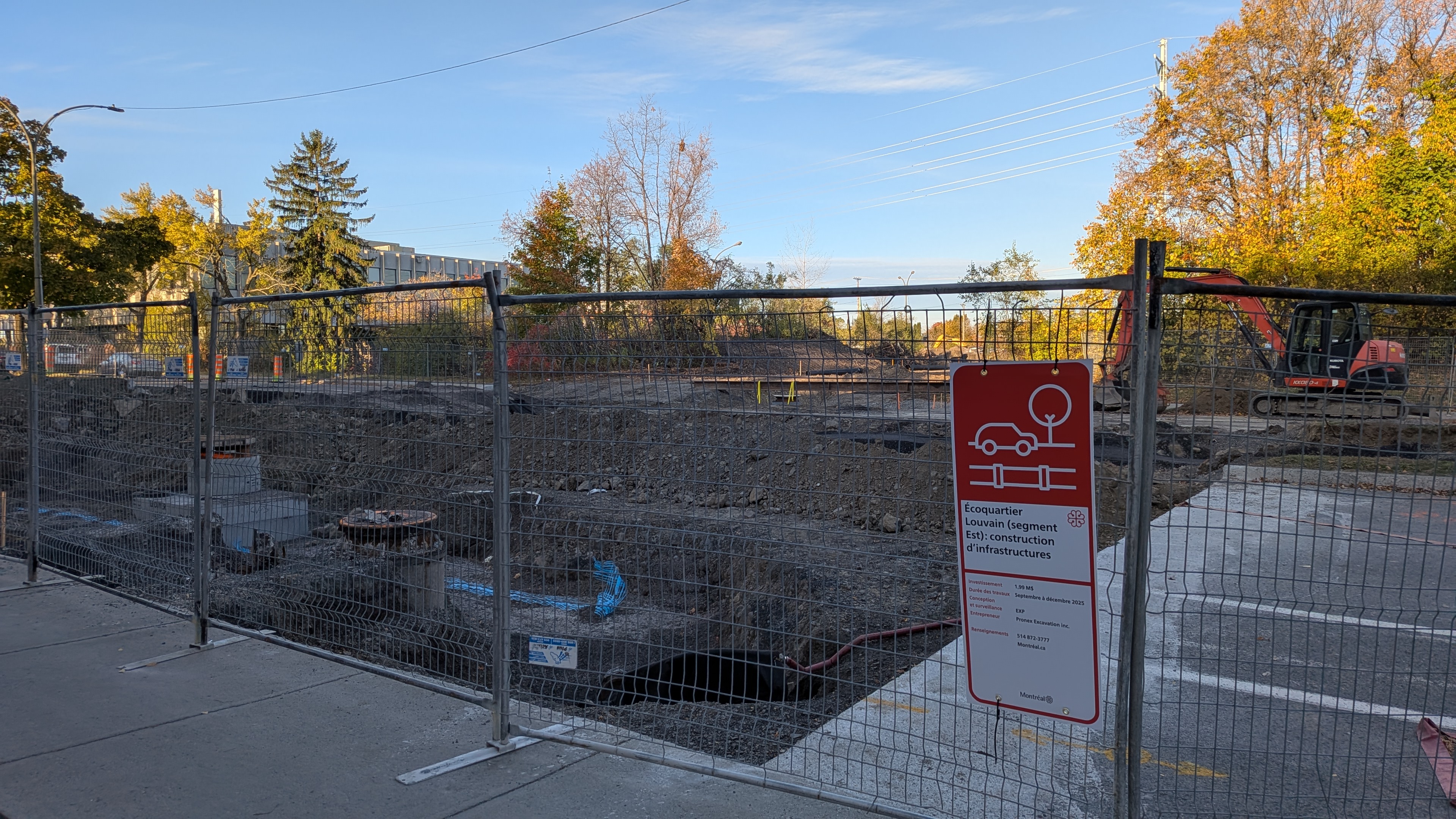 Après la construction des îlots et bordures séparatrices (qui ont pris BEAUCOUP plus de temps que celles des intersections Louvain/St-Hubert et Louvain/Papineau), des entrepreneurs ont excavé pour atteindre les conduits d’eau.
