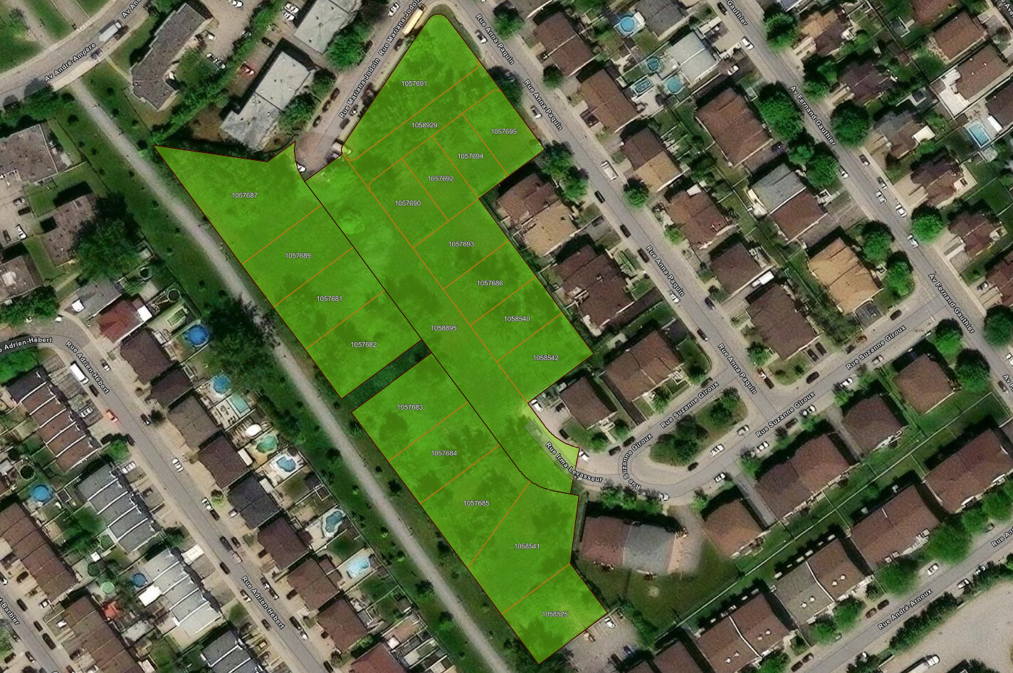 La Ville met en vente/disponibilité 3 grands ensembles de terrains pour fins de logements hors marché. Un lotissement des terrains a déjà été fait pour un développement de multilogements/condos qui n’a pas été réalisé.