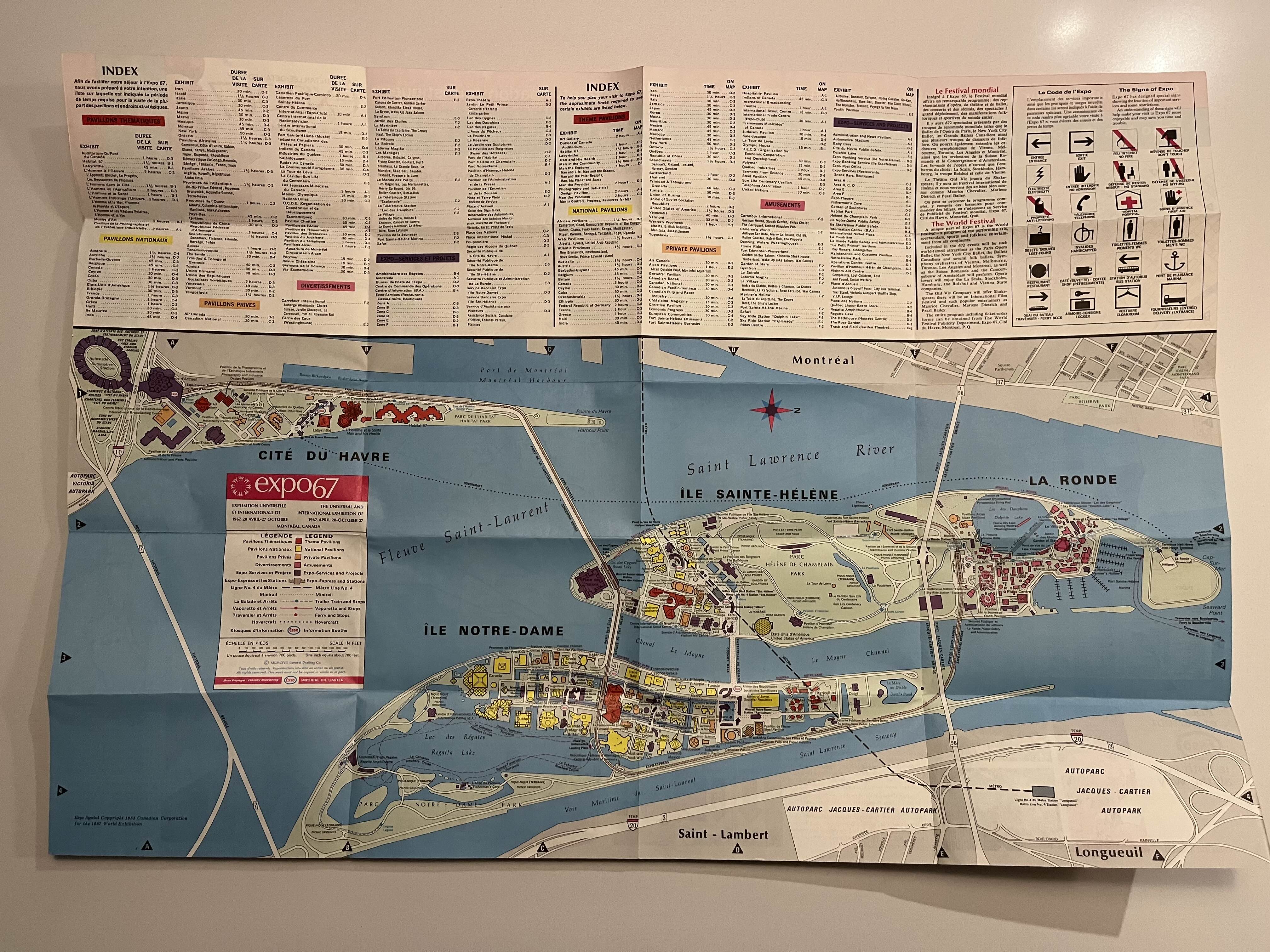 Carte complète de l’Expo 67 et de la ville de Montréal.