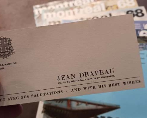 Jean Drapeau offrait, à titre gracieux, des cartes à l’effigie de la Ville de Montréal dans la revue “Montréal 68”, qui faisait la promotion de “Terre des Hommes”.
