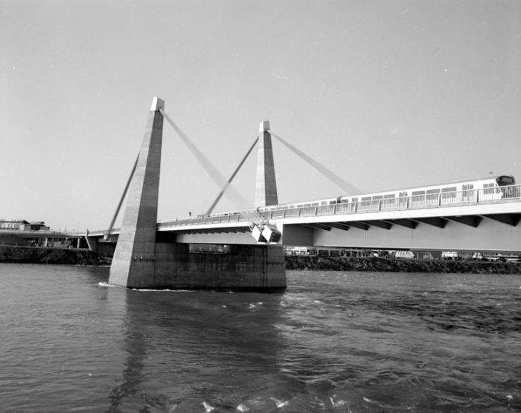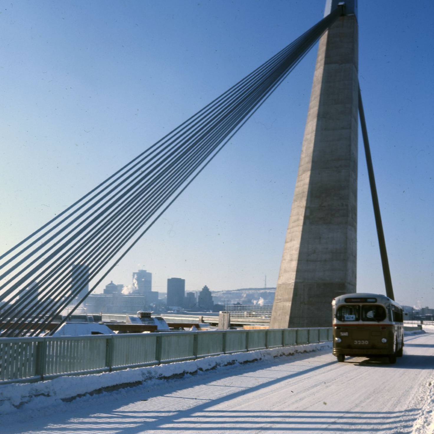 Le pont des îles, autrefois à haubans, retirés depuis. Photographié à l’hiver 1968.