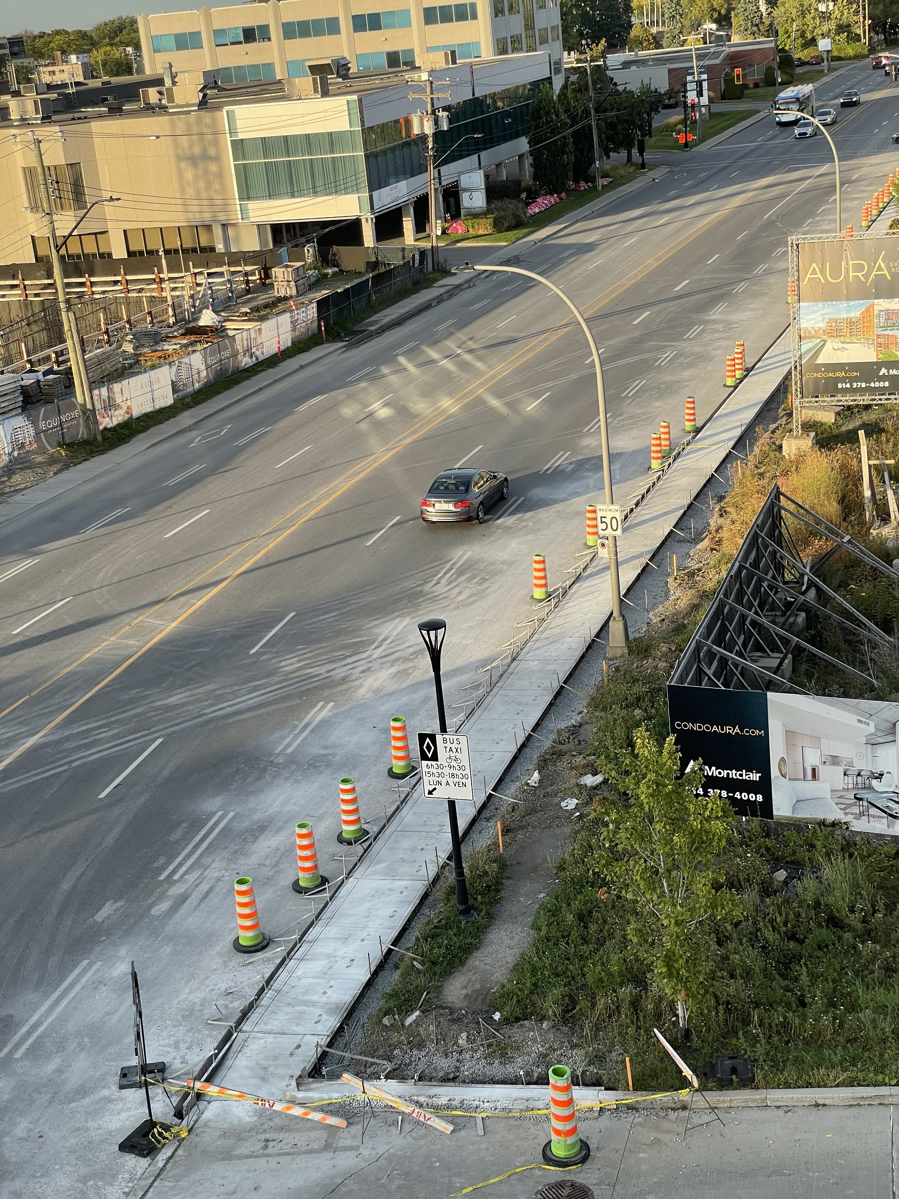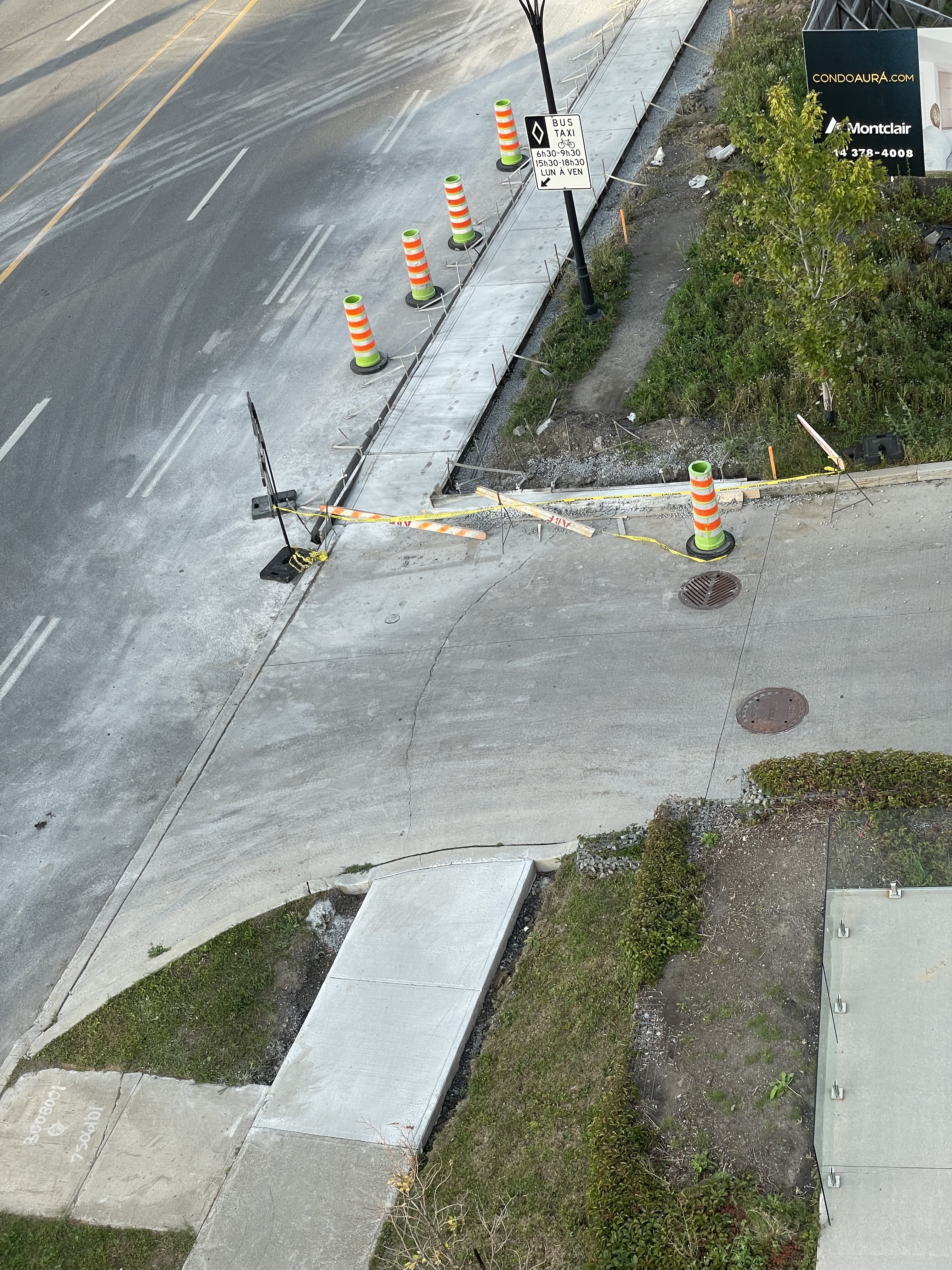 Trottoir complété en face du Équinoxe Bois-Franc et devant le Aura. Très déçu qu’il ne soit pas plus séparé du boulevard…ni plus large.