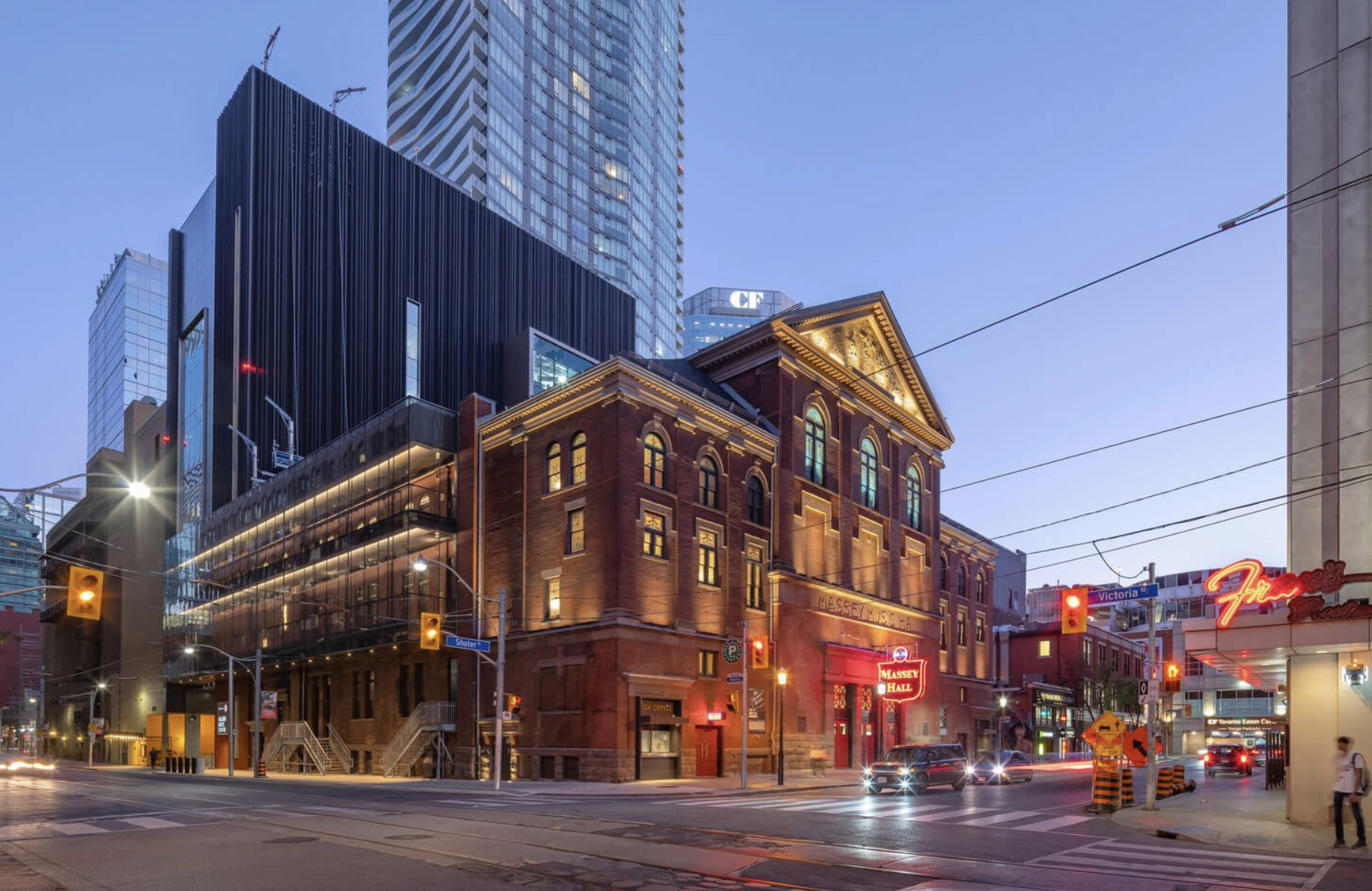 KPMB Architects a restauré ce lieu historique et ajouté une tour en verre de 7 étages avec studios et nouvelle salle de 500 places.
